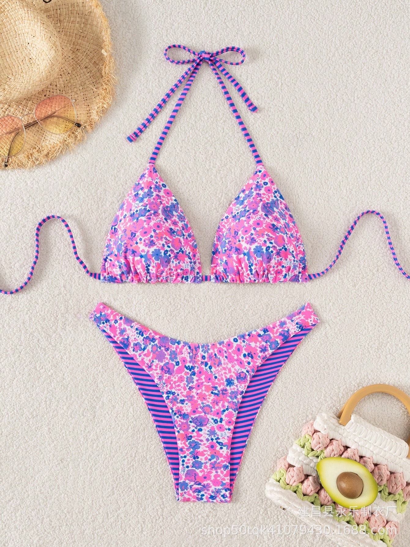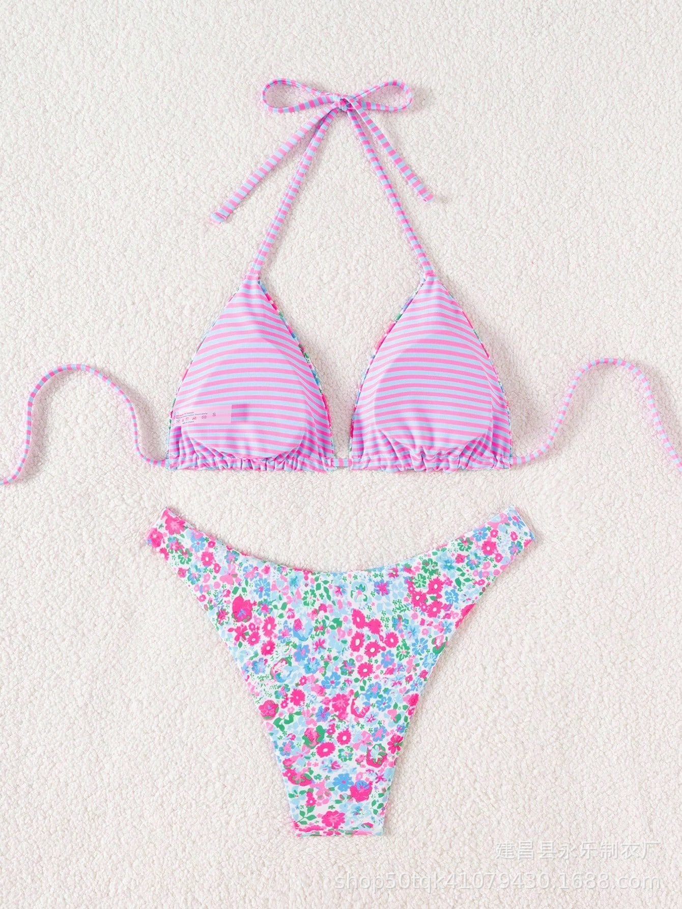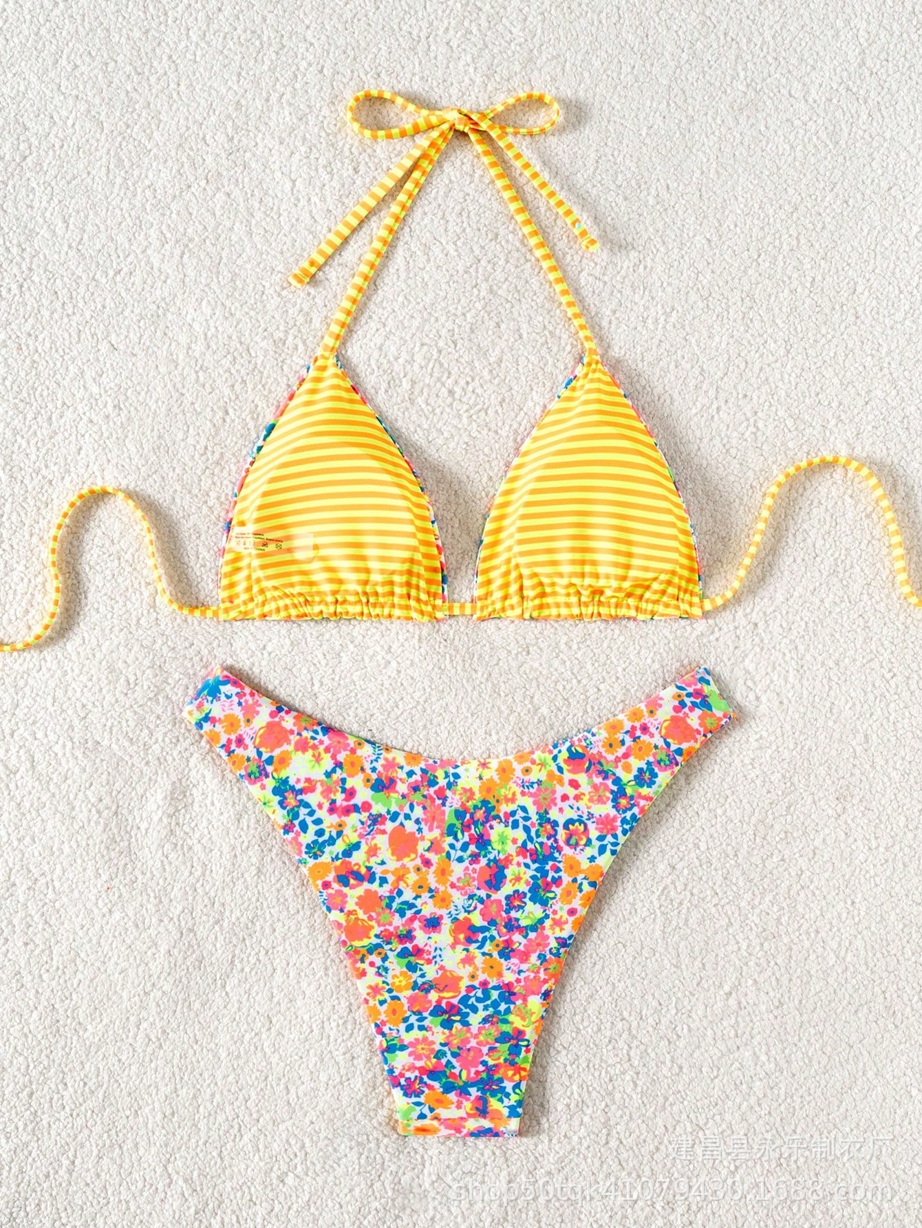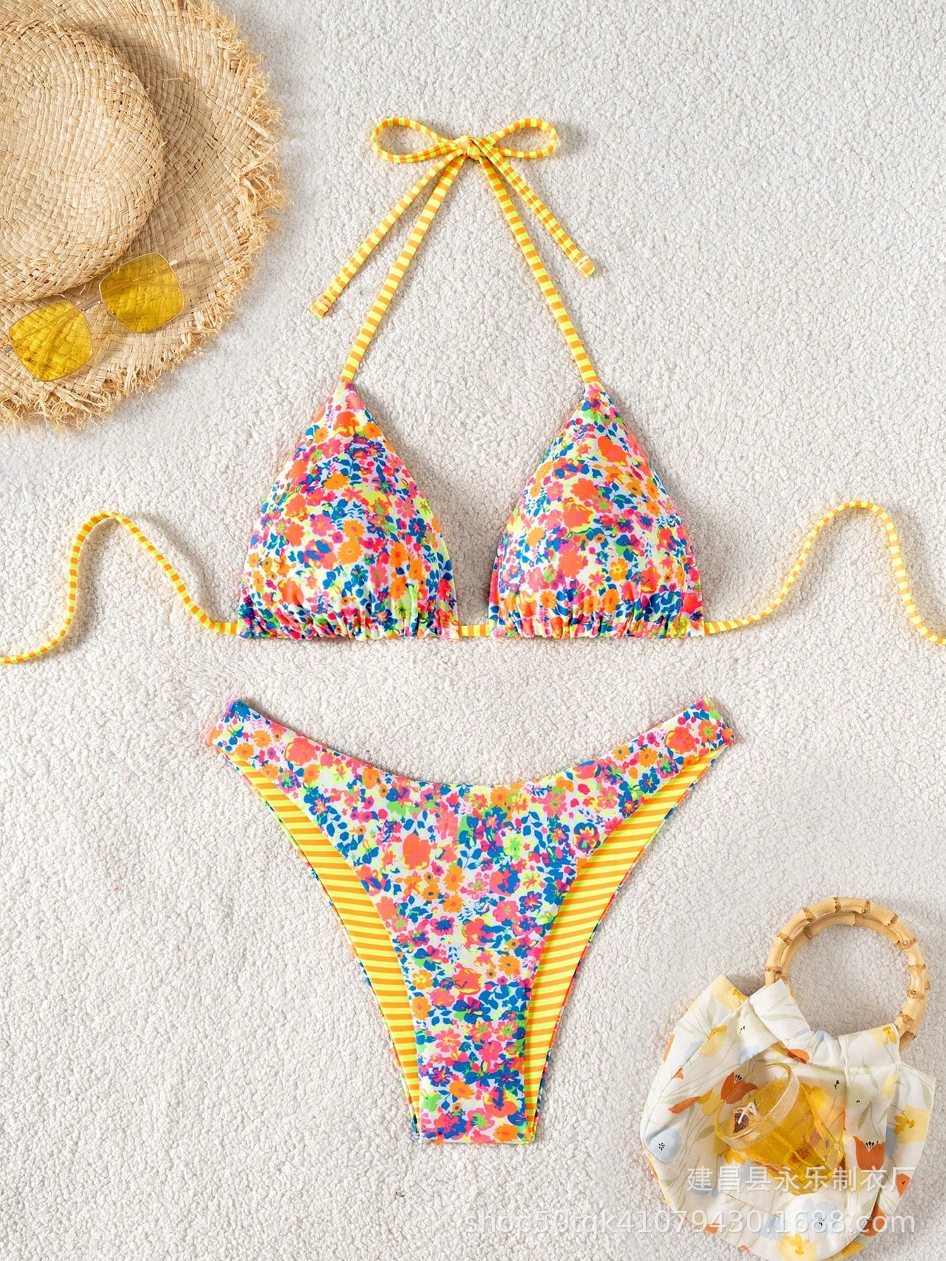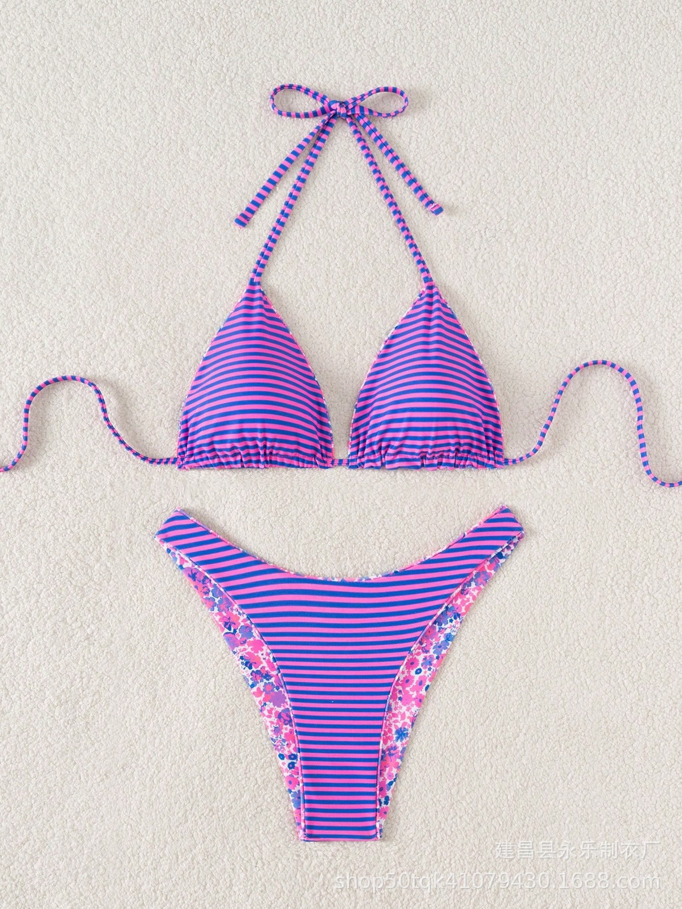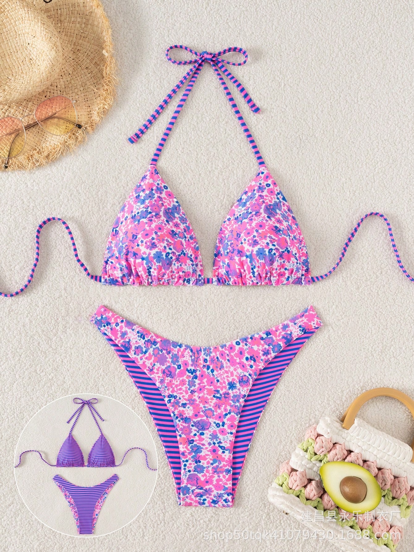 대외 무역 2025 유럽과 미국의 새로운 섹시한 프린트 양면 수영복 수영복 여성 스플릿 비키니 세트 크로스보더