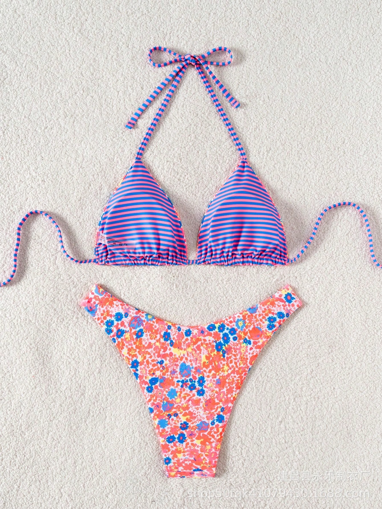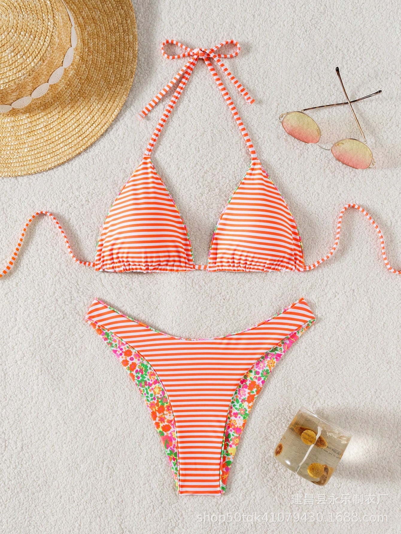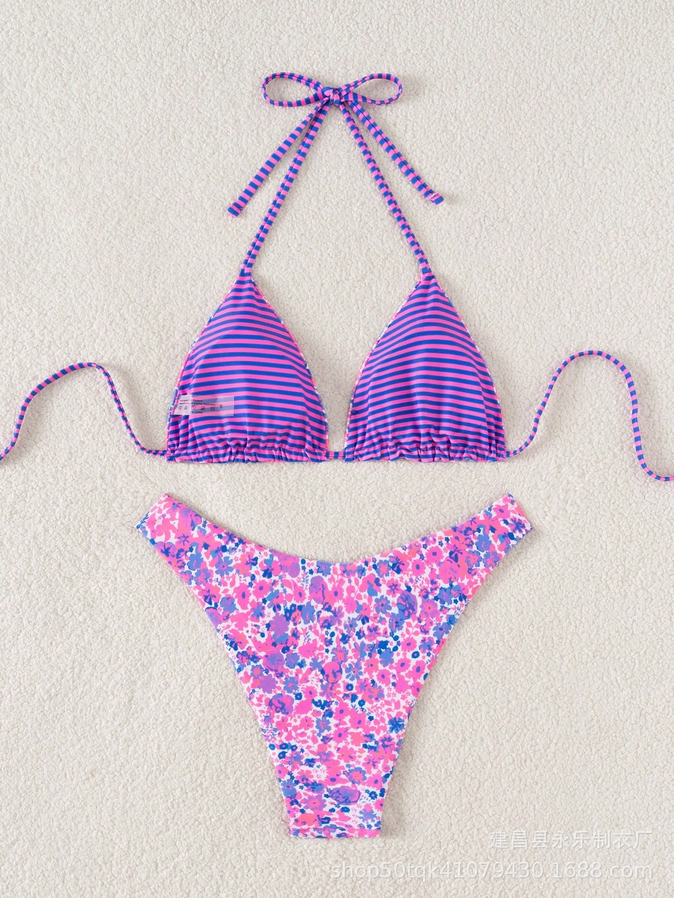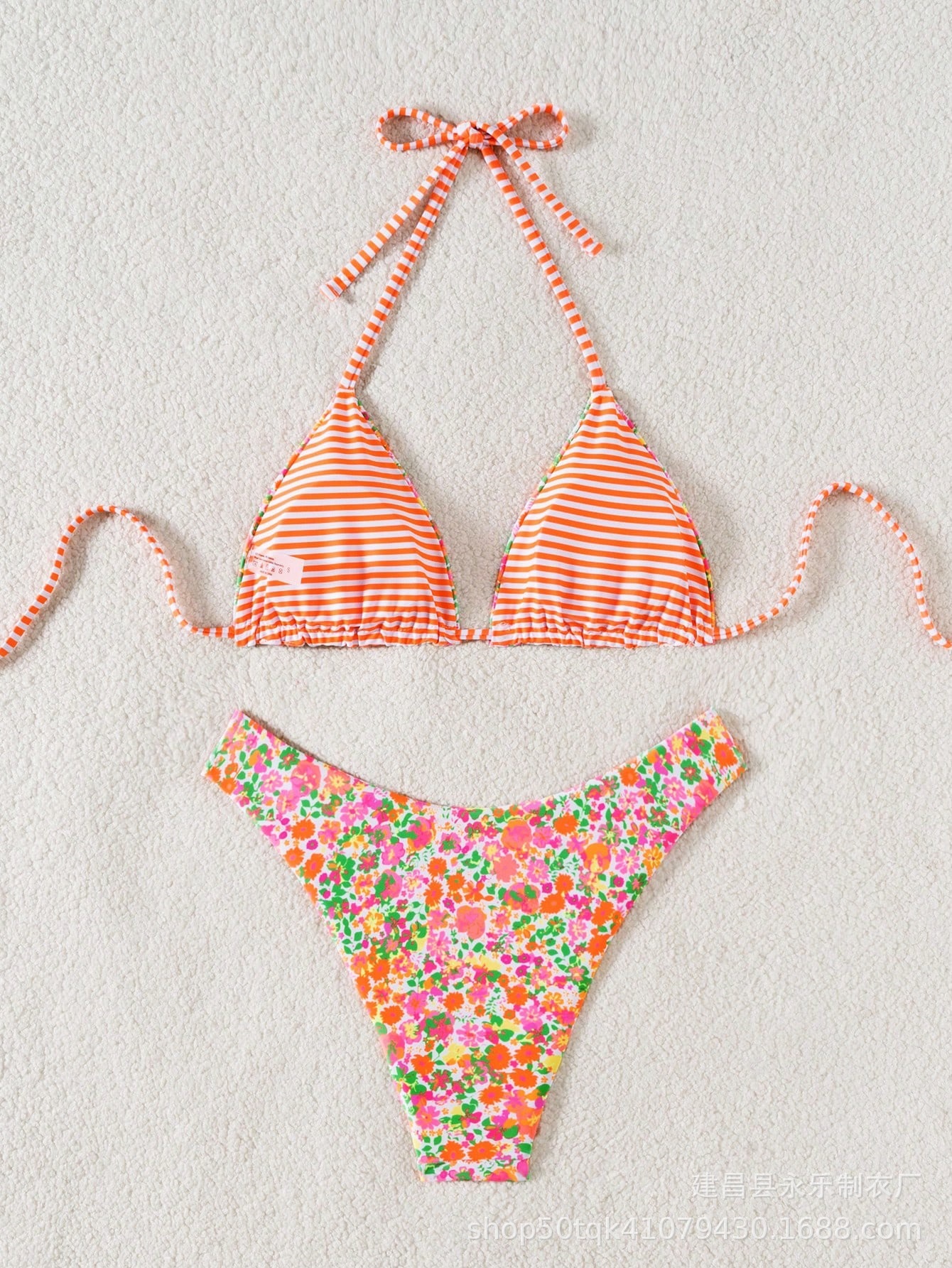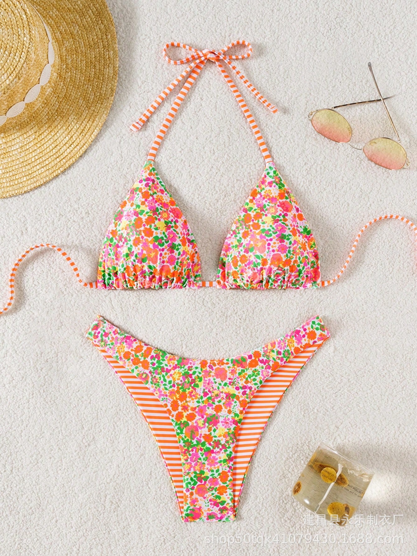 대외 무역 2025 유럽과 미국의 새로운 섹시한 프린트 양면 수영복 수영복 여성 스플릿 비키니 세트 크로스보더