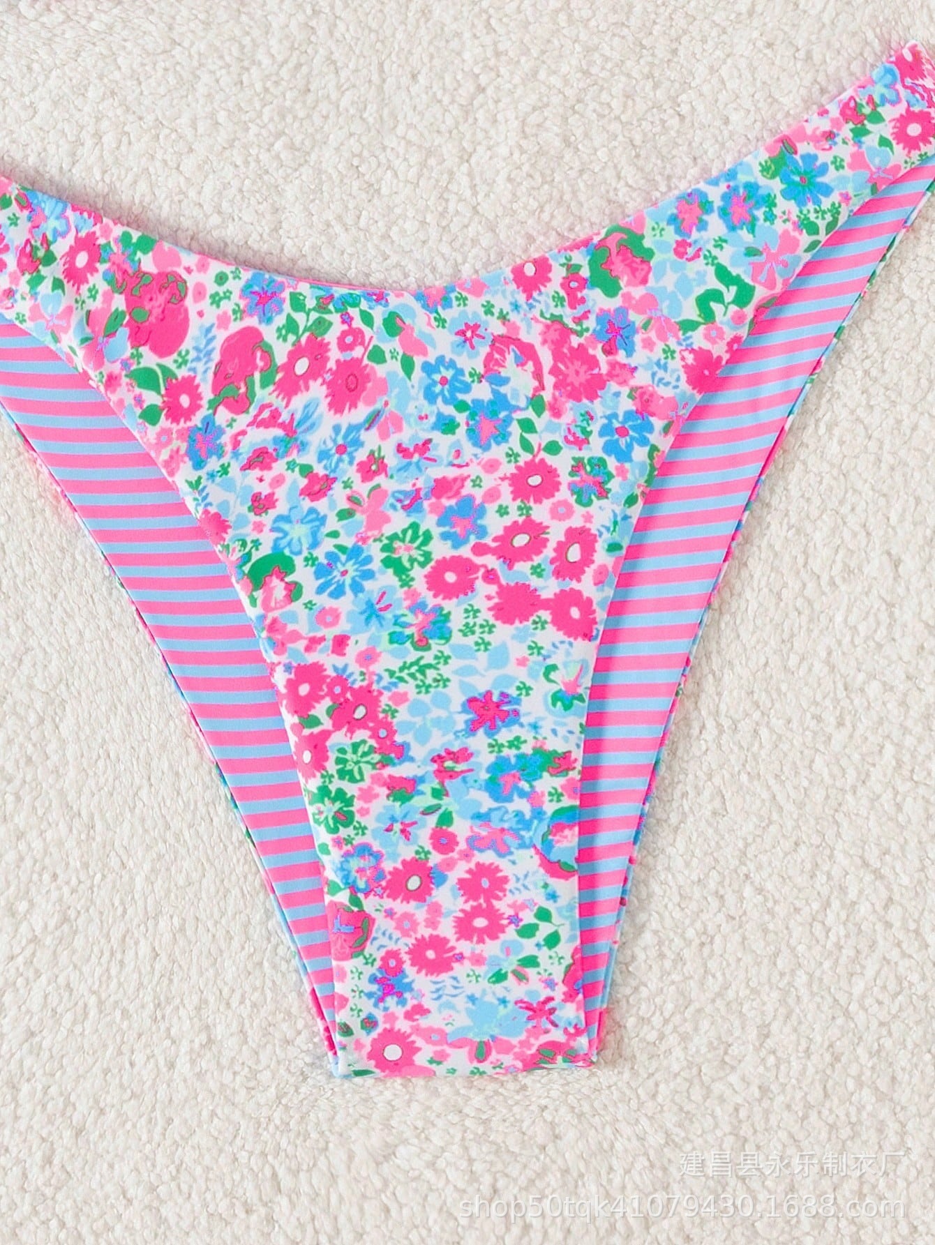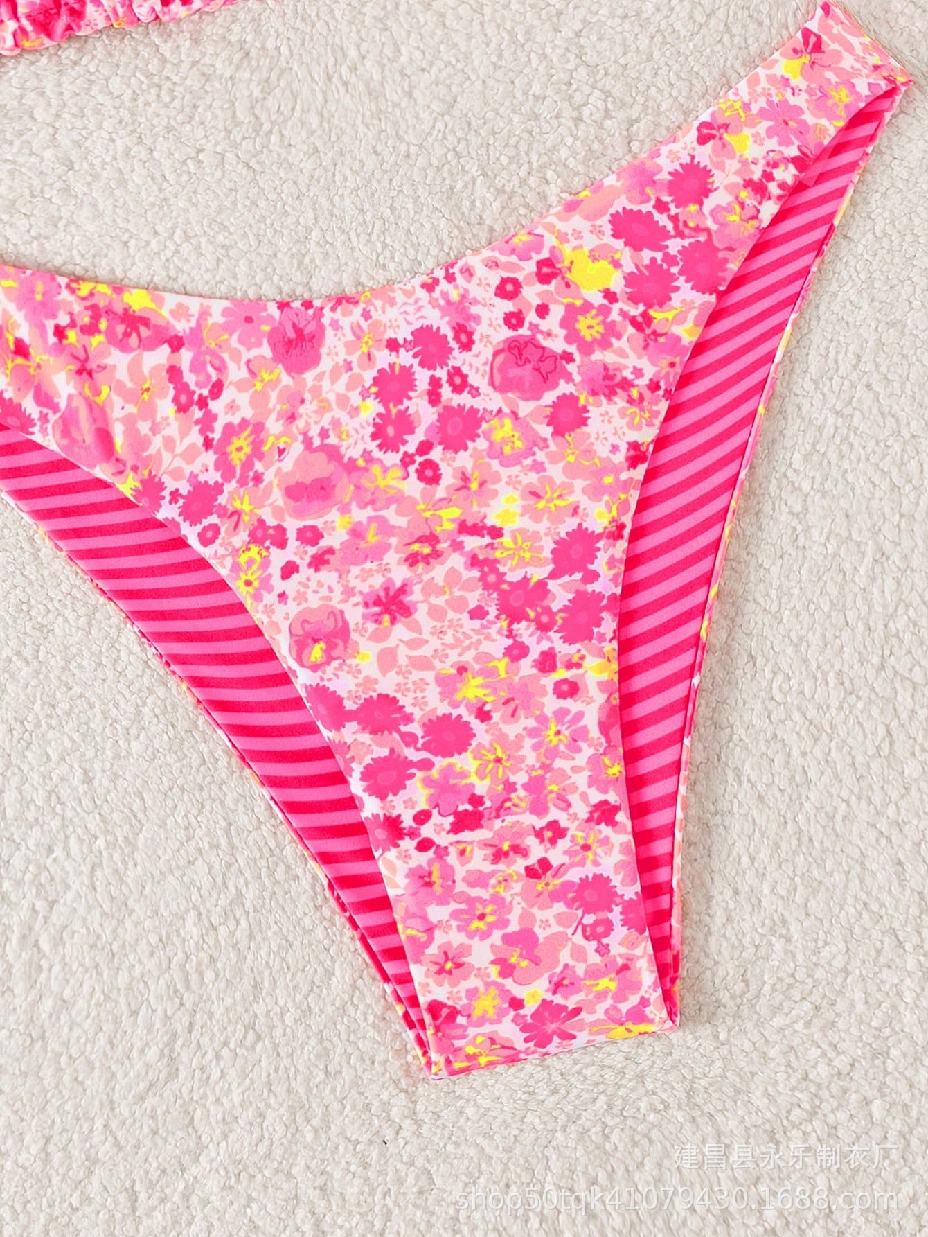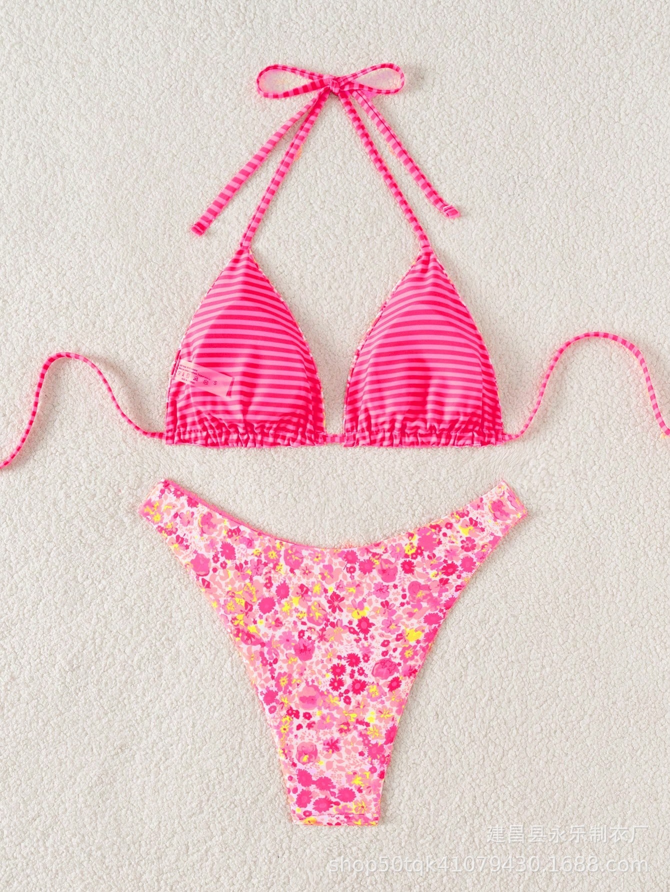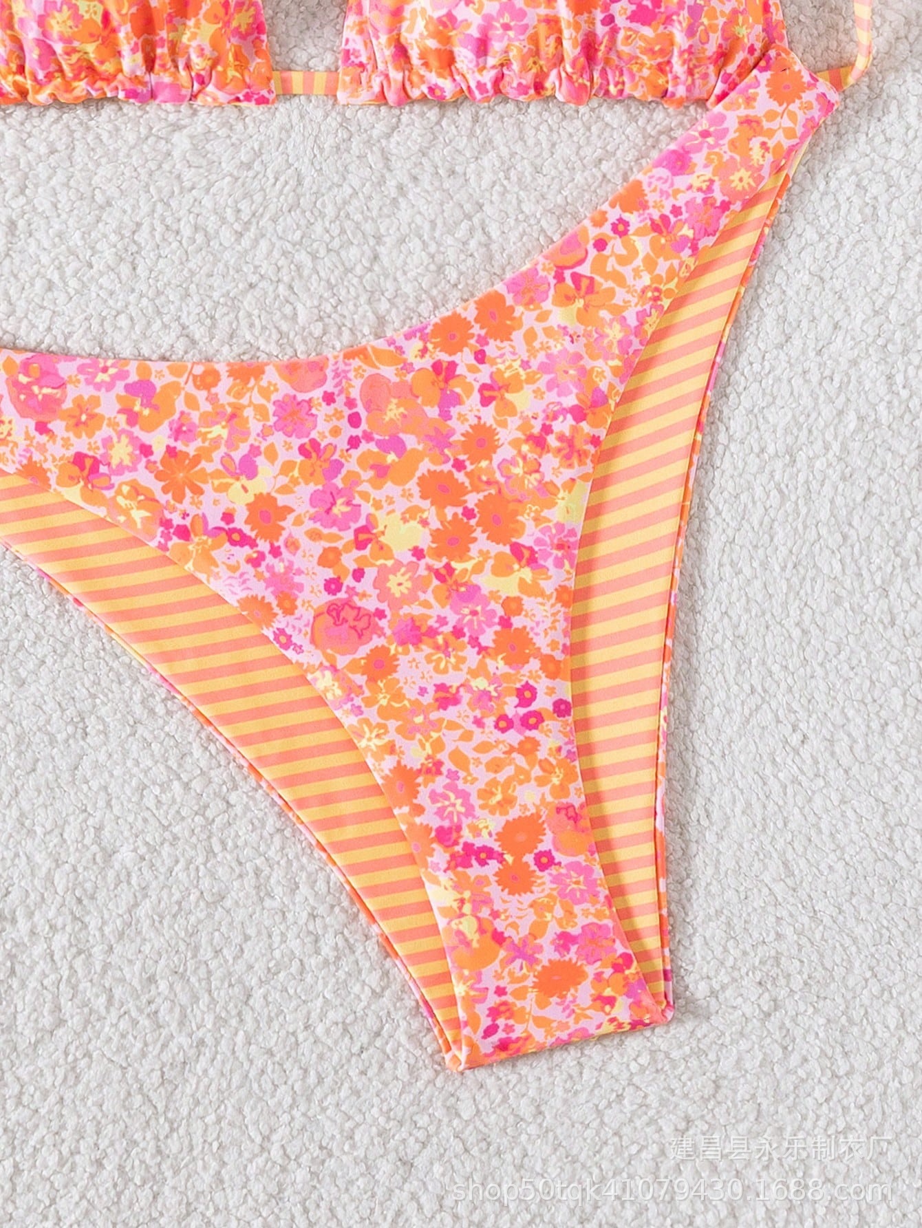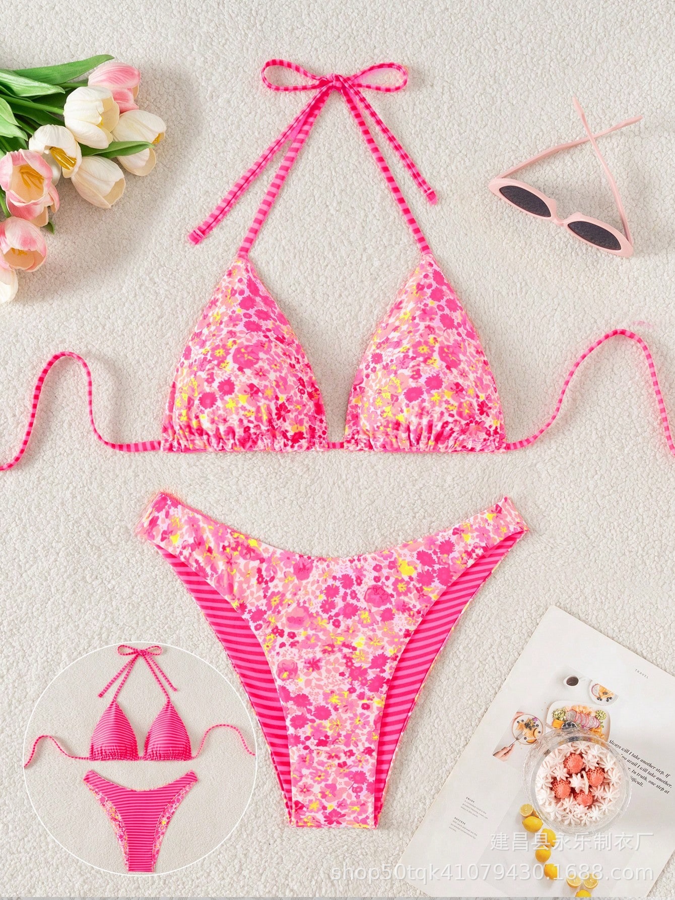 대외 무역 2025 유럽과 미국의 새로운 섹시한 프린트 양면 수영복 수영복 여성 스플릿 비키니 세트 크로스보더