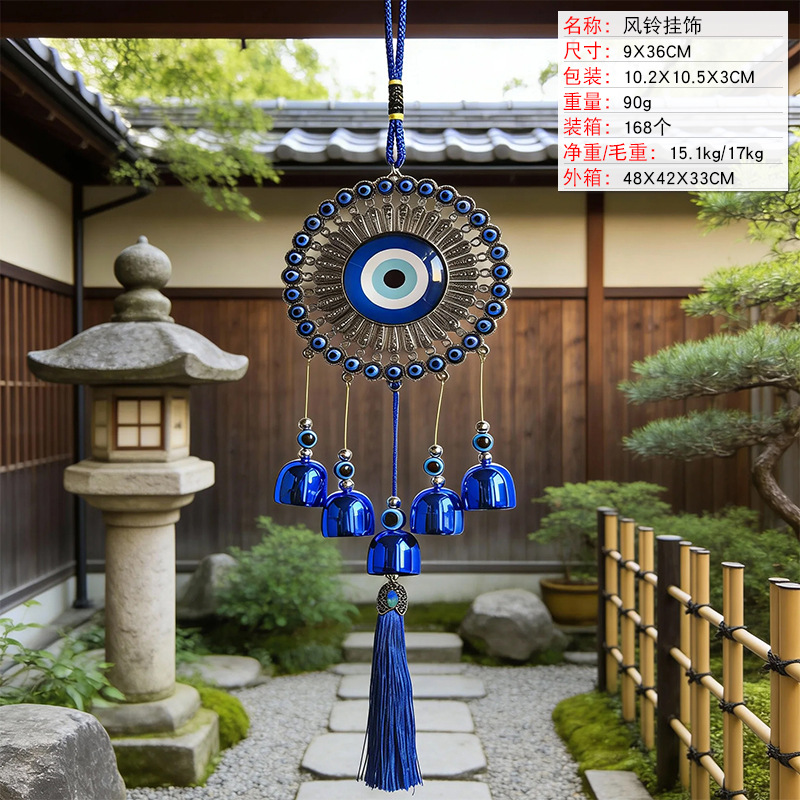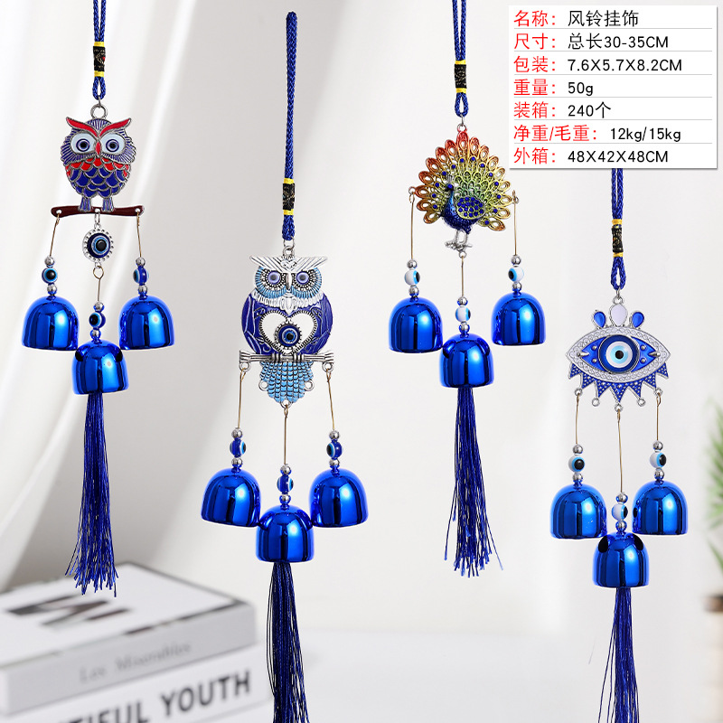 공장 도매 금속 풍경 부유 장식 보석 벨 펜던트 블루 아이 악마의 눈 터키 펜던트스토어 가기