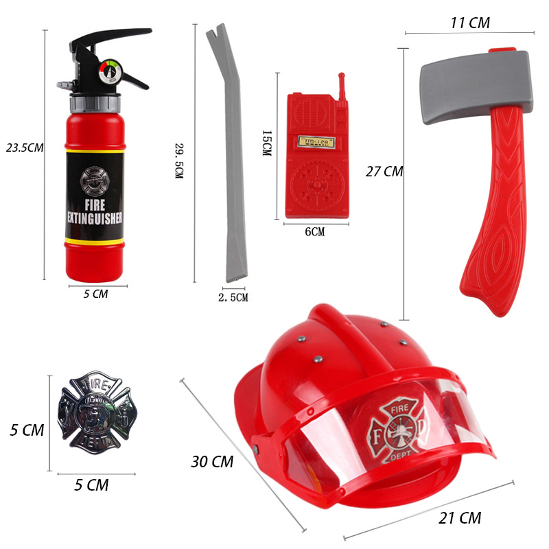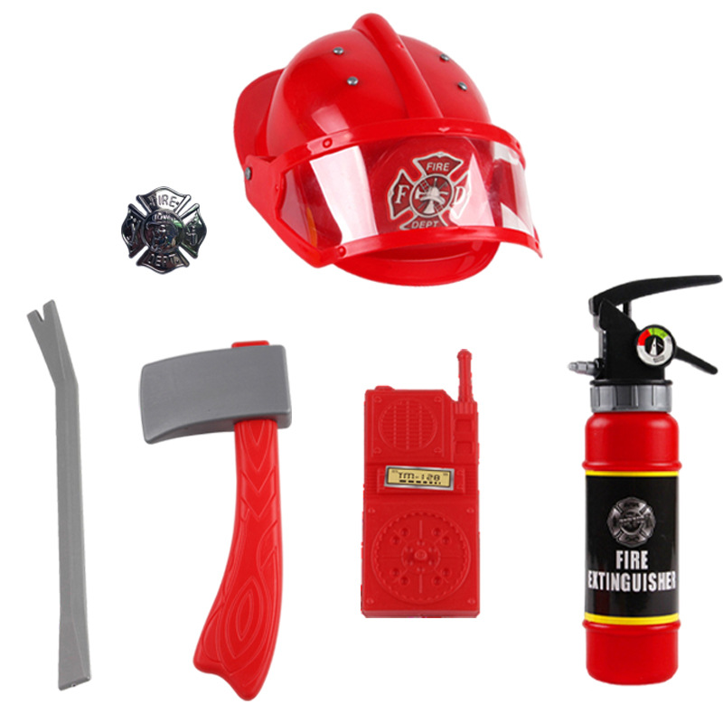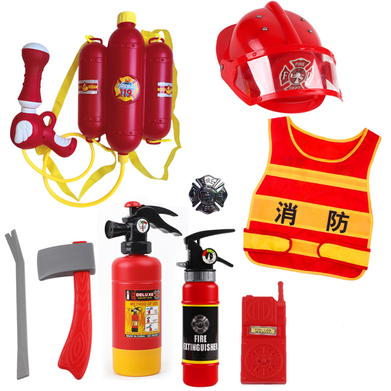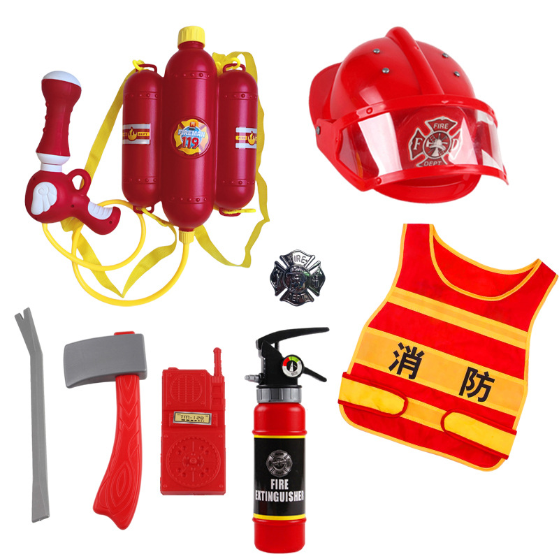 어린이 소방 물총 소화기 유치원 롤 플레잉 조끼 모자 남성과 여성 소방관 놀이 집 장난감