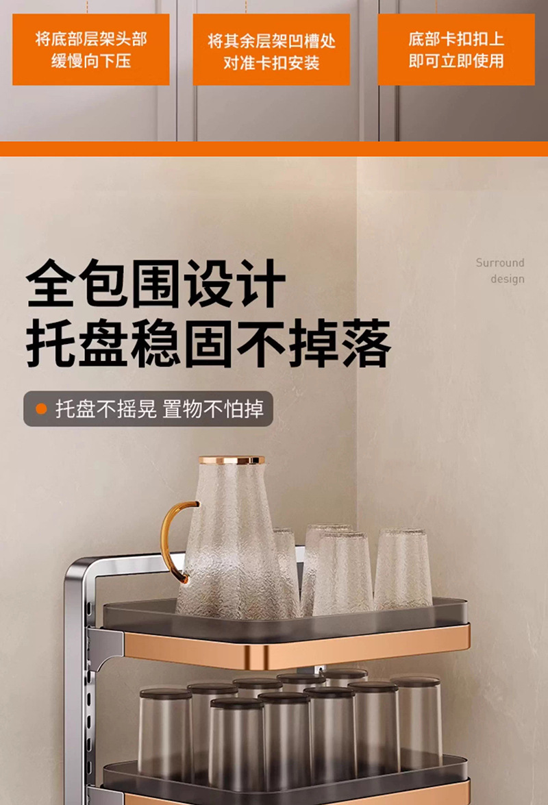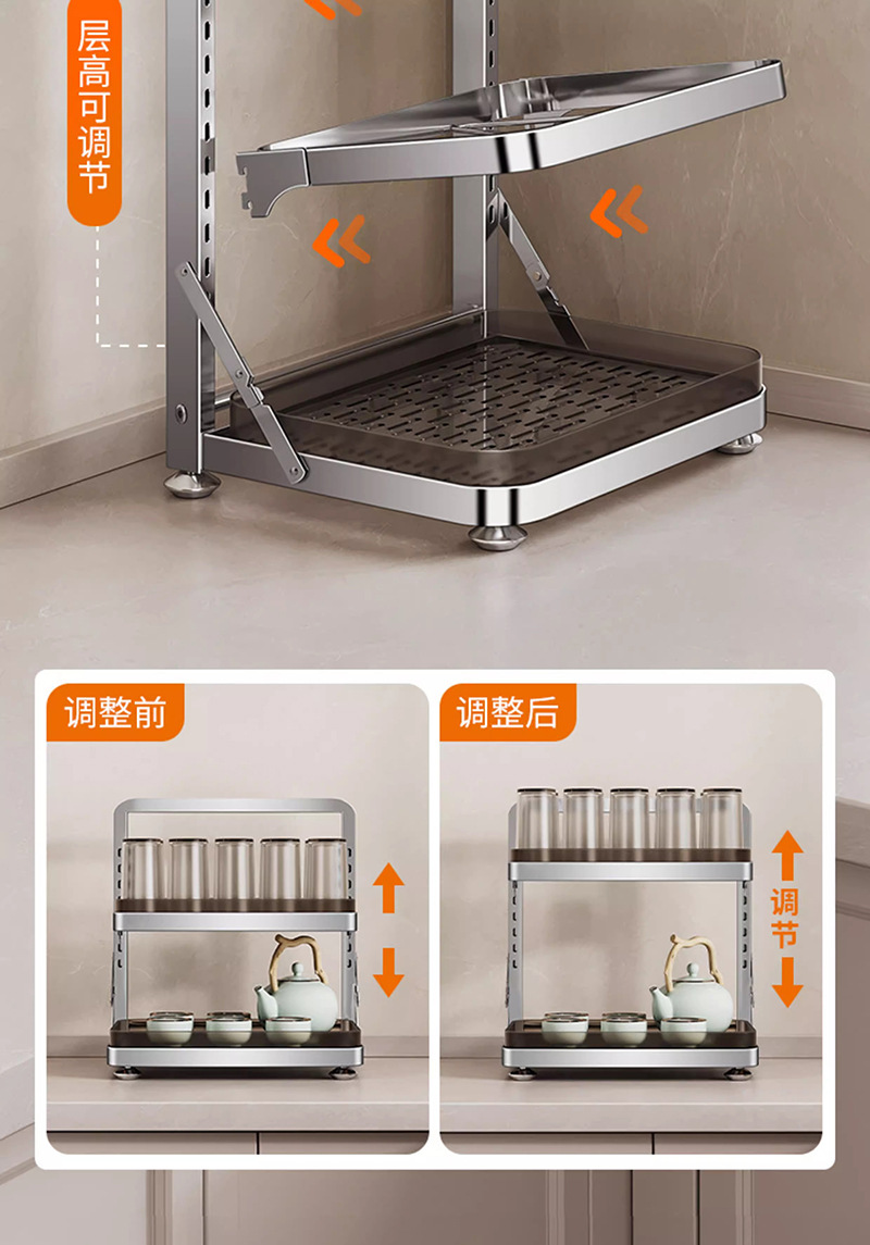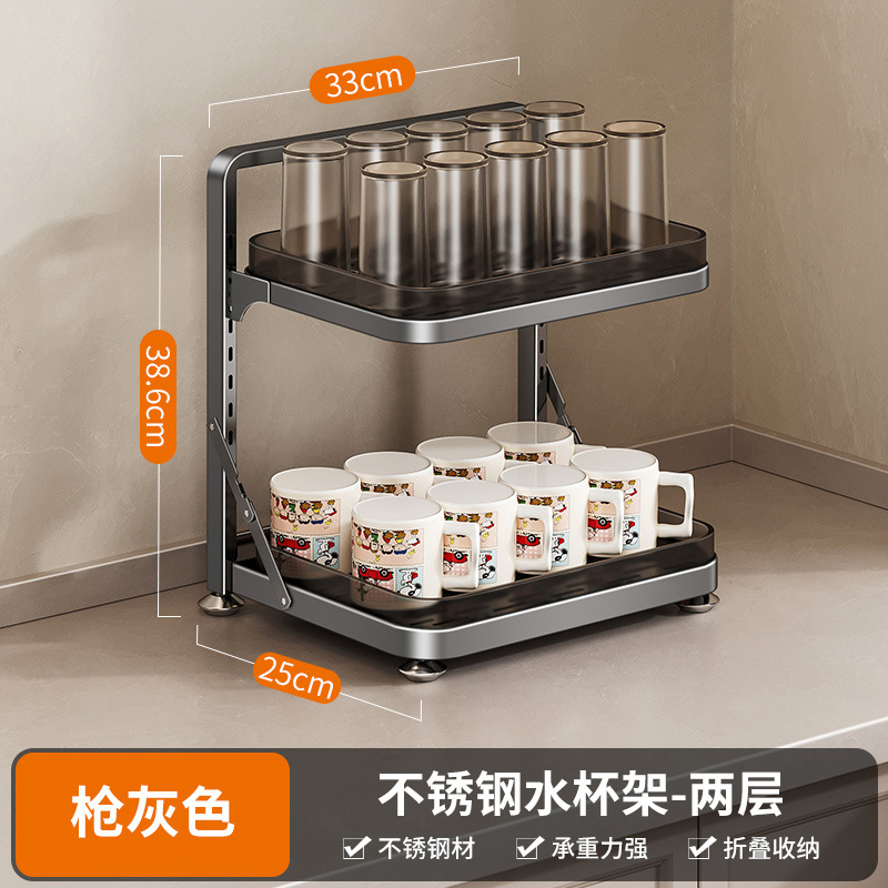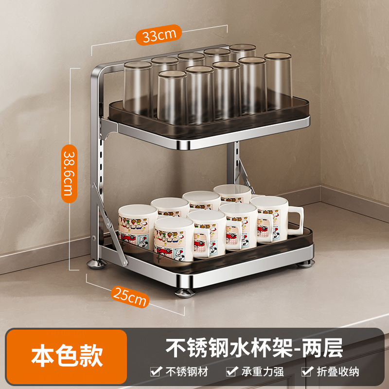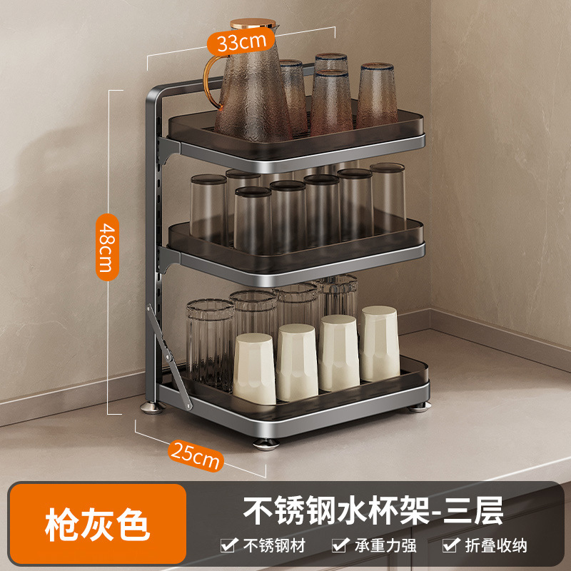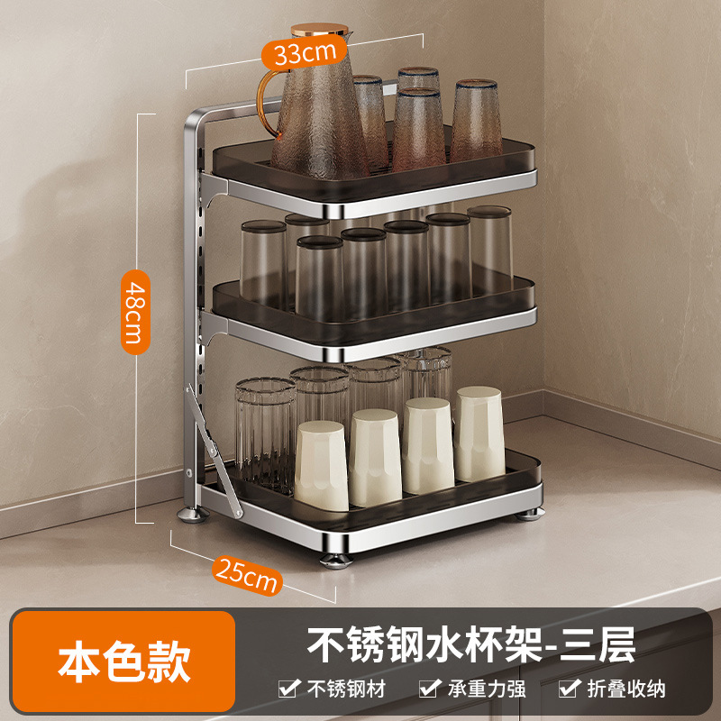 주방 랙 물 컵 보관 랙 다층 스테인레스 스틸 가정용 다기능 조리대 주전자 차 세트 트레이 랙스토어 가기