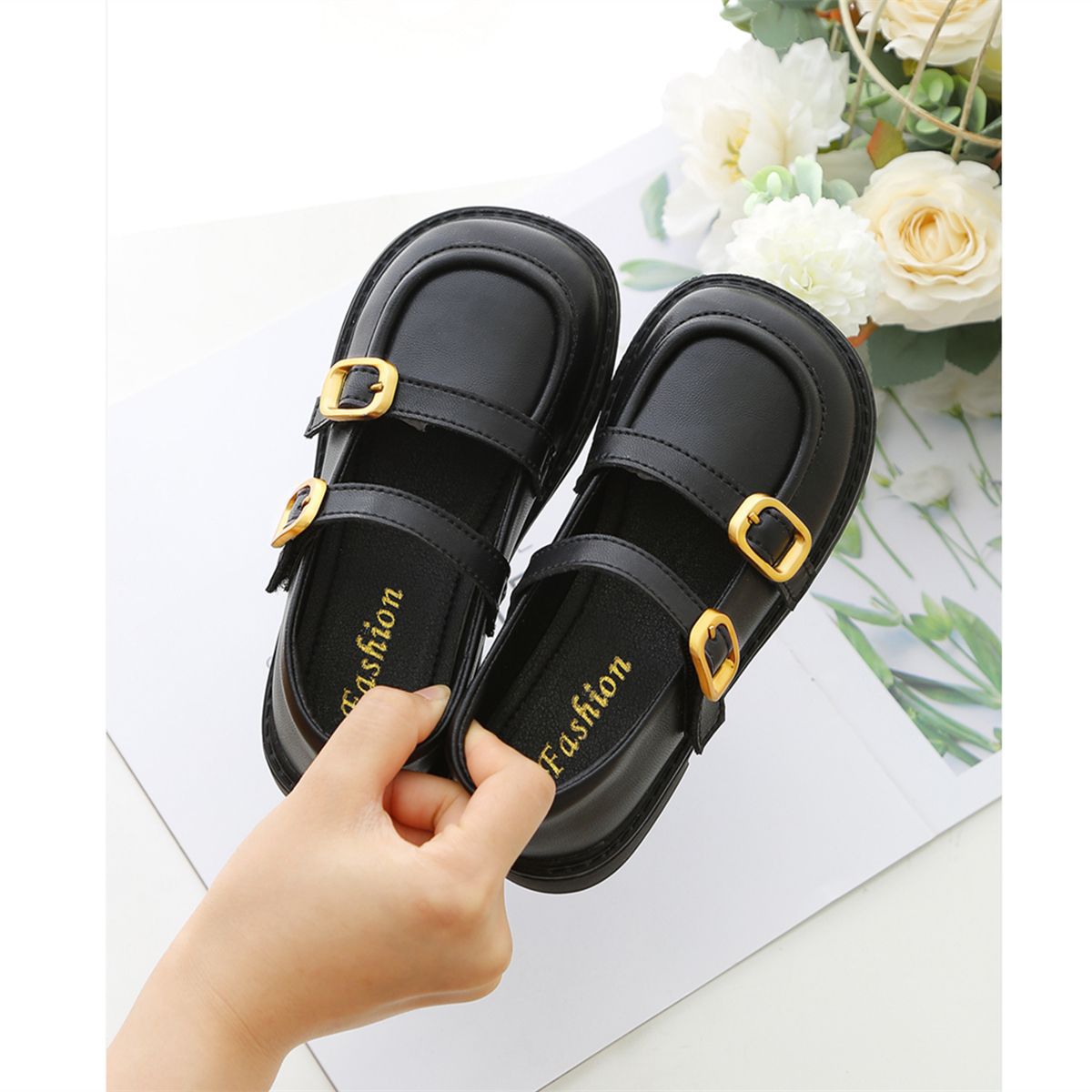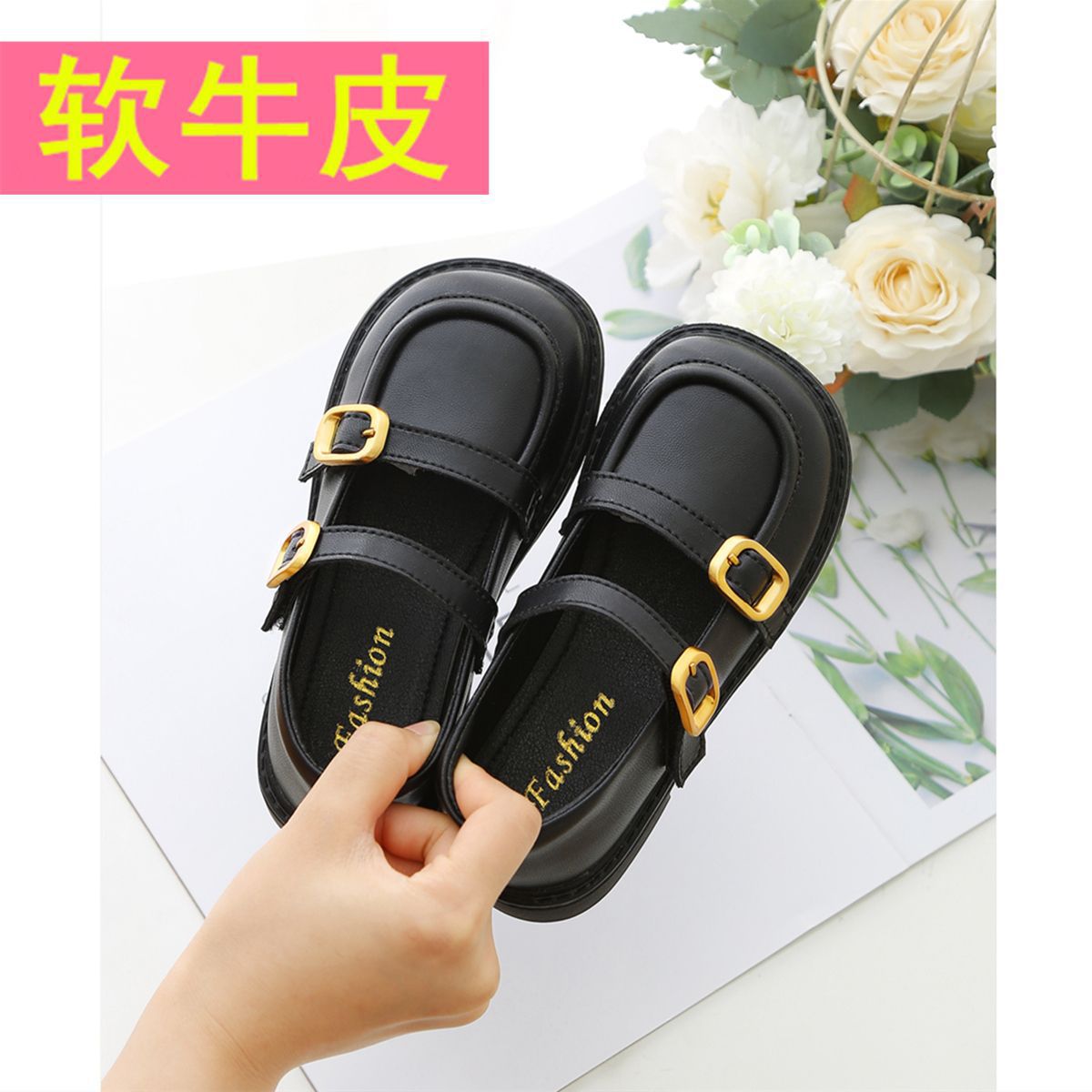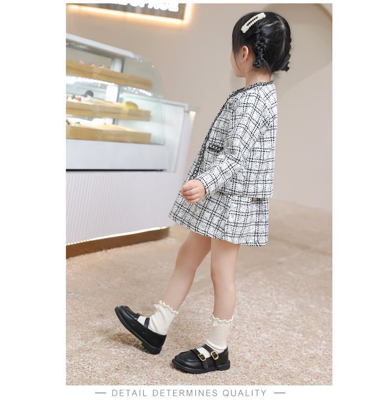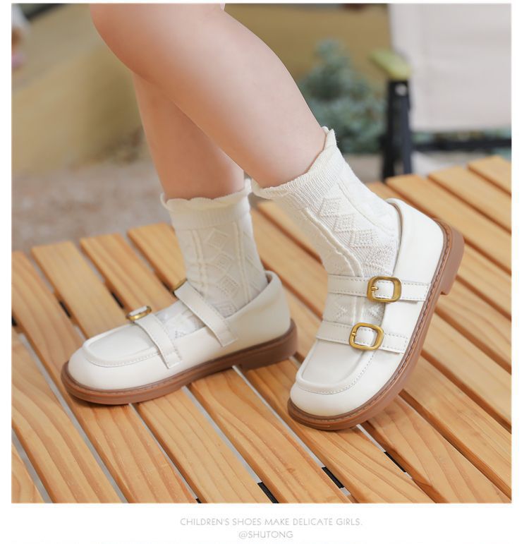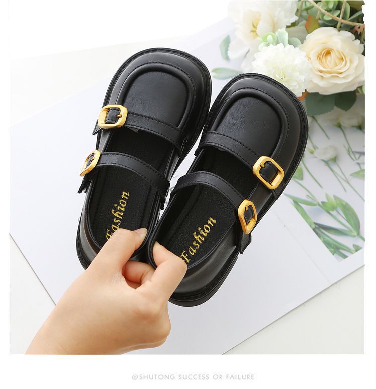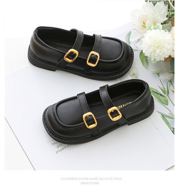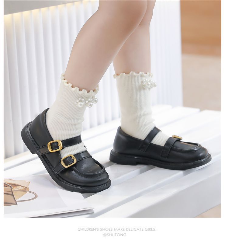 여자를위한 검은 작은 가죽 신발 2025 새로운 어린이 공주 봄 부드러운 밑창 신발 성인 술 부츠스토어 가기