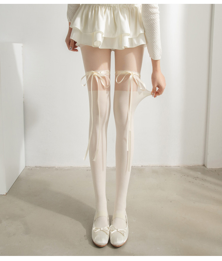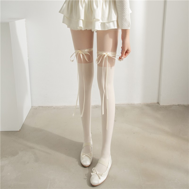 로리타 스트랩 보우 달콤한 순수한 욕망 흰색 스타킹 여름 얇은 안티 걸림 벨벳 스플 라이스 팬티 스타킹