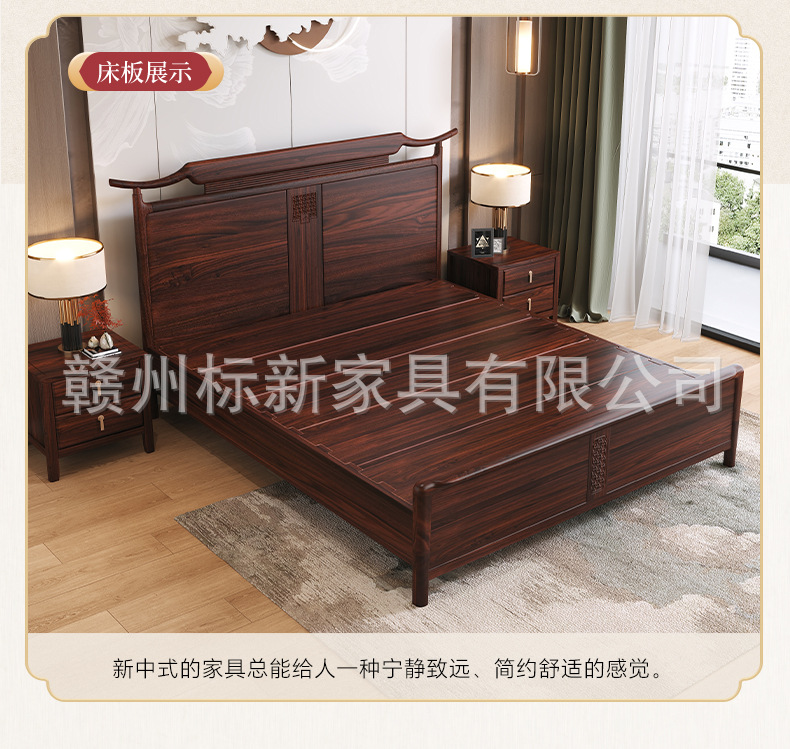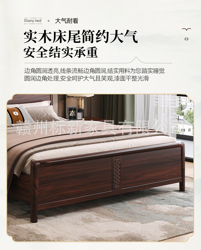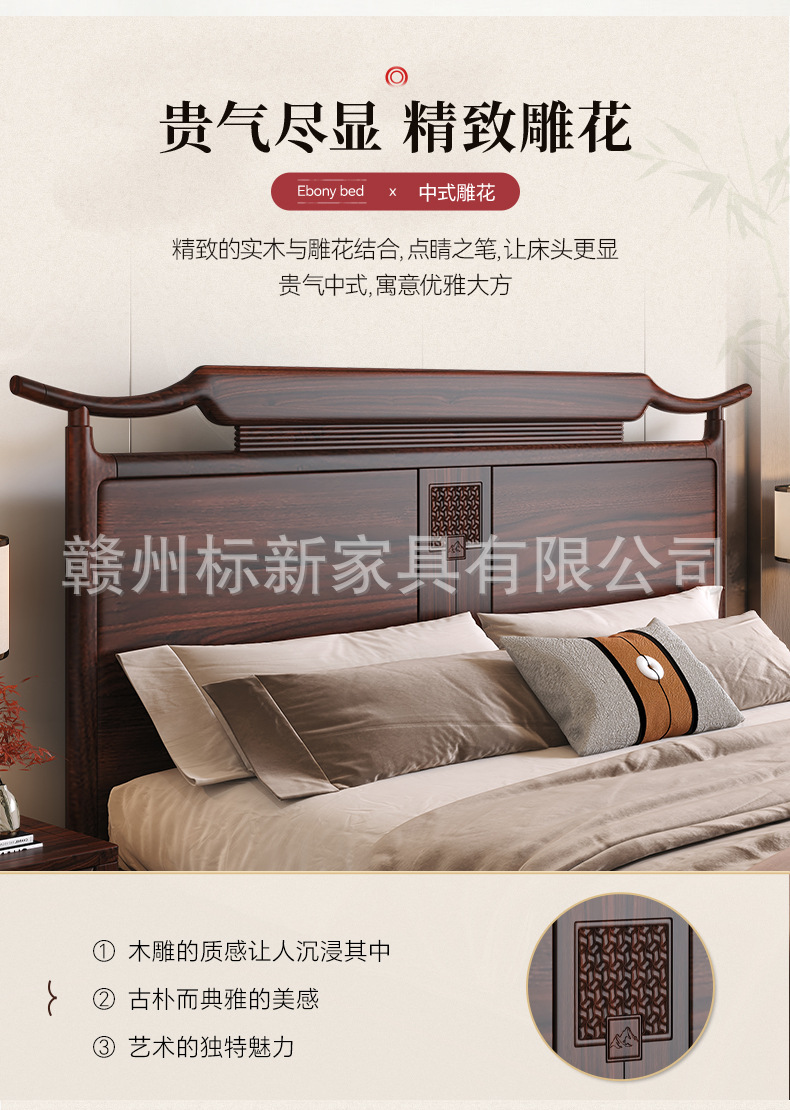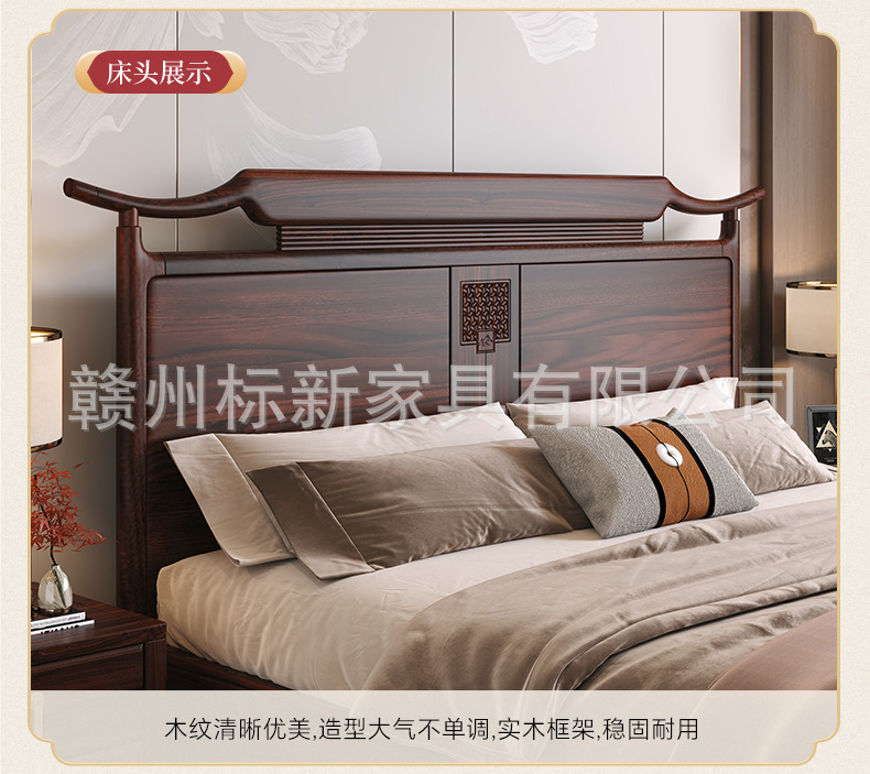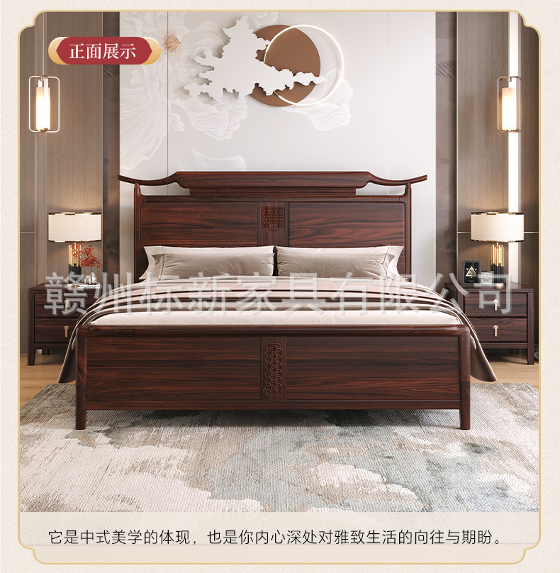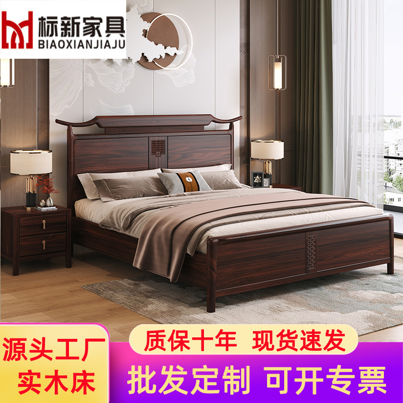 새로운 중국 스타일의 검은 골드 우드 솔리드 우드 침대 마스터 침실 1.8m 더블 킹 사이즈 침대 홈 현대 간단한 빛 럭셔리 스토리지 웨딩 침대스토어 가기