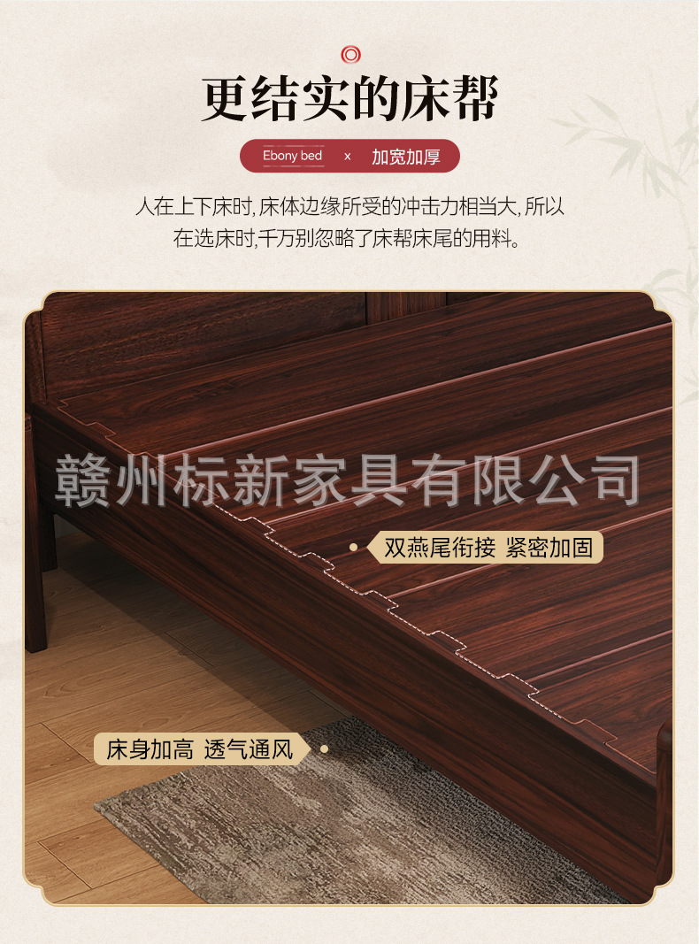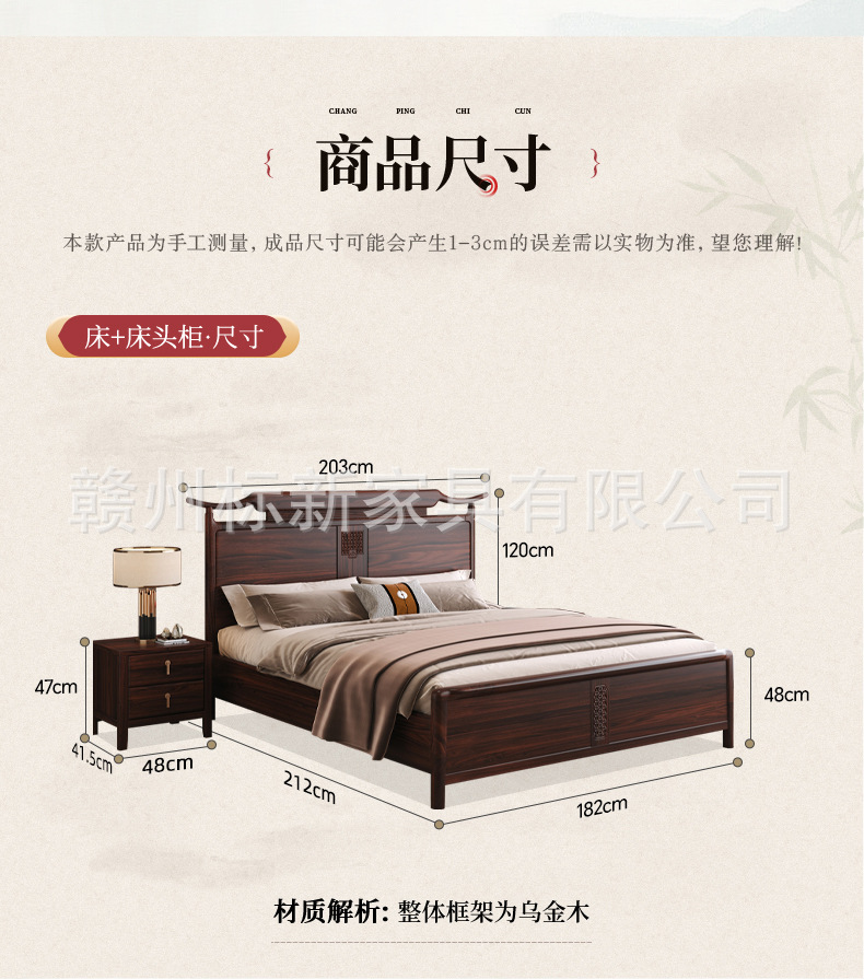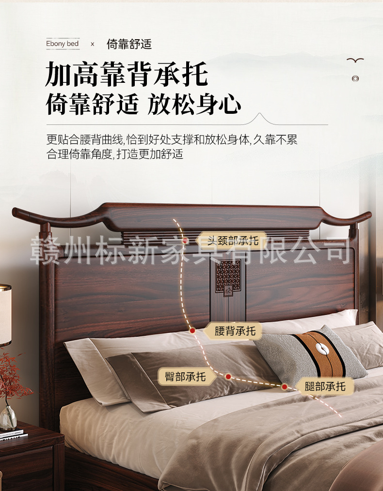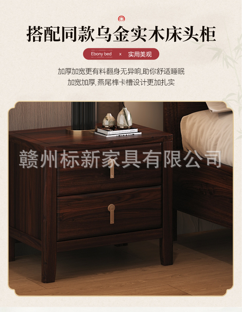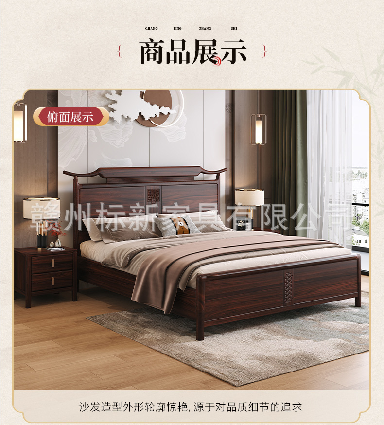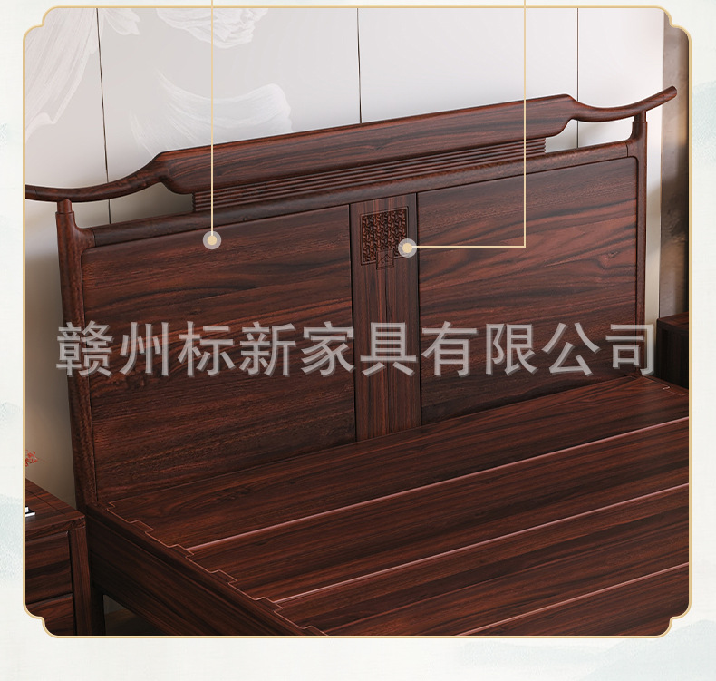 새로운 중국 스타일의 검은 골드 우드 솔리드 우드 침대 마스터 침실 1.8m 더블 킹 사이즈 침대 홈 현대 간단한 빛 럭셔리 스토리지 웨딩 침대스토어 가기