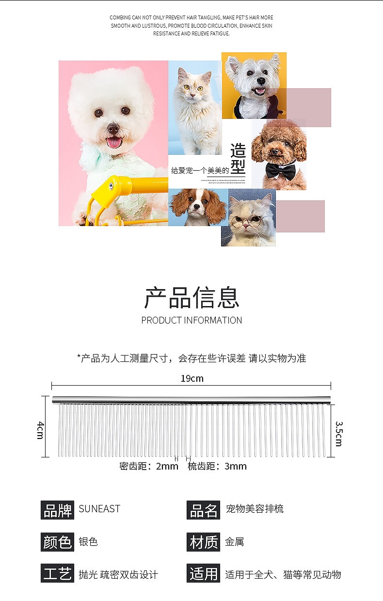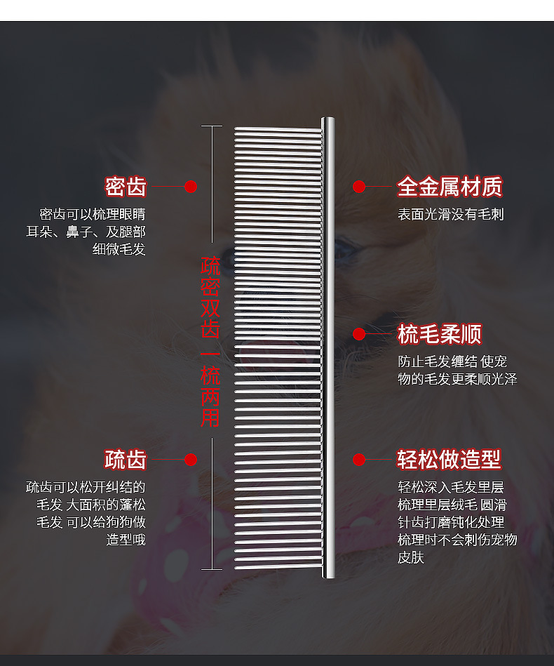 애완동물 미용 빗, 개털 빗, 고양이 빗, 이중 목적 빗, 개 빗, 테디 대형 및 소형견, 전문 개 용품