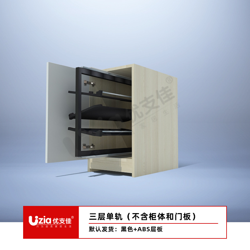 • [설치 패키지] 블랙 - 16겹 - 텔레스코픽 이중 레일 - 풀아웃/사이드 도어 개방용 범용