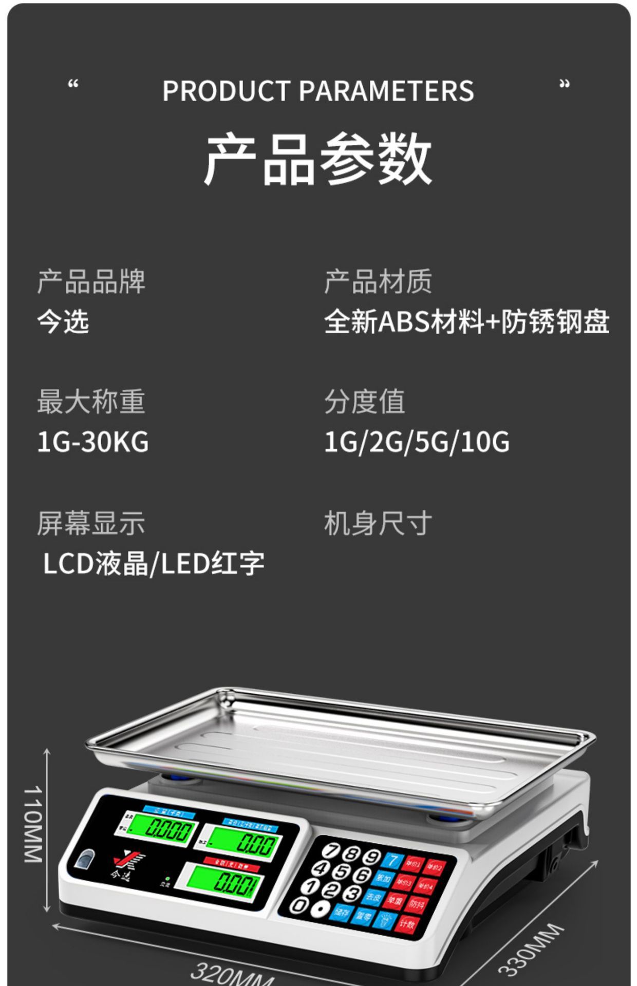 전자 저울 상업용 소형 전자 저울 야채 판매 30KG 가격 가정용 주방 충전식 테이블 저울스토어 가기
