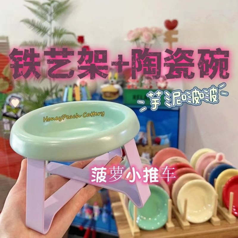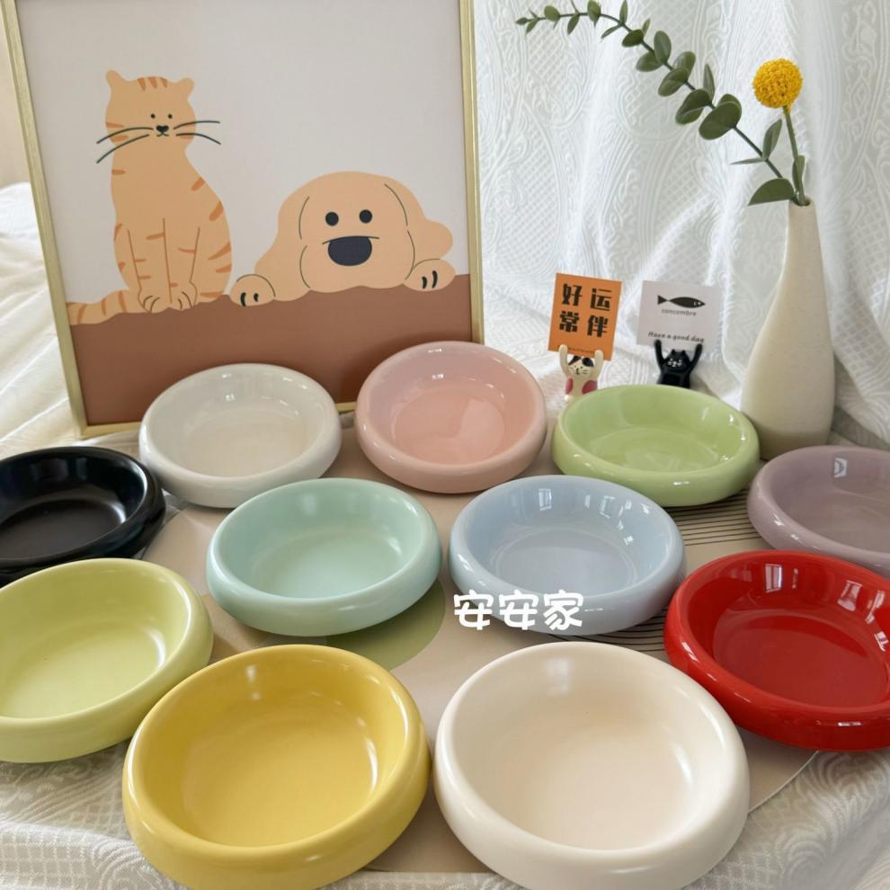 애완 동물 그릇 세라믹 유약 고양이 그릇 세라믹 고양이 밥 그릇 pe 얕은 입 세라믹 그릇 고양이 음식 그릇 물 그릇 직접 판매스토어 가기