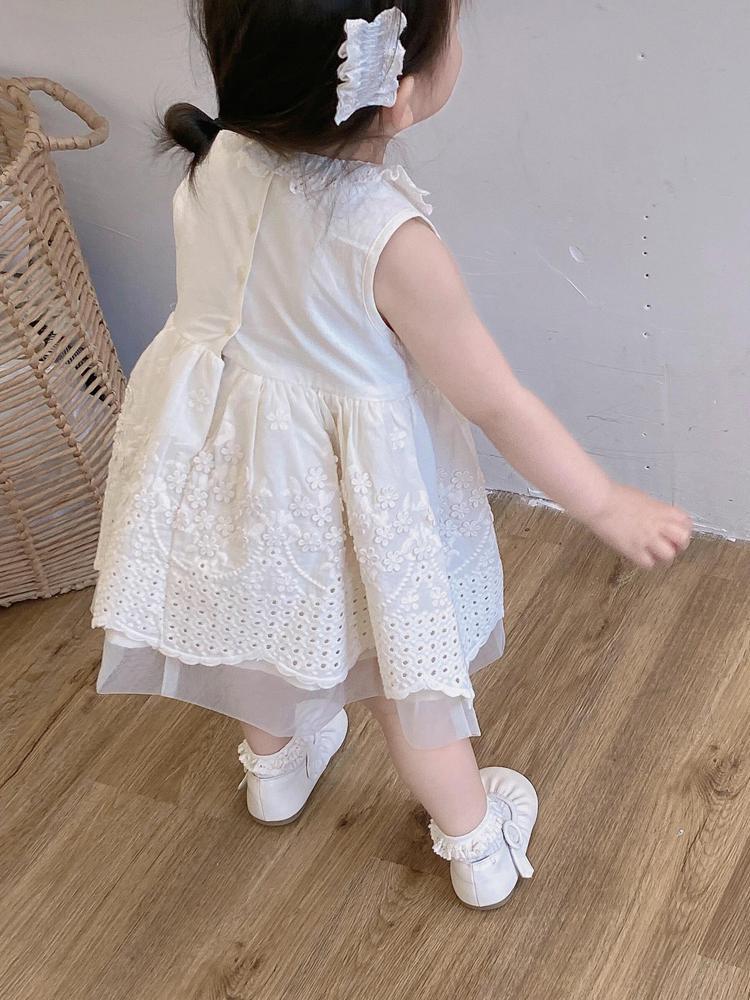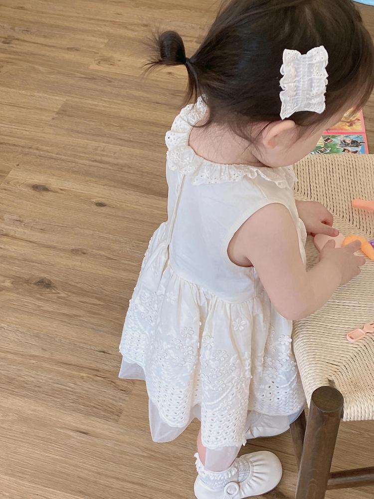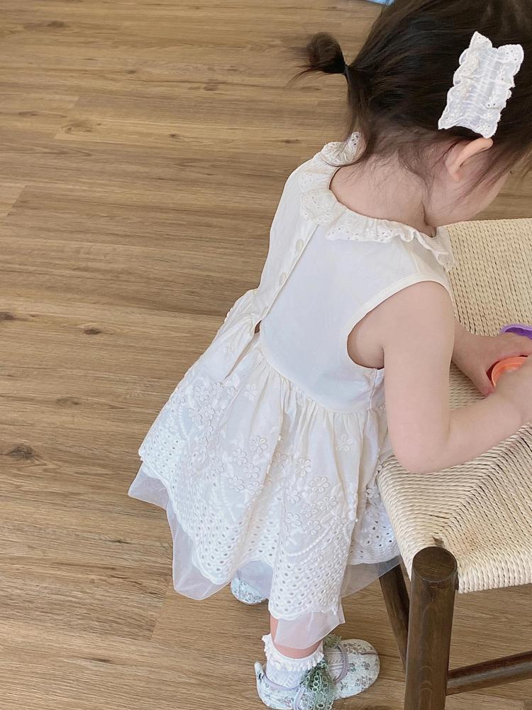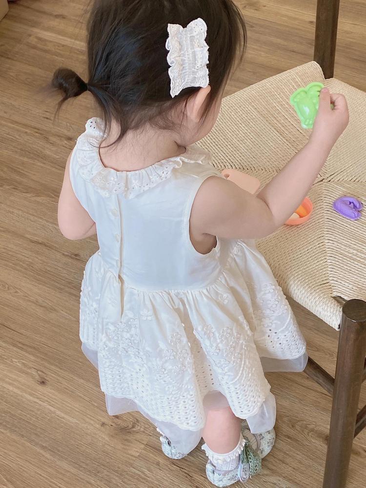 한국 스타일 여자 드레스 25 여름 새 아기 레이스 베이지 조끼 드레스 여자 아기 연회 드레스