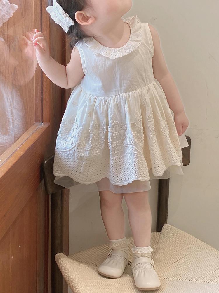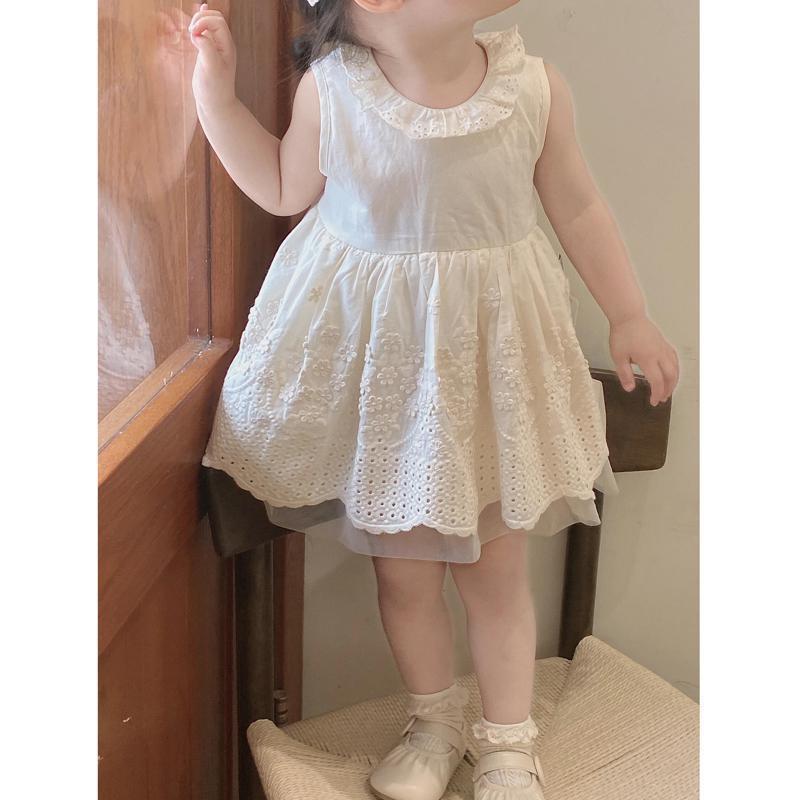 한국 스타일 여자 드레스 25 여름 새 아기 레이스 베이지 조끼 드레스 여자 아기 연회 드레스스토어 가기