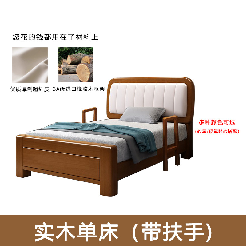 노인을 위한 원목 침대, 싱글 침대 1.2m 홈 케어 침대 1.35 팔걸이가 있는 부드러운 어린이 침대 1.5m스토어 가기