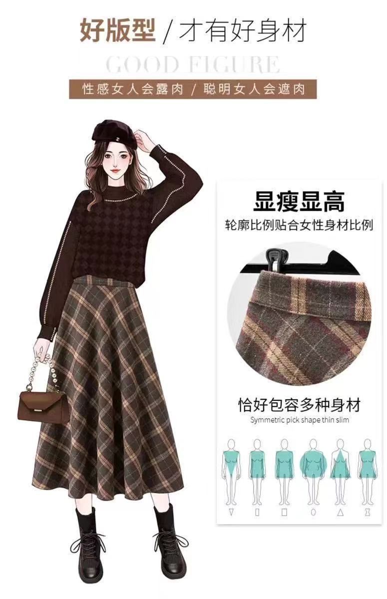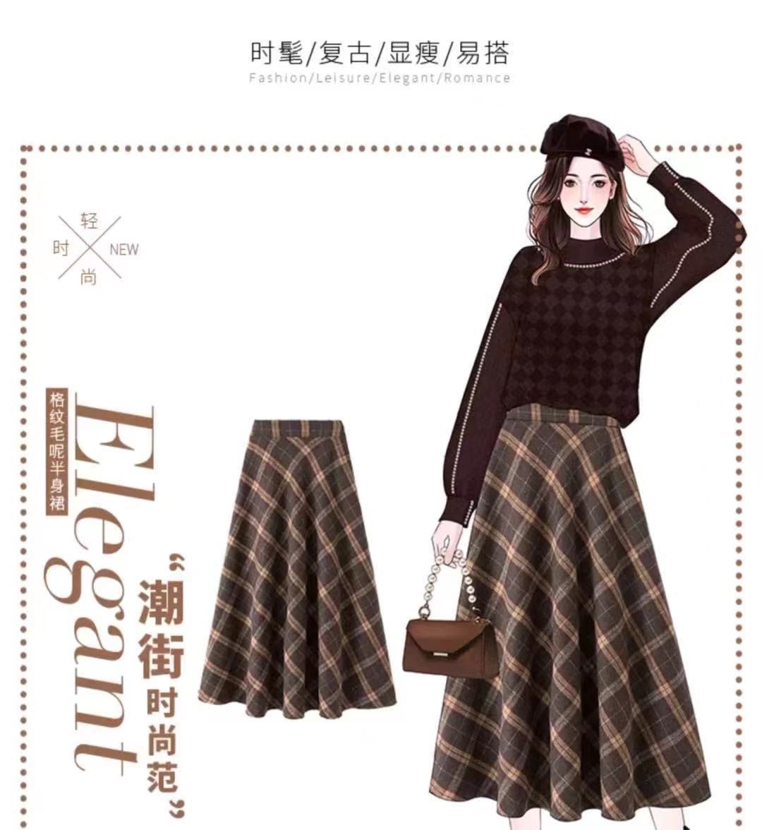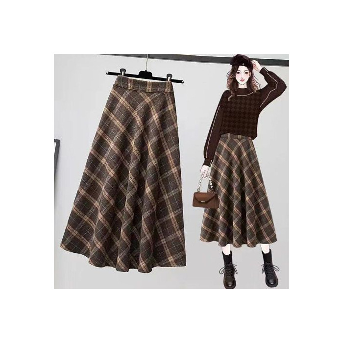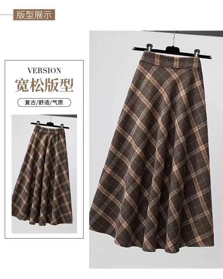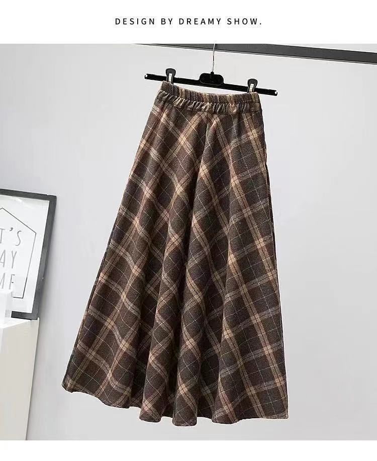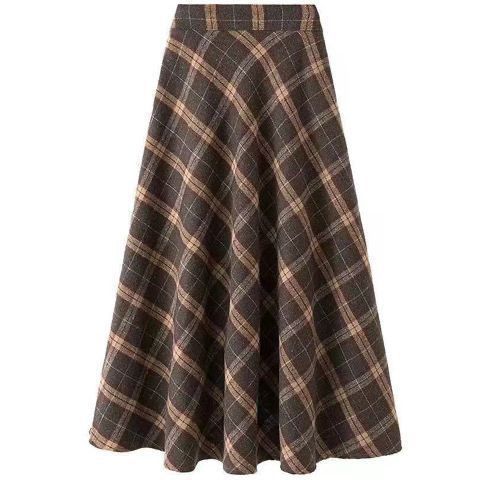 여성용 봄 여름 체크 무늬 스커트, 복고풍 신작 대형 중간 길이 A 라인 스커트, 빅 스윙 스커트, 하이 웨이스트 슬리밍 롱 스커트, 트렌디스토어 가기