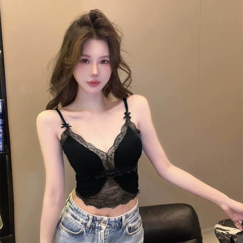 L3318을 한국어로 번역해 주세요. # 레이온 퓨어 러브 브이넥 레이스 스플리싱 캐미솔 섹시한 아름다운 등 슬림핏 이너 아우터 탑스토어 가기