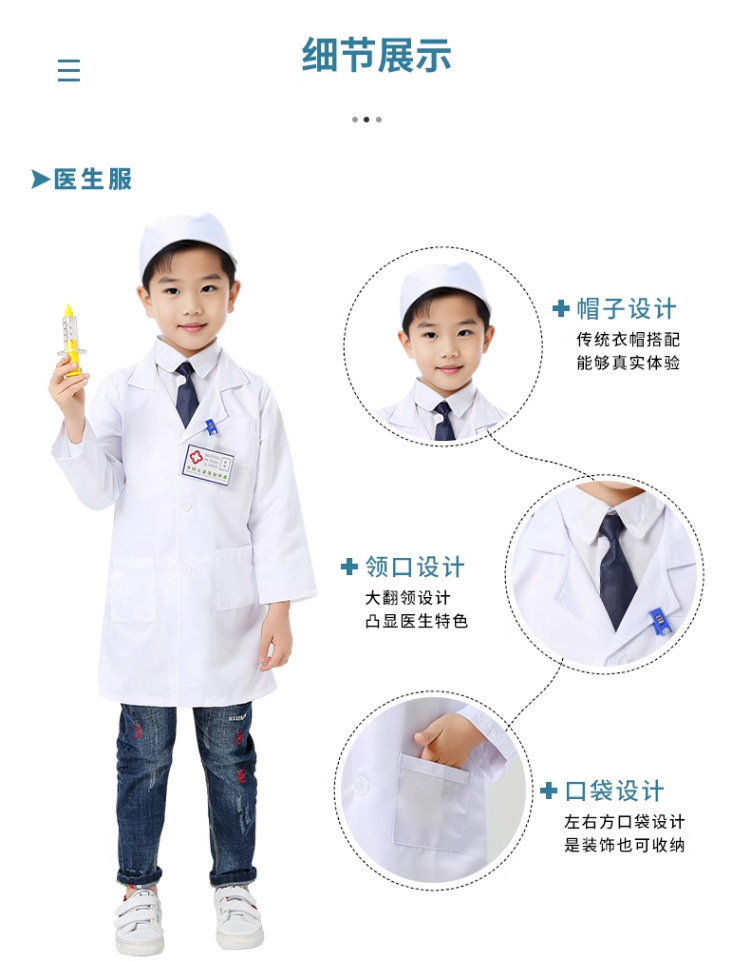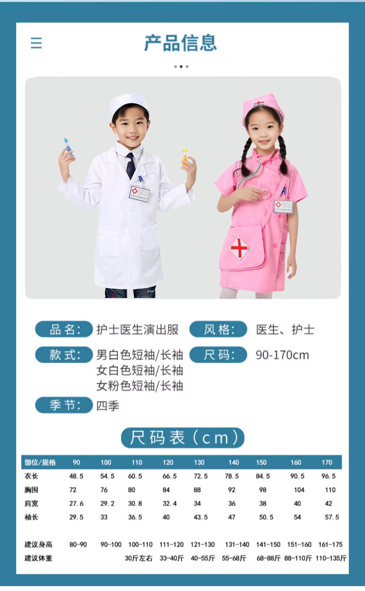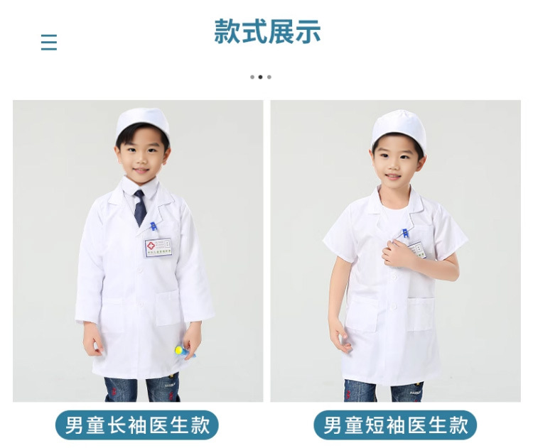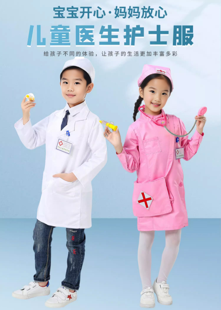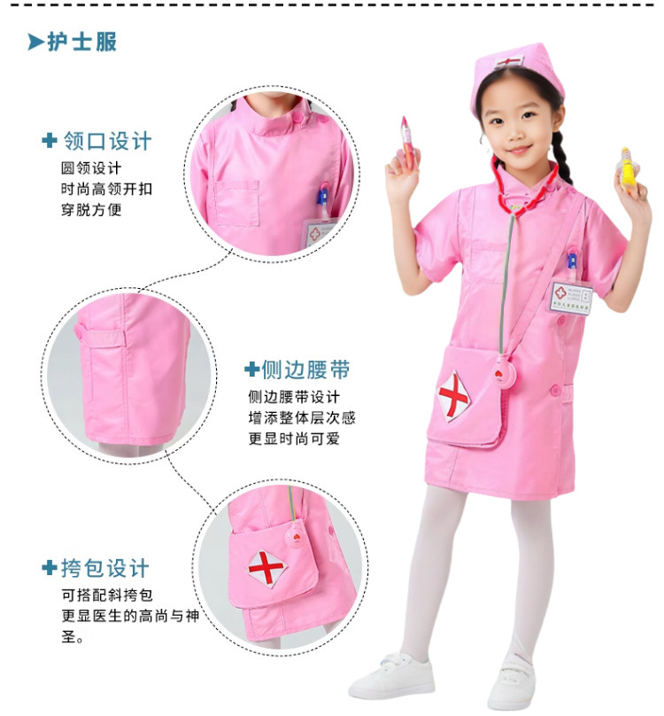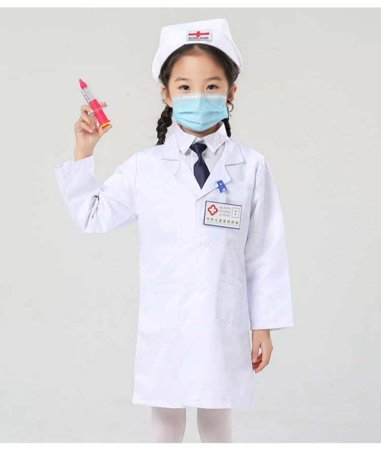 어린이 의사 및 간호사 작업복 세트 과학 실험 흰색 코트 놀이 집 역할 놀이스토어 가기