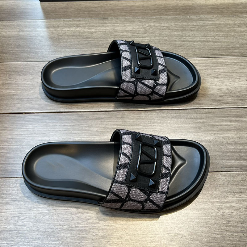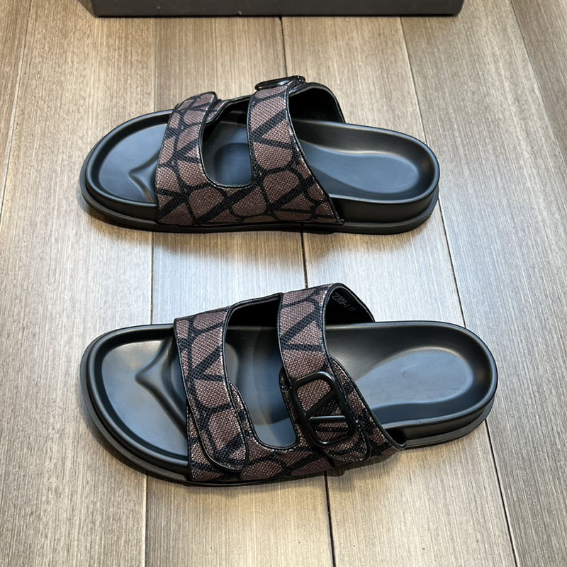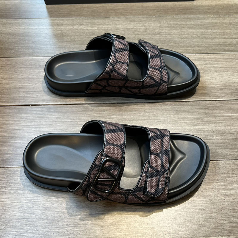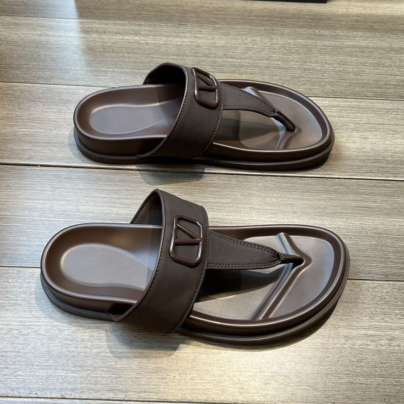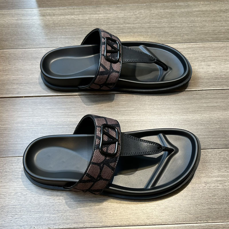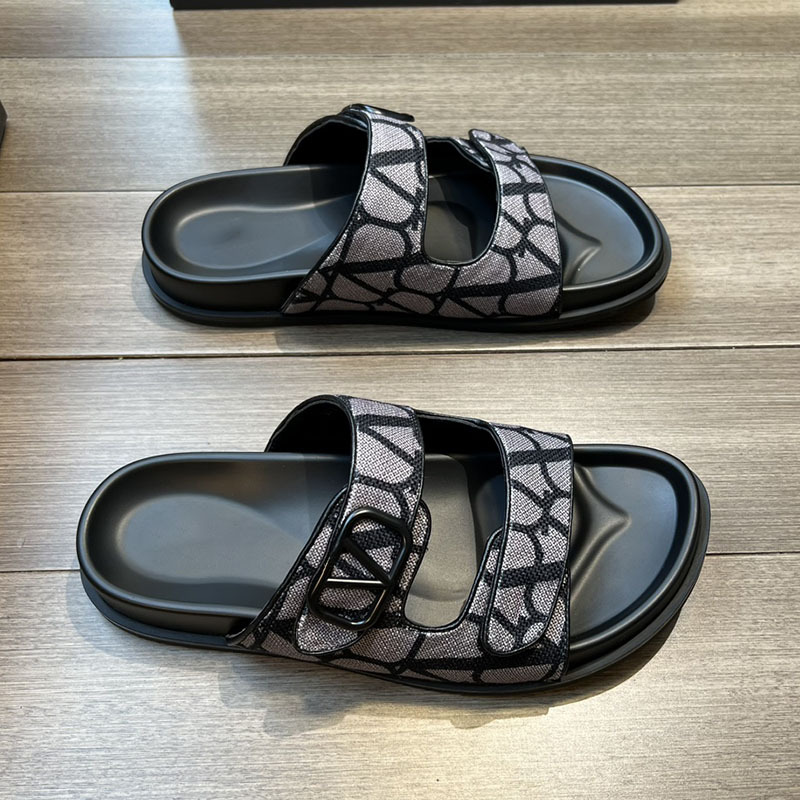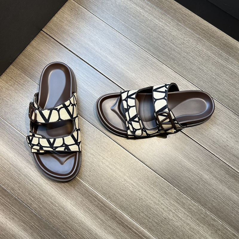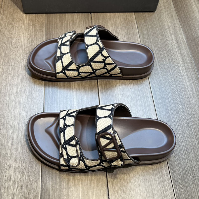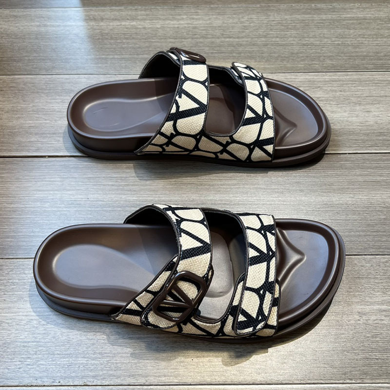 남성용 트렌디 브랜드 슬리퍼 스트라이프 체크 무늬 패션 더블 스트랩 슬리퍼 2025 남성용 새로운 라이트 럭셔리 소가죽 소프트 솔 슬리퍼