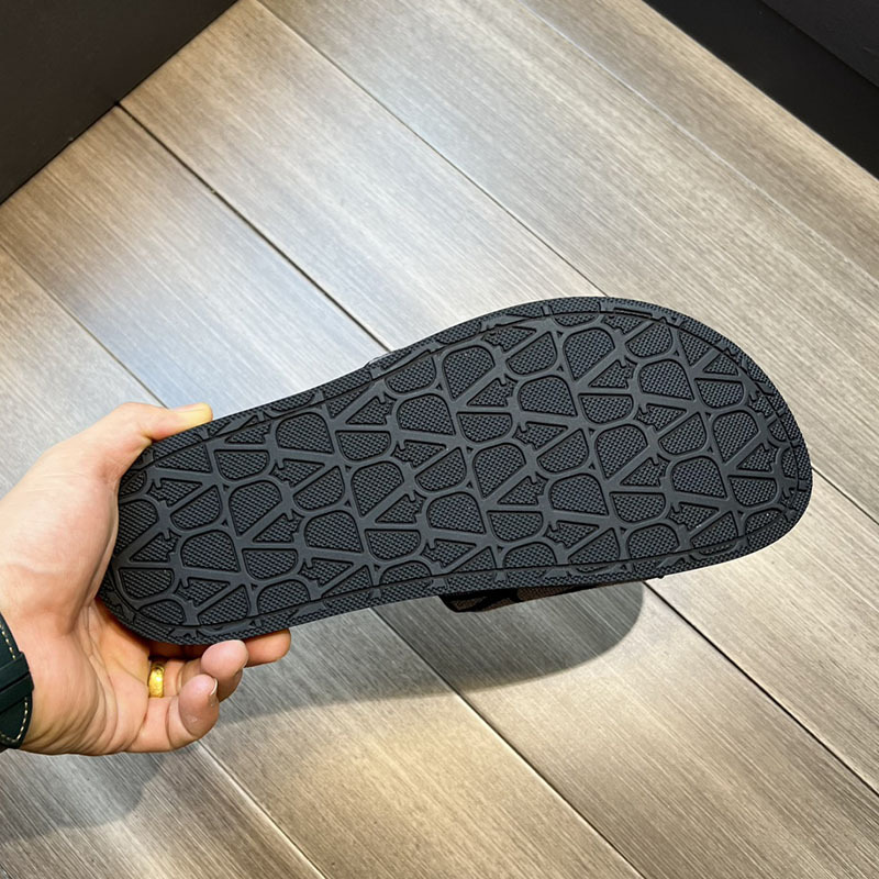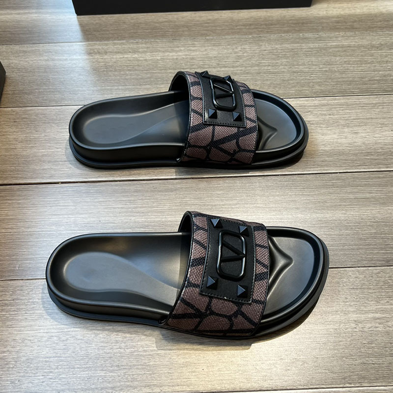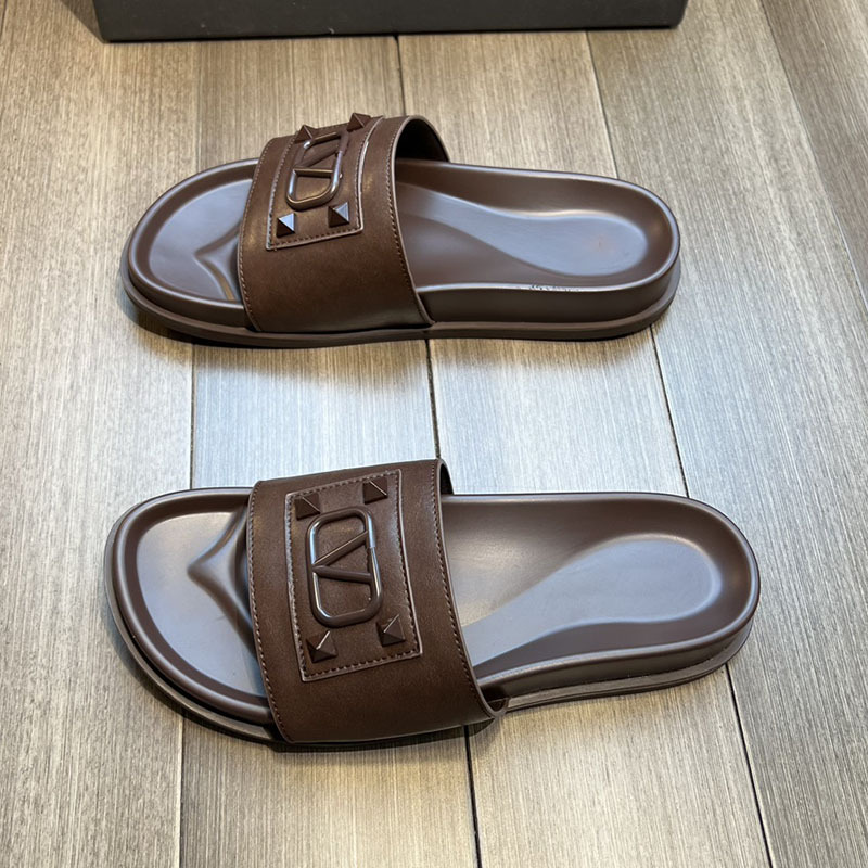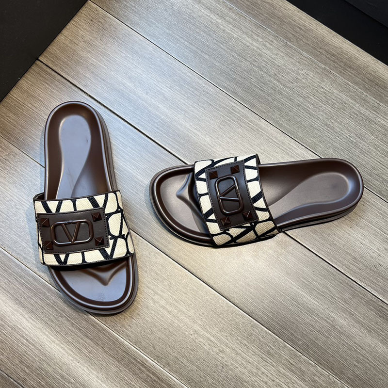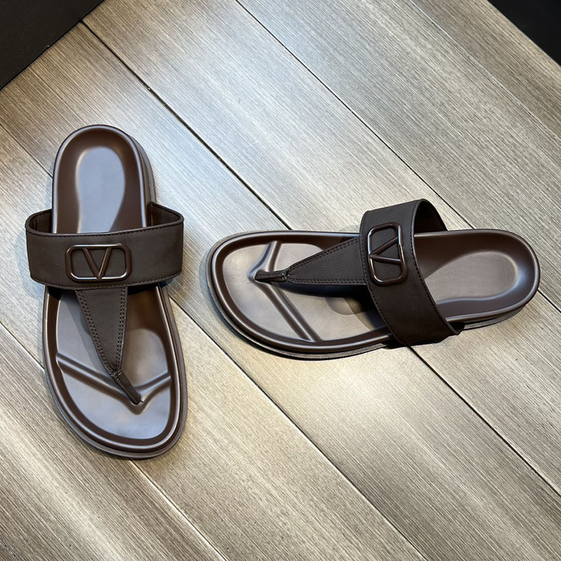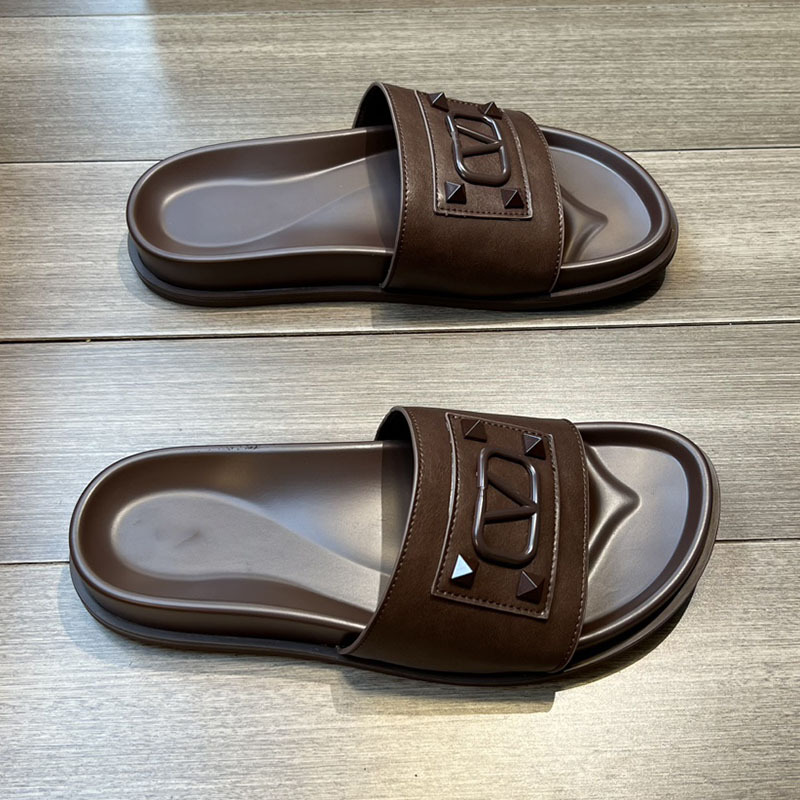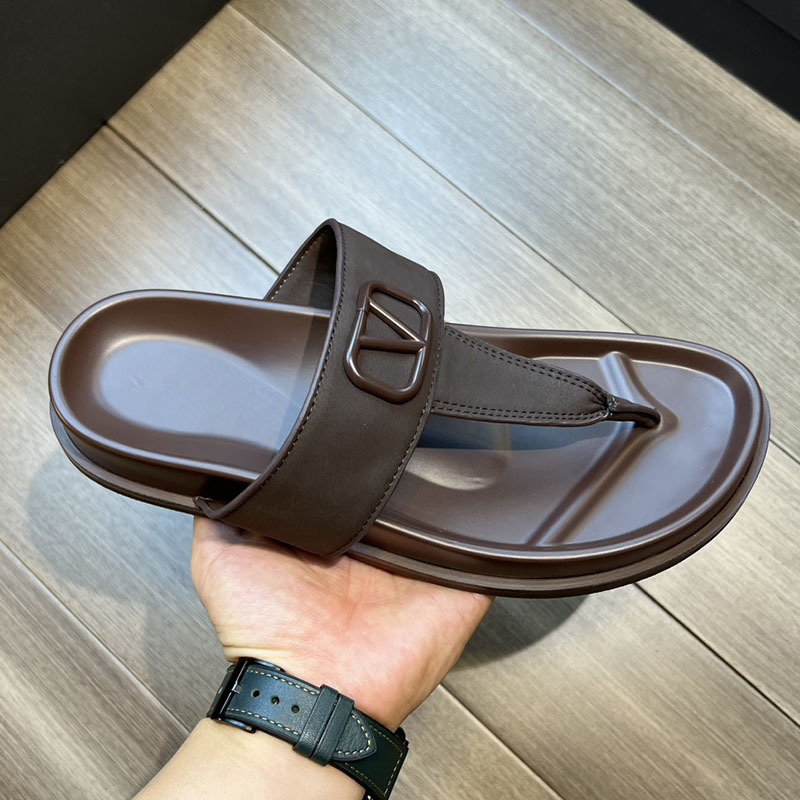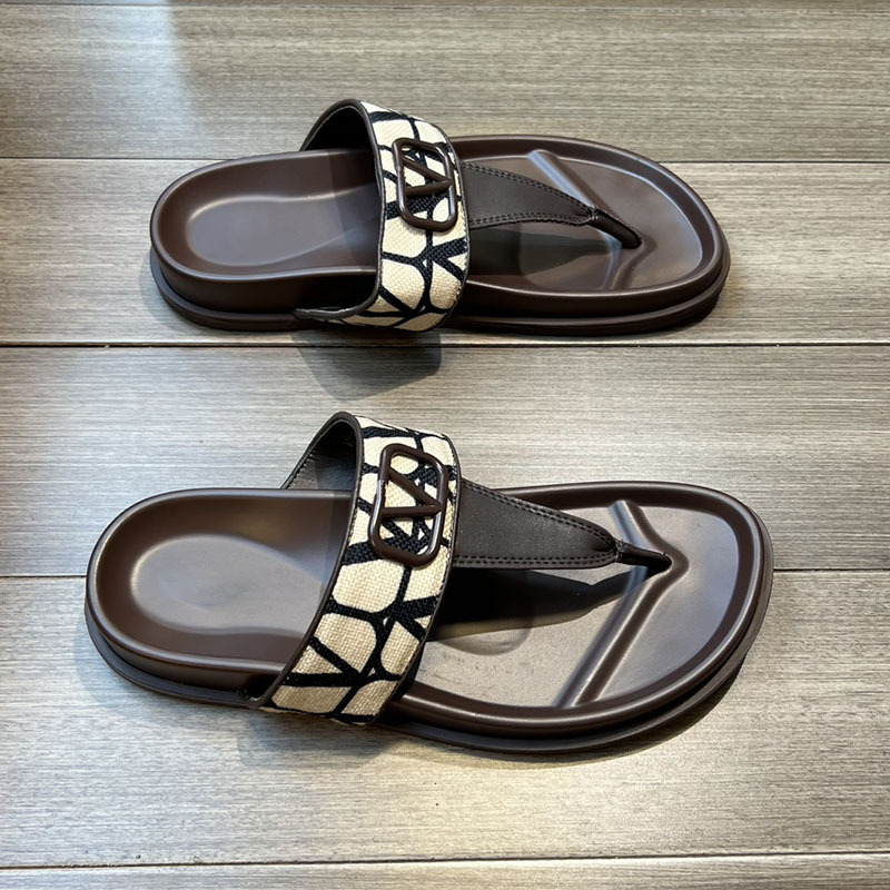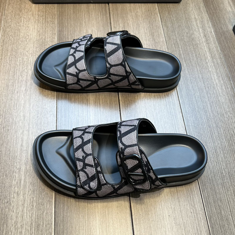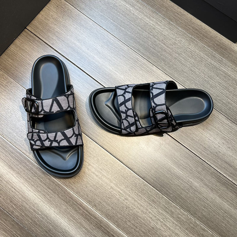 남성용 트렌디 브랜드 슬리퍼 스트라이프 체크 무늬 패션 더블 스트랩 슬리퍼 2025 남성용 새로운 라이트 럭셔리 소가죽 소프트 솔 슬리퍼