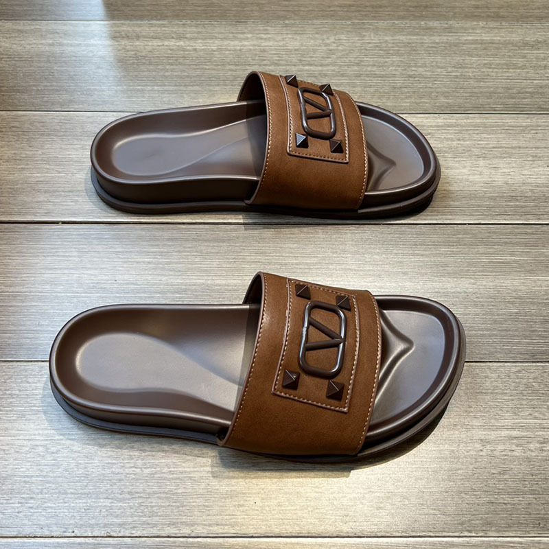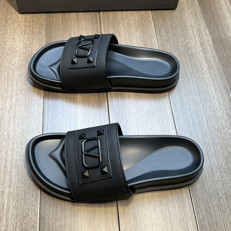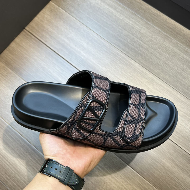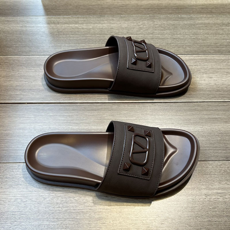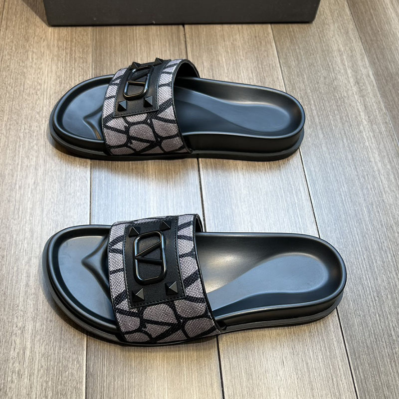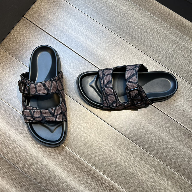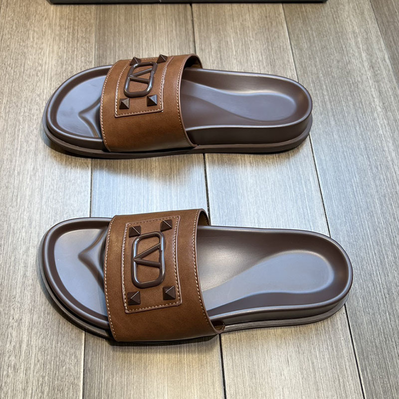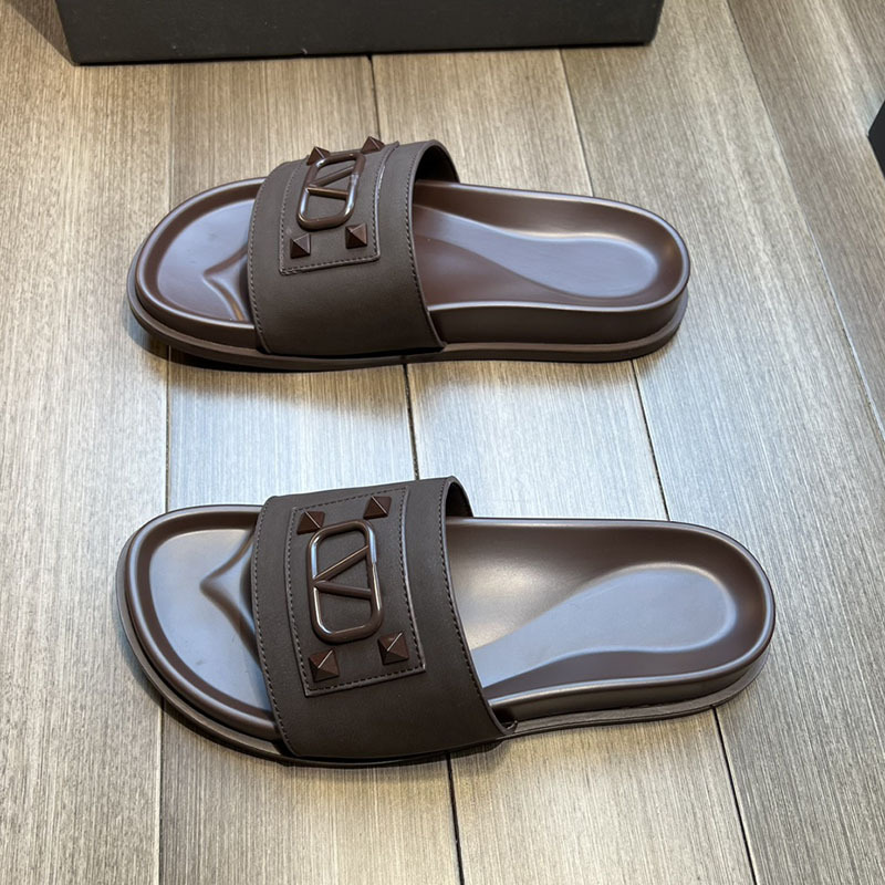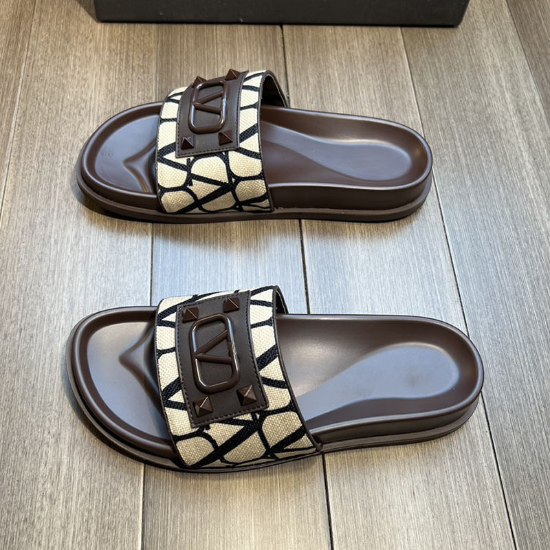 남성용 트렌디 브랜드 슬리퍼 스트라이프 체크 무늬 패션 더블 스트랩 슬리퍼 2025 남성용 새로운 라이트 럭셔리 소가죽 소프트 솔 슬리퍼