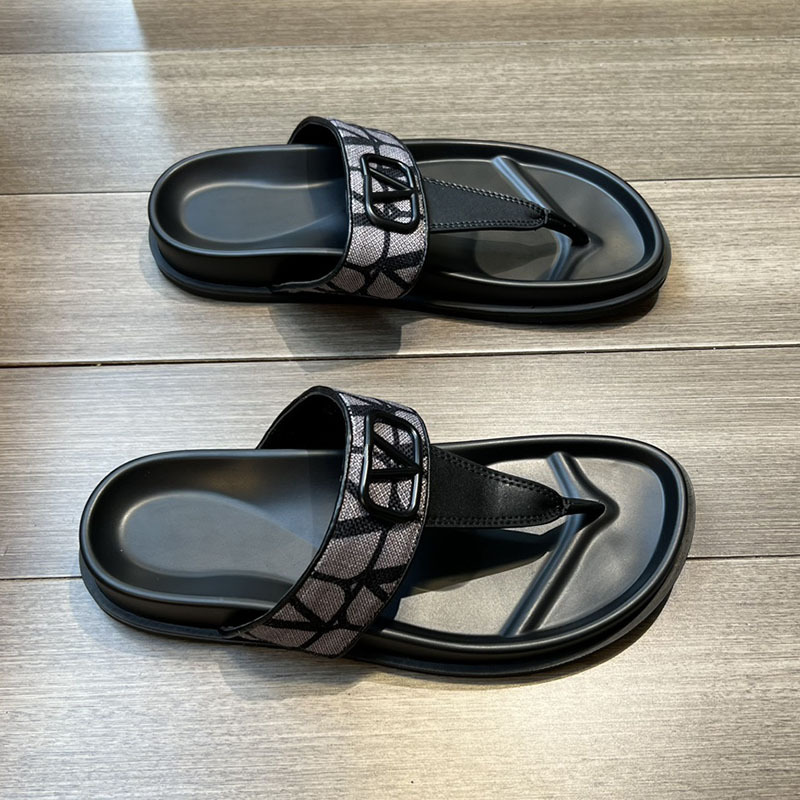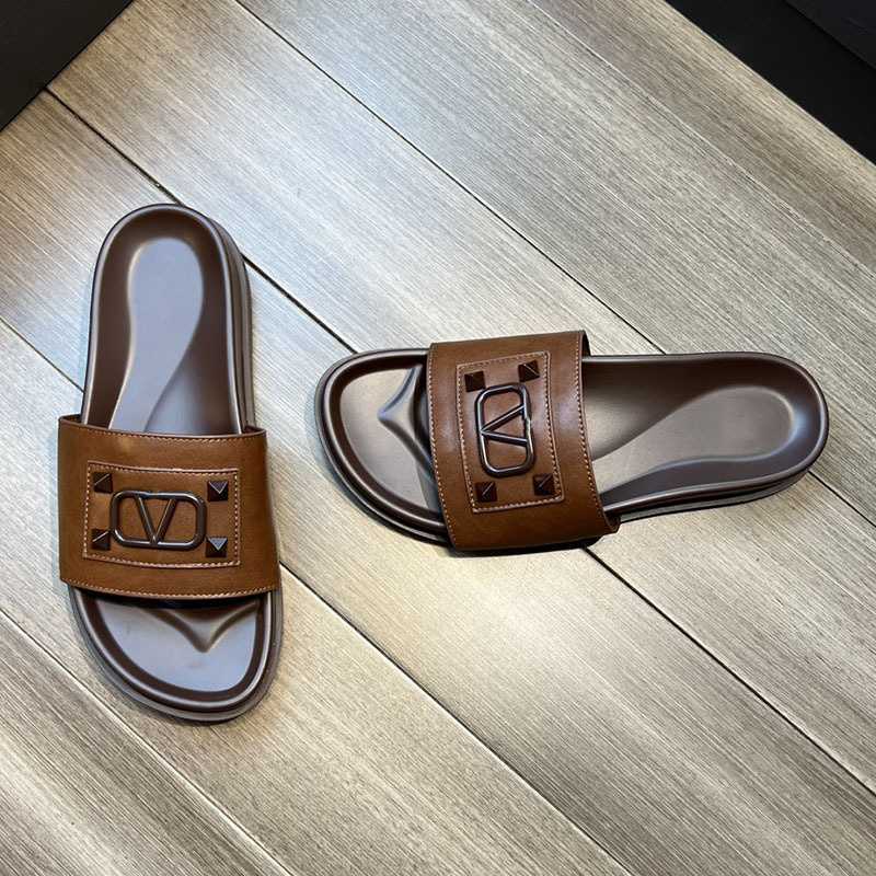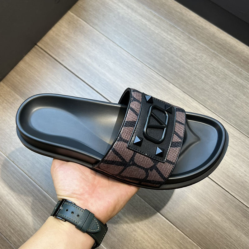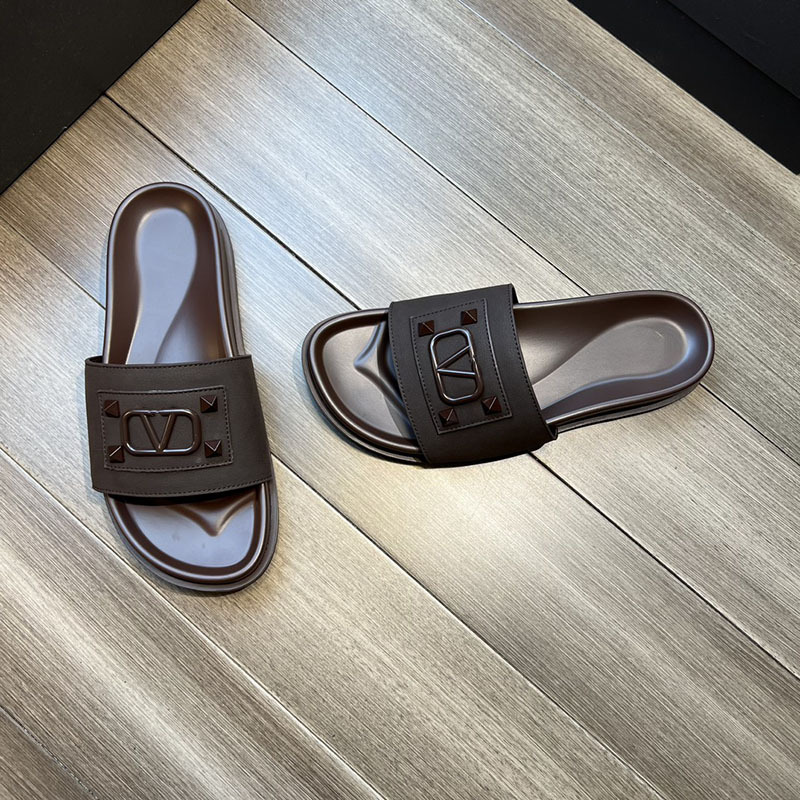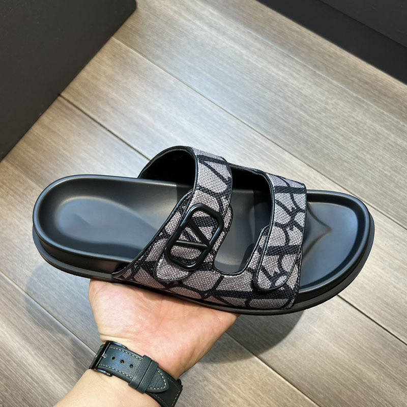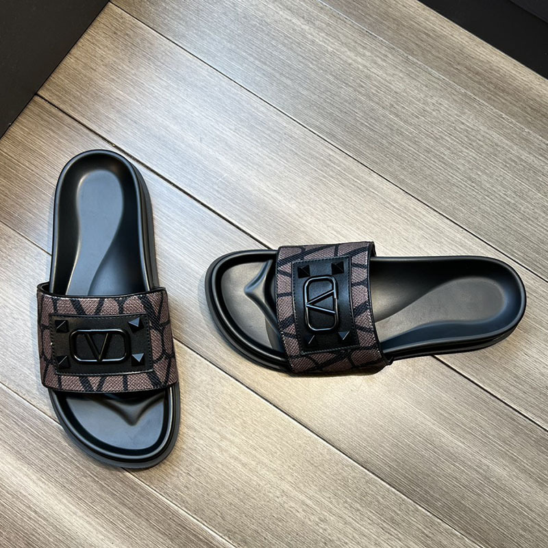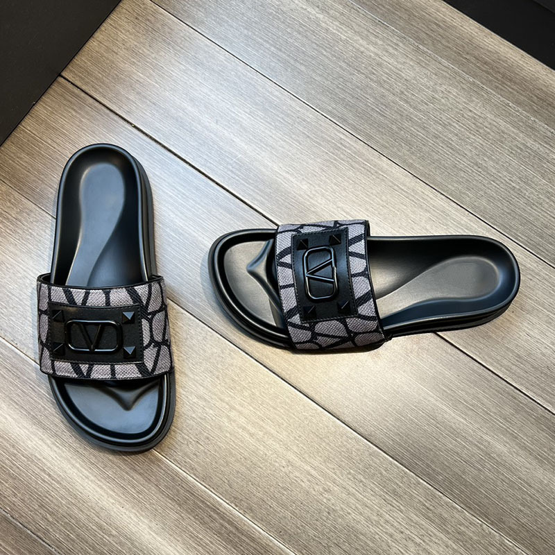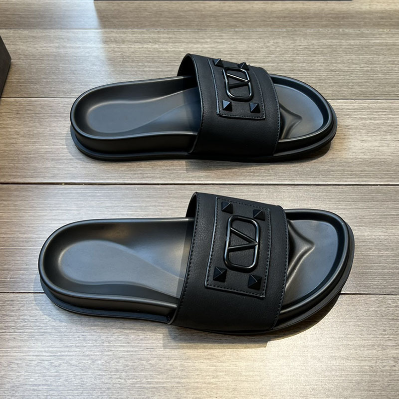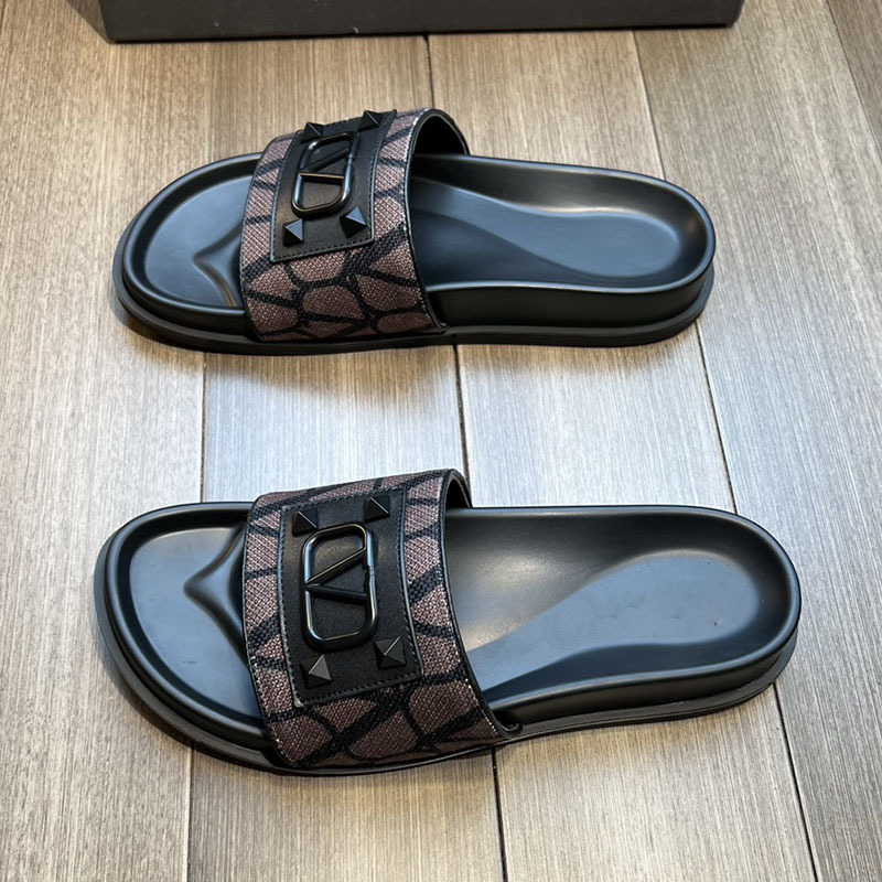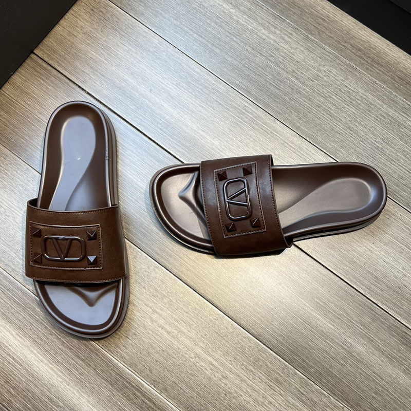 남성용 트렌디 브랜드 슬리퍼 스트라이프 체크 무늬 패션 더블 스트랩 슬리퍼 2025 남성용 새로운 라이트 럭셔리 소가죽 소프트 솔 슬리퍼
