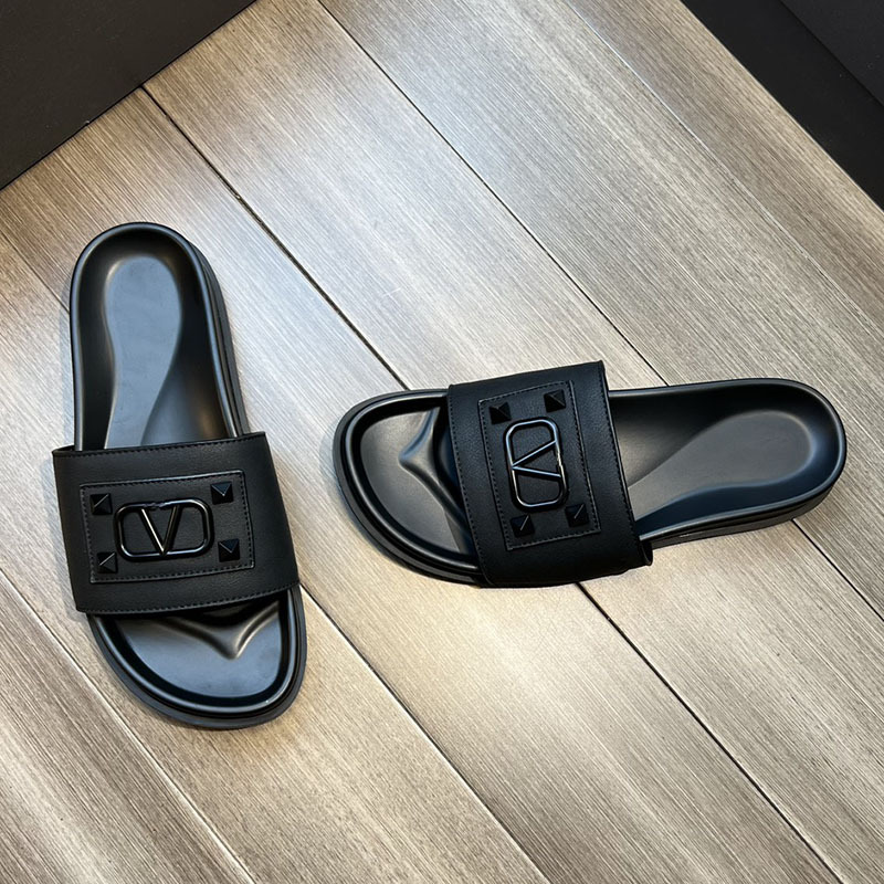 남성용 트렌디 브랜드 슬리퍼 스트라이프 체크 무늬 패션 더블 스트랩 슬리퍼 2025 남성용 새로운 라이트 럭셔리 소가죽 소프트 솔 슬리퍼스토어 가기