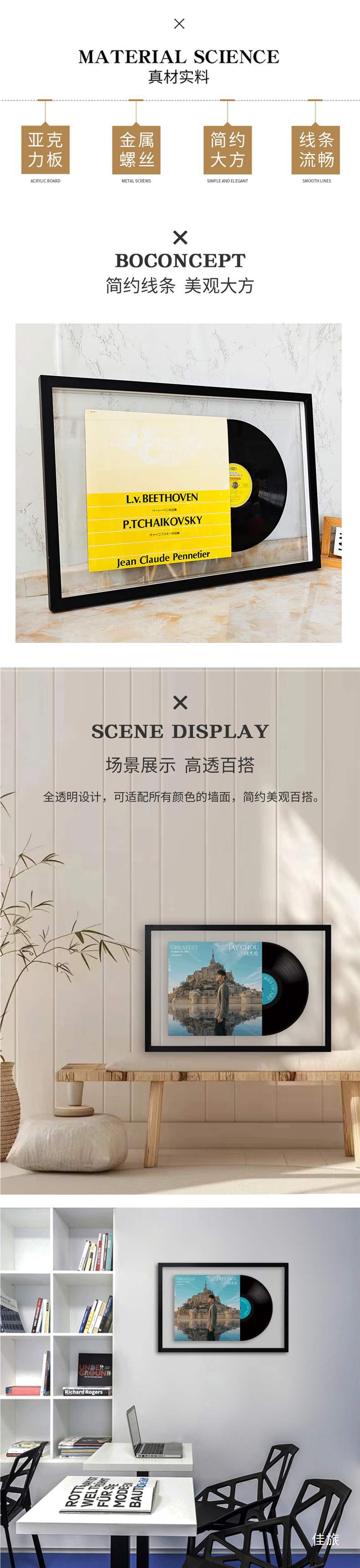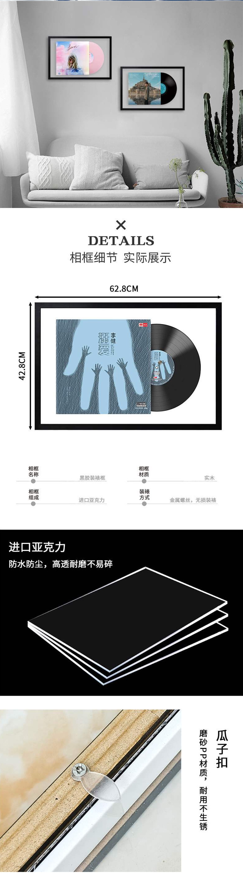 12inch 비닐 레코드 양면 투명 액자 사진 프레임 음악 CD 앨범 보관 프레임 단단한 나무 벽 디스플레이 스탠드