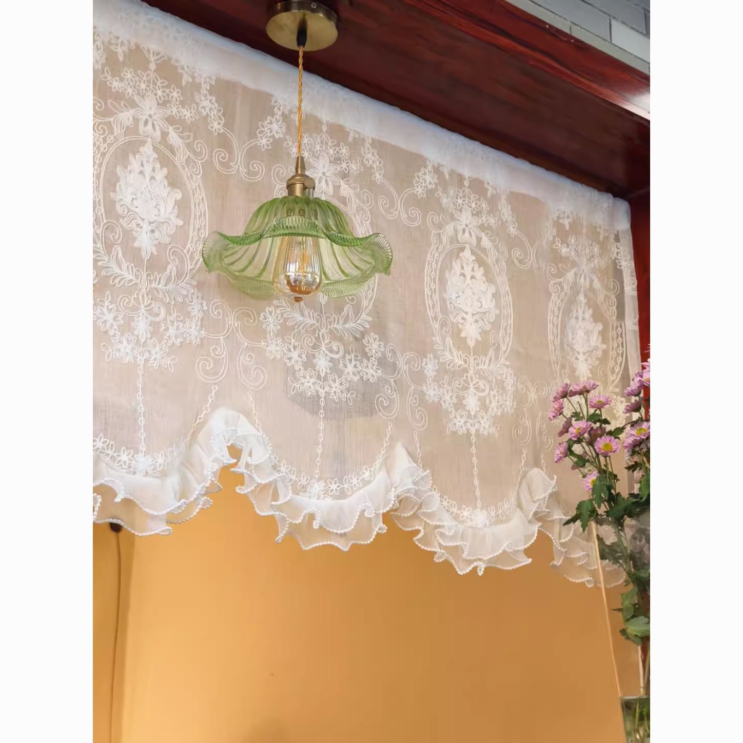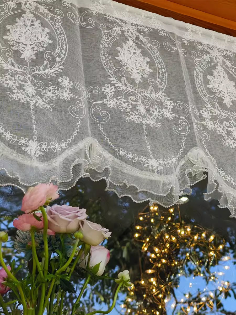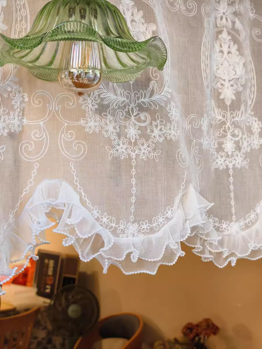 프렌치 프린세스 스타일 도어 커튼, 플로어 창 캐비닛 파티션, 한국식 커튼, 침실 하프 커튼, 윈도우 커튼, 아치형 거즈 커튼 헤드 커버