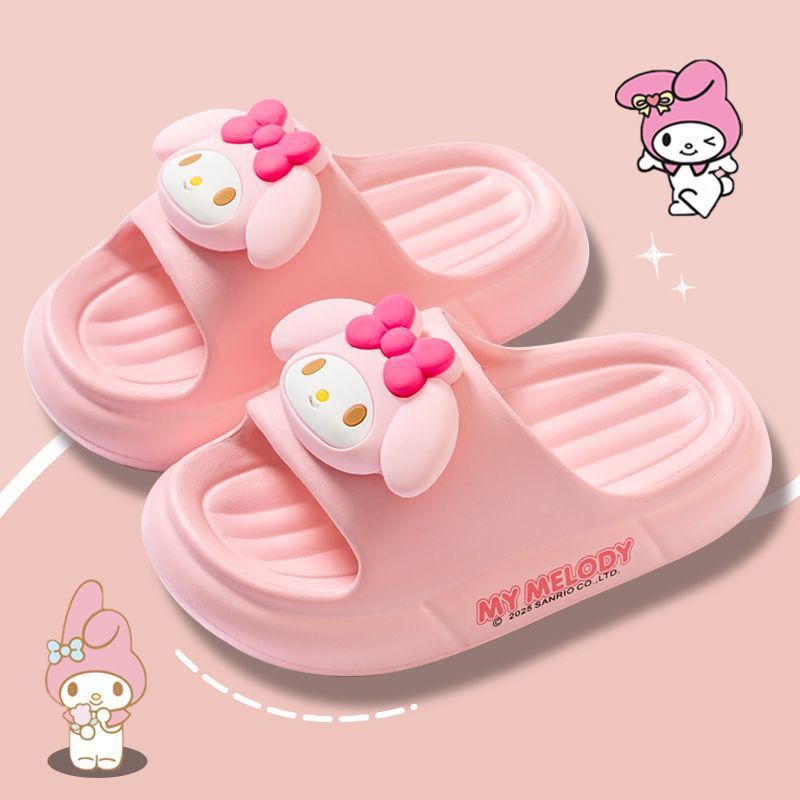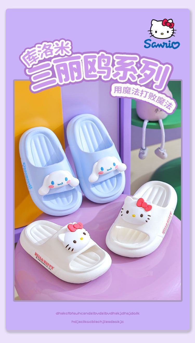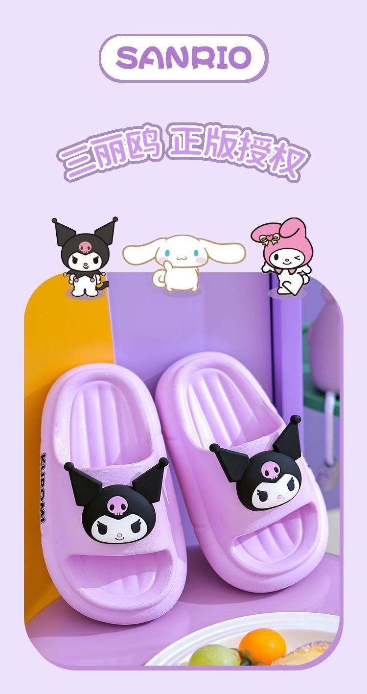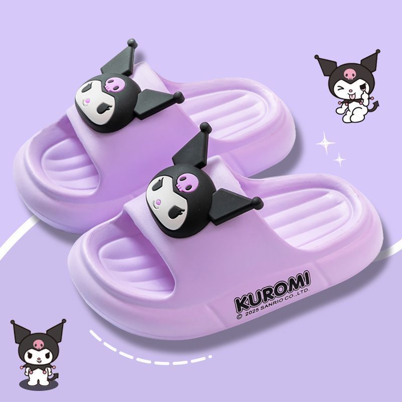 Sanrio 2025 새로운 EVA Kuromi 슬리퍼 어린이 봄, 여름 아기 소녀 슬리퍼 미끄럼 방지 만화스토어 가기