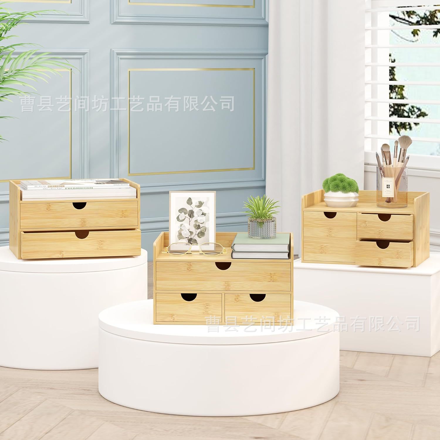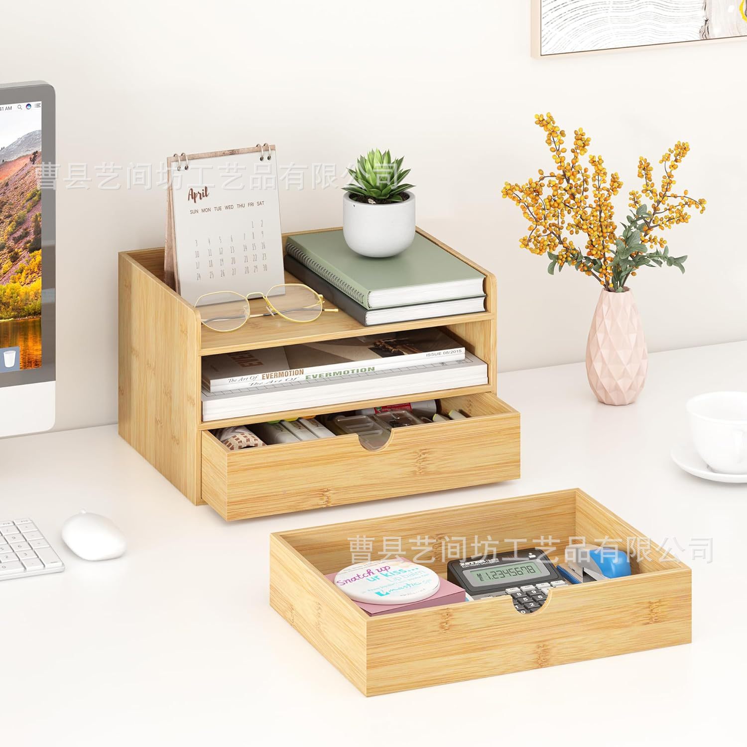 대나무 데스크탑 서랍형 수납함 테이블 화장대 침대 옆 테이블 책상 간단한 다층 수납 선반 나무스토어 가기