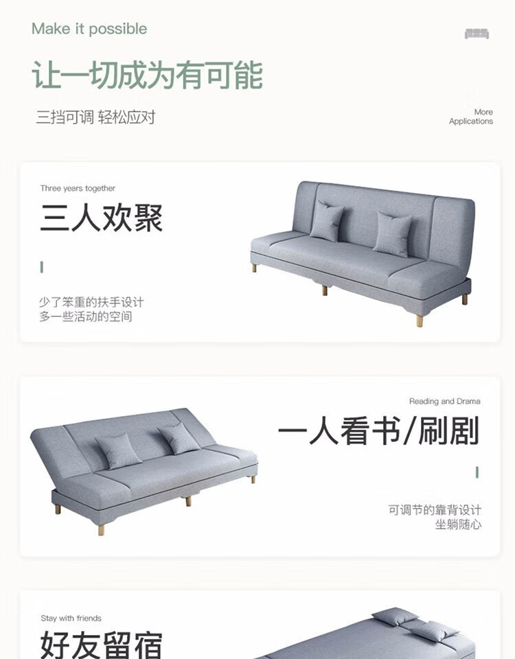 게으른 소파 거실 작은 아파트 이중 목적 침대 임대 주택 싱글 및 더블 접이식 침대 경제적 인 패브릭 jω스토어 가기
