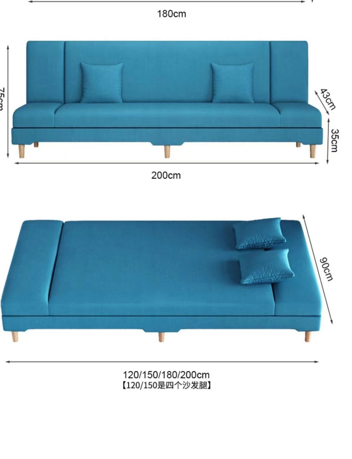 • 1.8m [나무다리] 베개와 소파커버로 3~4명이 앉을 수 있습니다.