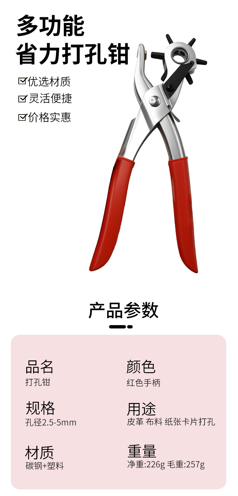 다기능 둥근 구멍 수동 구멍 펀치 벨트 구멍 펜치 벨트 가죽 종이 구멍 펜치 제조 업체 도매
