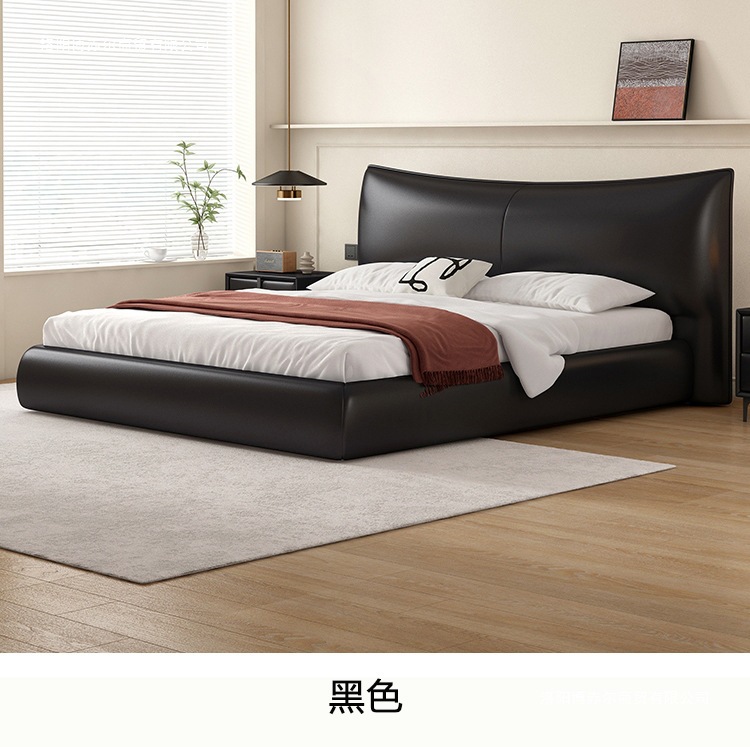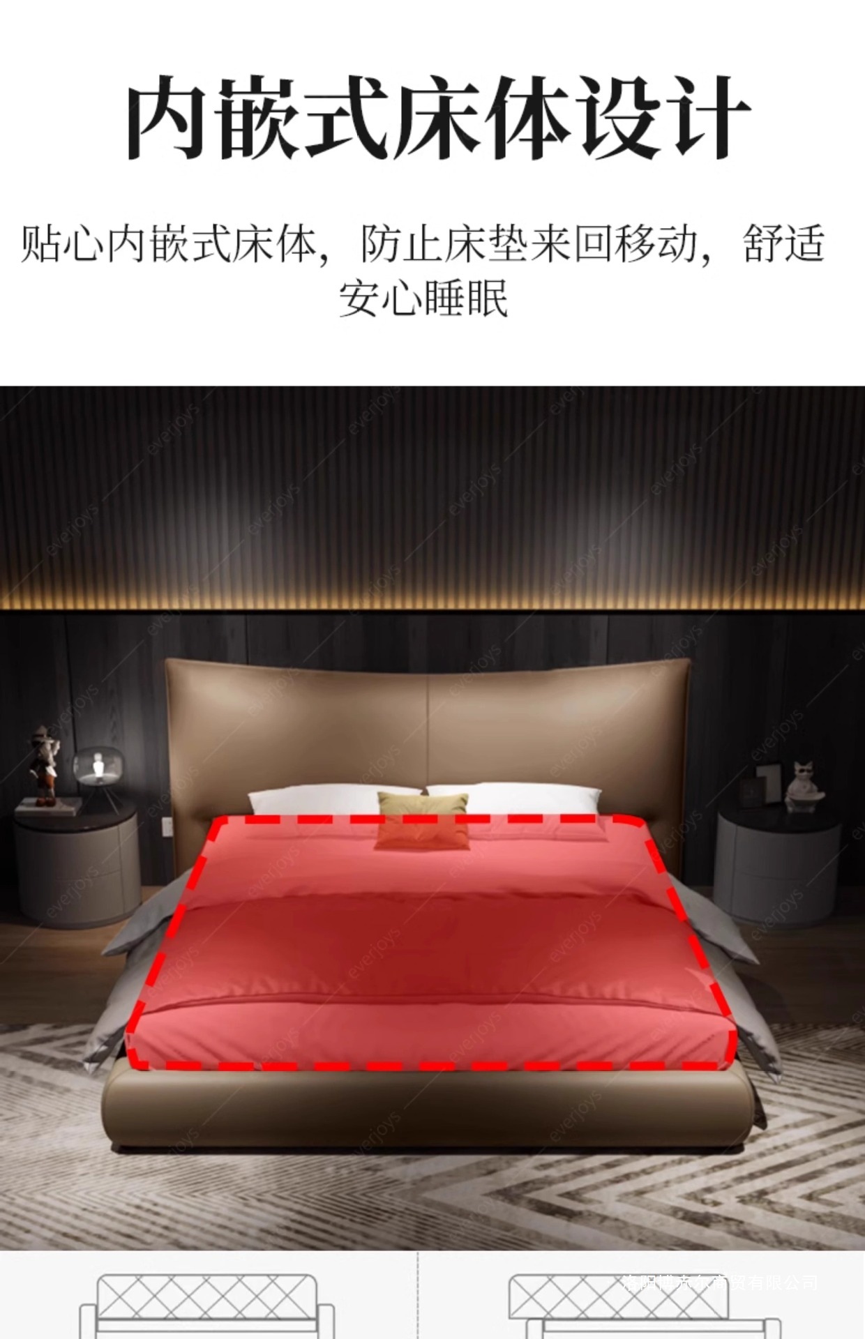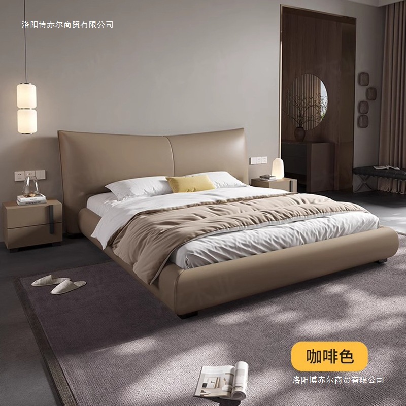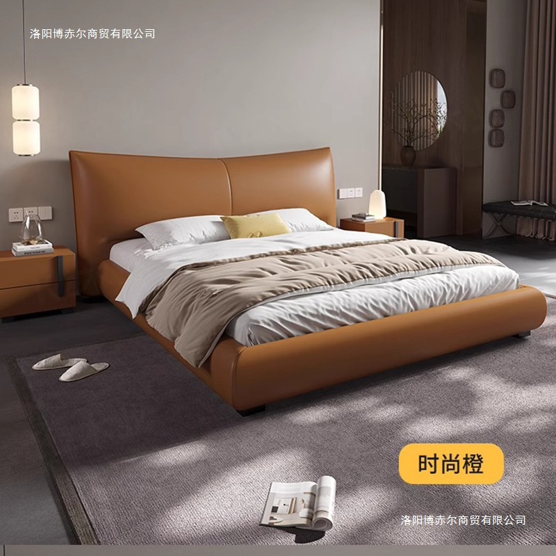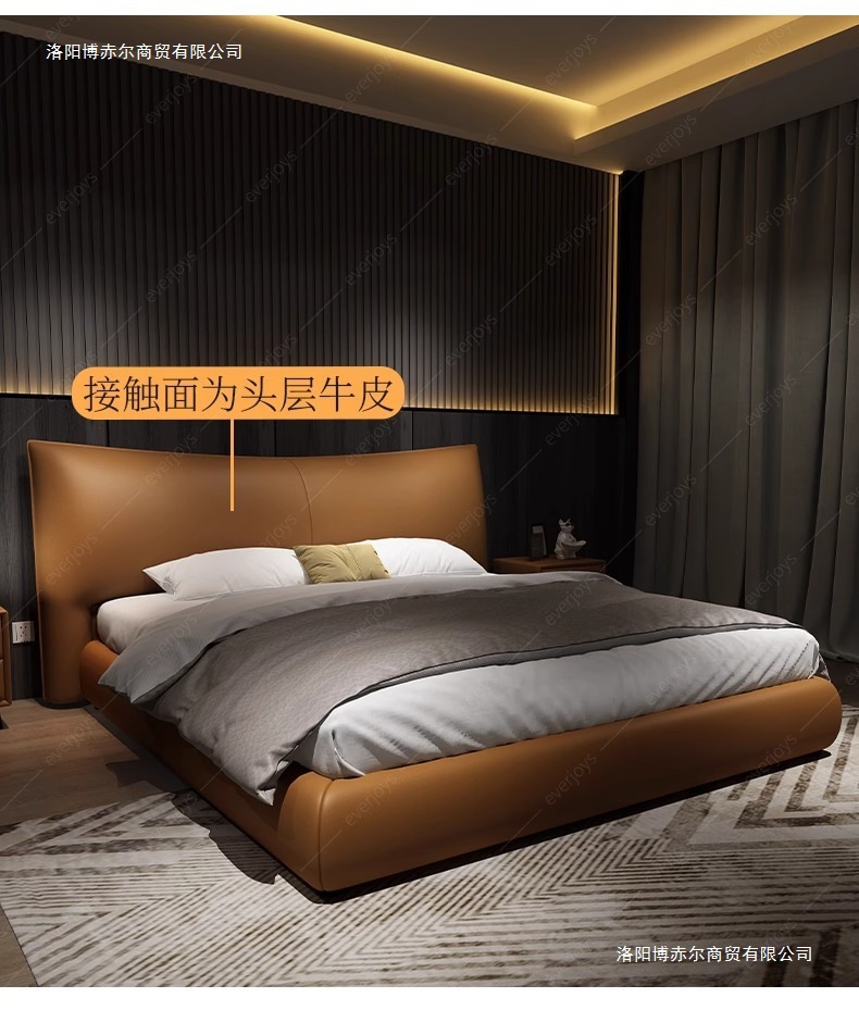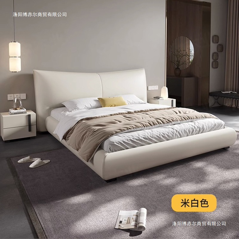정품 가죽 침대 더블 헤드 레이어 소가죽 침대 이탈리아 미니멀 샤넬 모던 심플 마스터 침실 웨딩 침대 소프트 패키지 Foshan Furniture