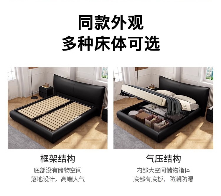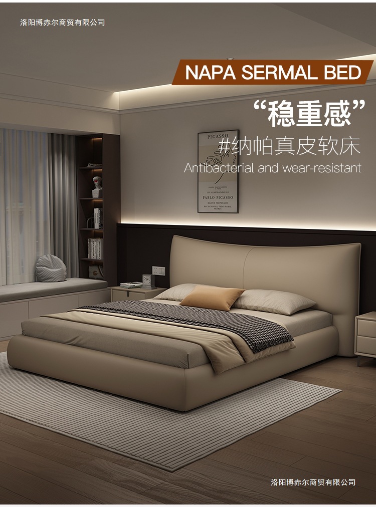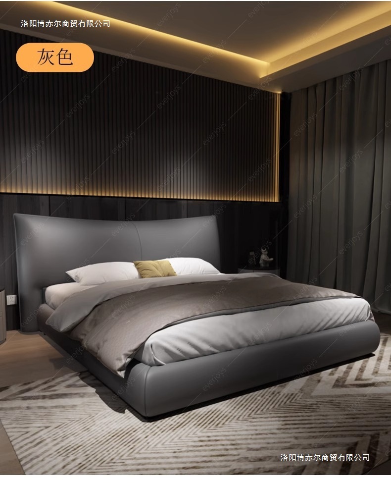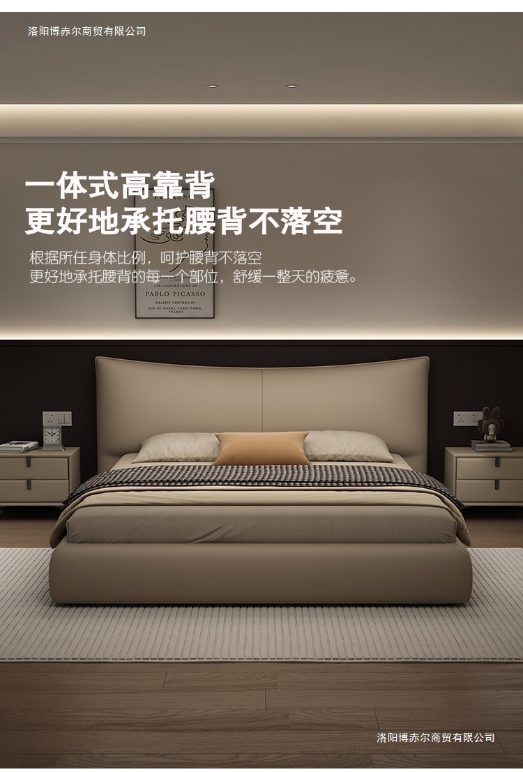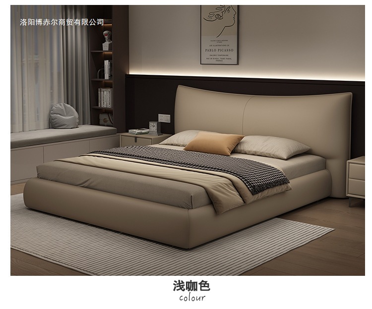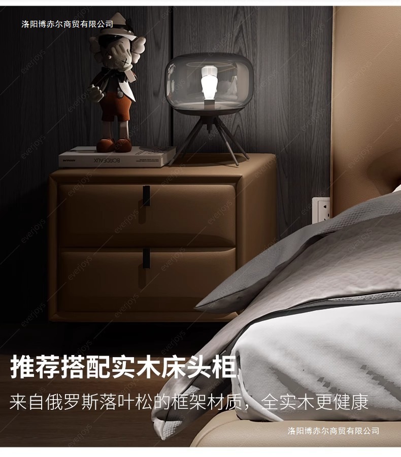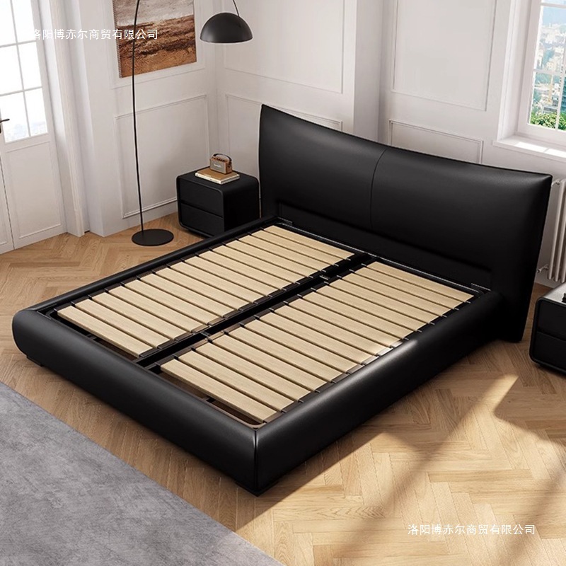 정품 가죽 침대 더블 헤드 레이어 소가죽 침대 이탈리아 미니멀 샤넬 모던 심플 마스터 침실 웨딩 침대 소프트 패키지 Foshan Furniture