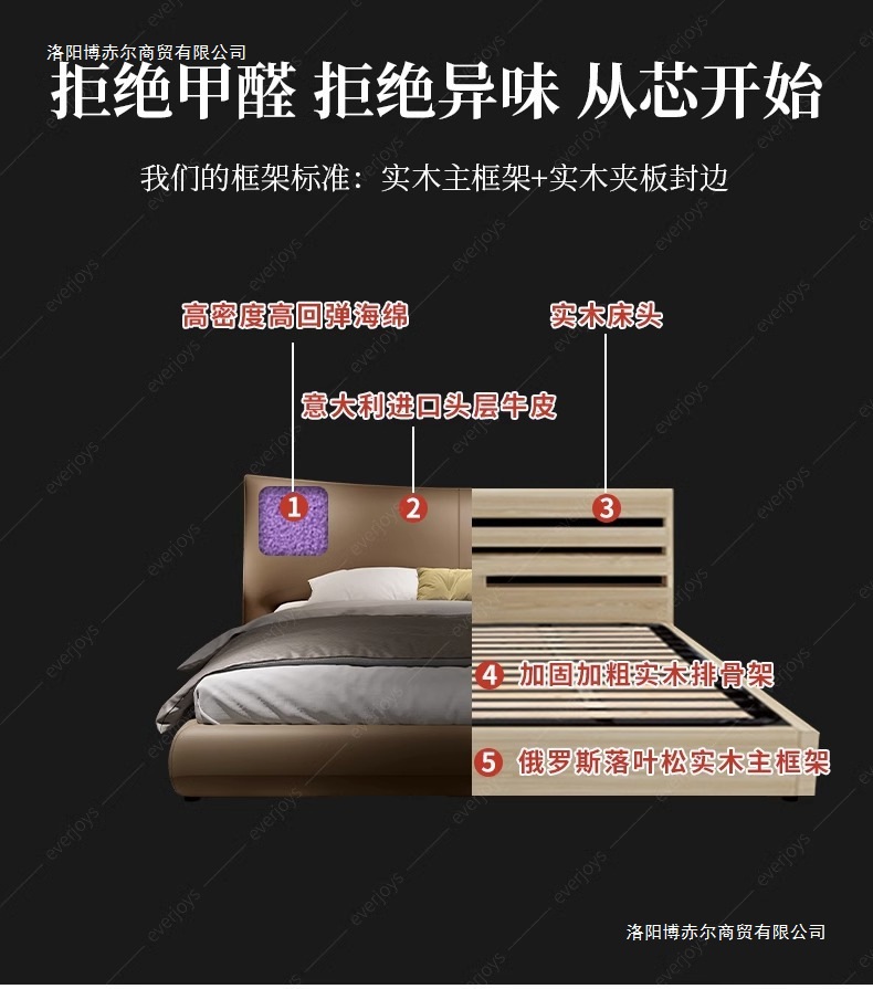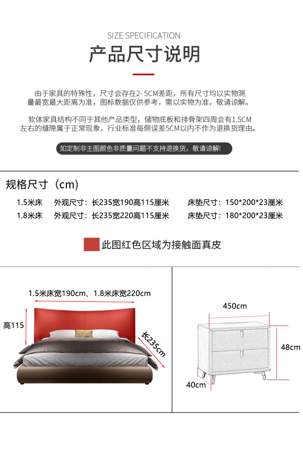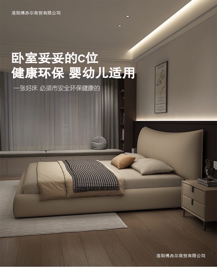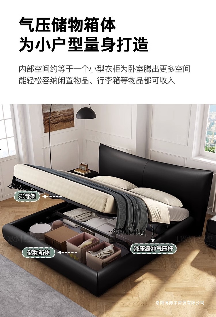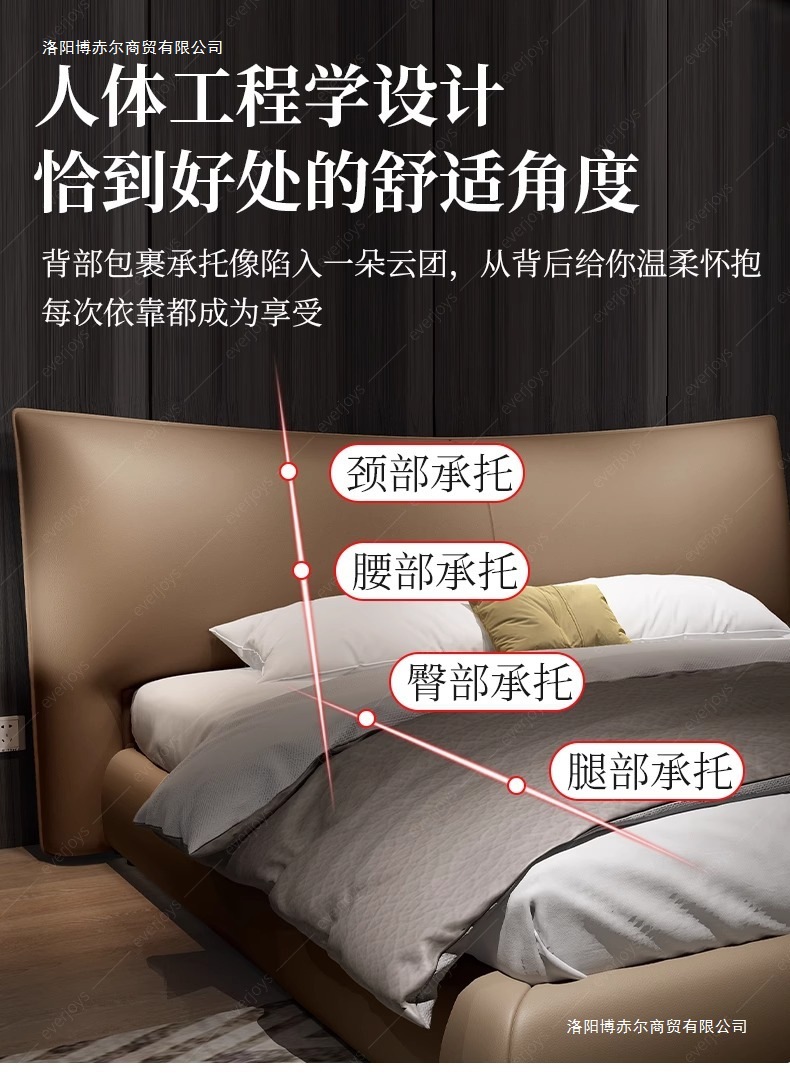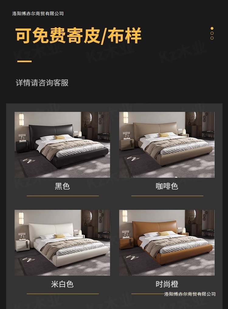 정품 가죽 침대 더블 헤드 레이어 소가죽 침대 이탈리아 미니멀 샤넬 모던 심플 마스터 침실 웨딩 침대 소프트 패키지 Foshan Furniture
