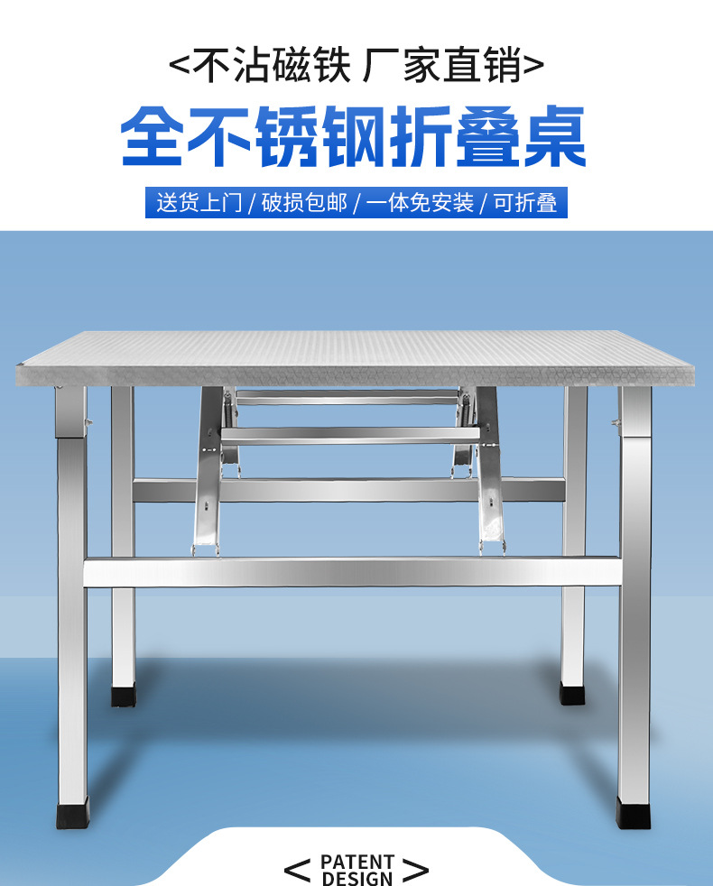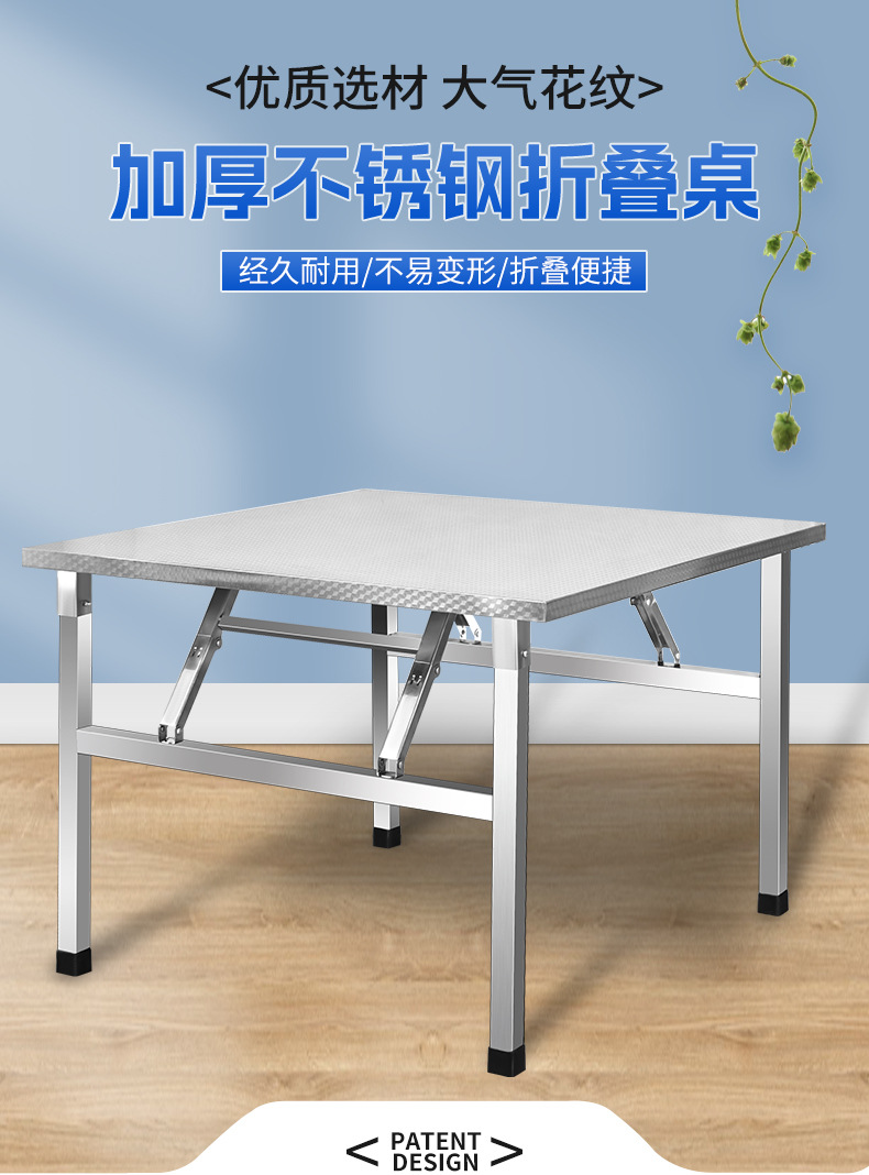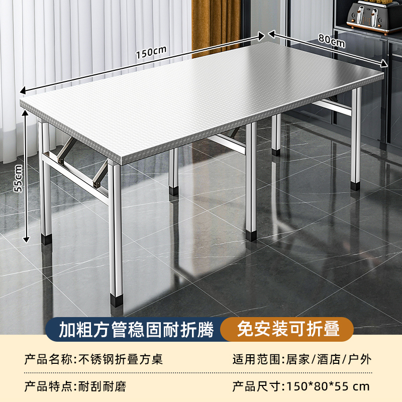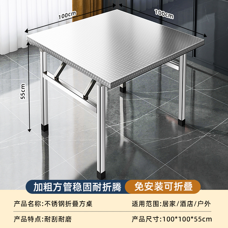 스테인레스 스틸 접이식 테이블 식탁 가정용 기숙사 임대 식탁 쓰기 학습 테이블 스톨 휴대용 소형 사각형