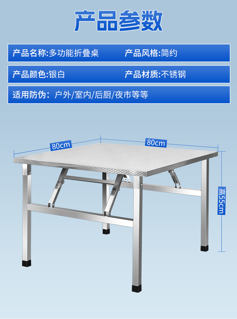 스테인레스 스틸 접이식 테이블 식탁 가정용 기숙사 임대 식탁 쓰기 학습 테이블 스톨 휴대용 소형 사각형스토어 가기