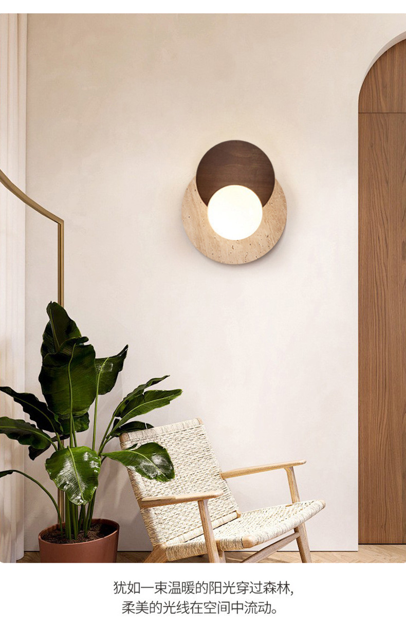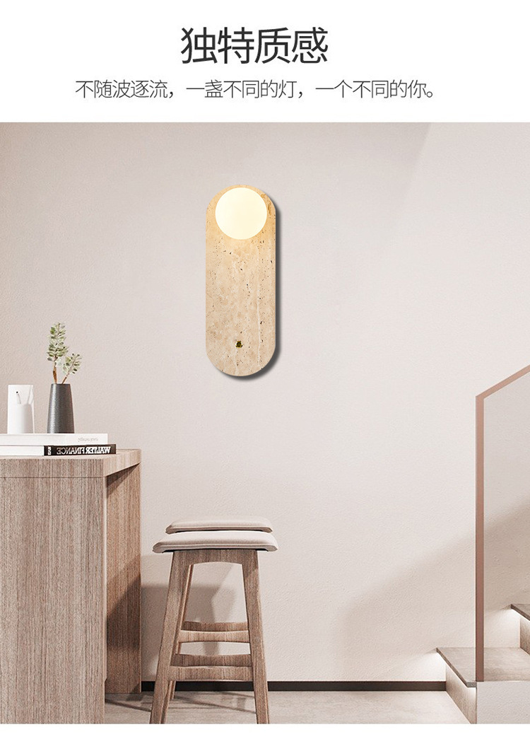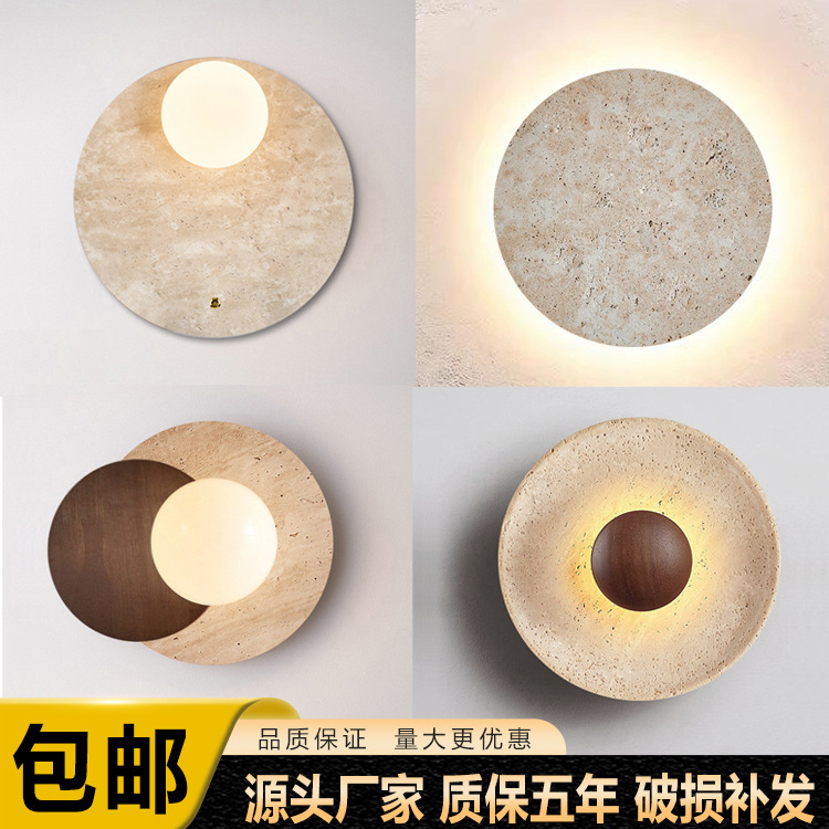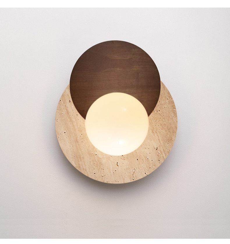 일본식 와비사비 스타일 침실 머리맡 벽 램프 북유럽 레스토랑 계단 통로 노란색 대리석 둥근 배경 벽 램프