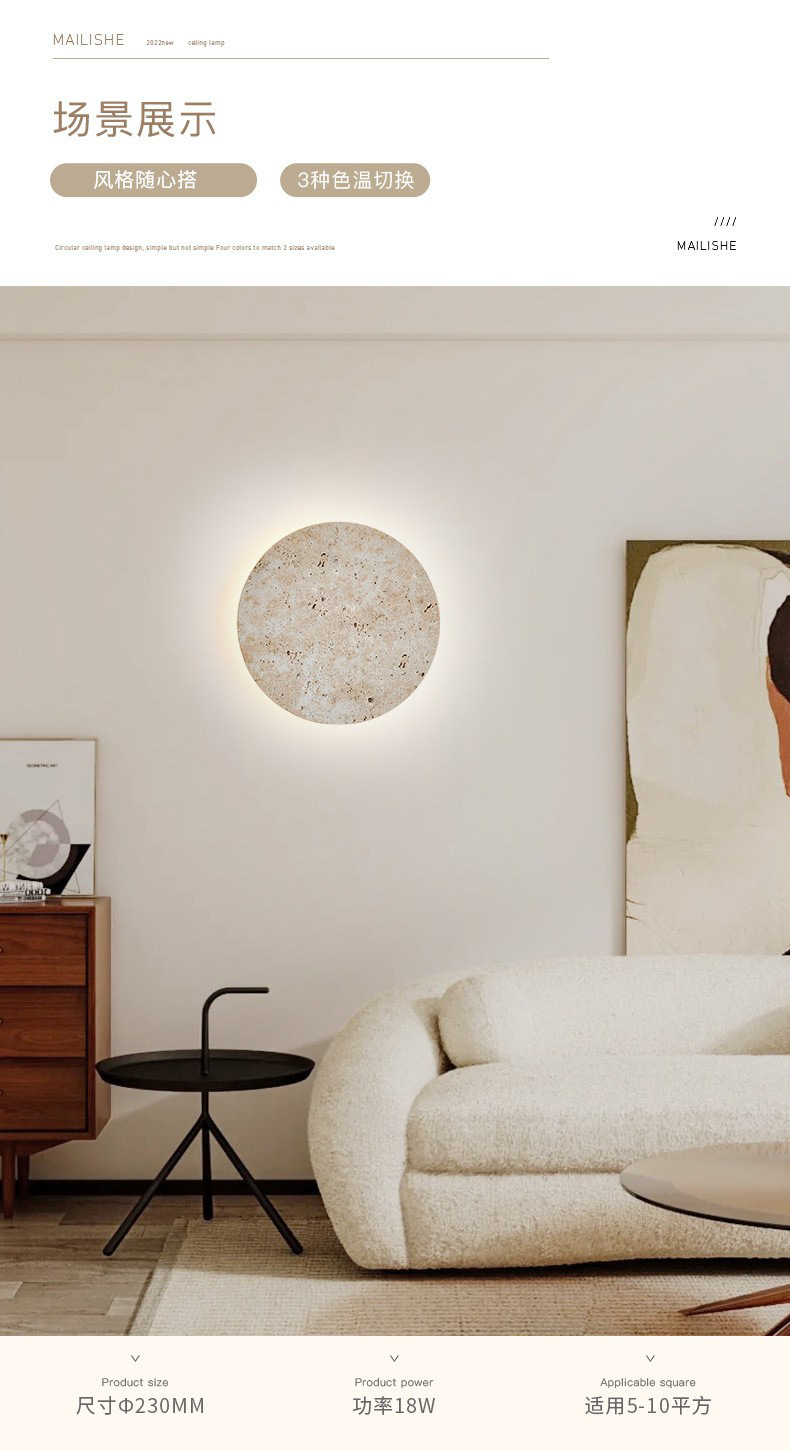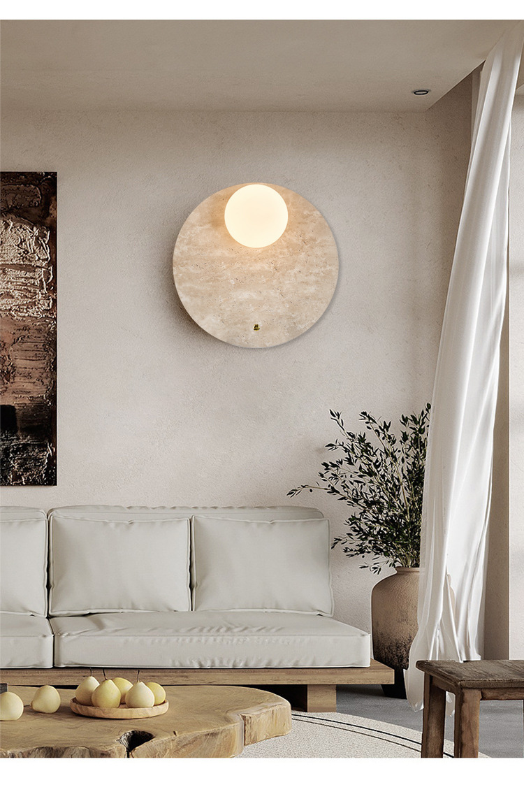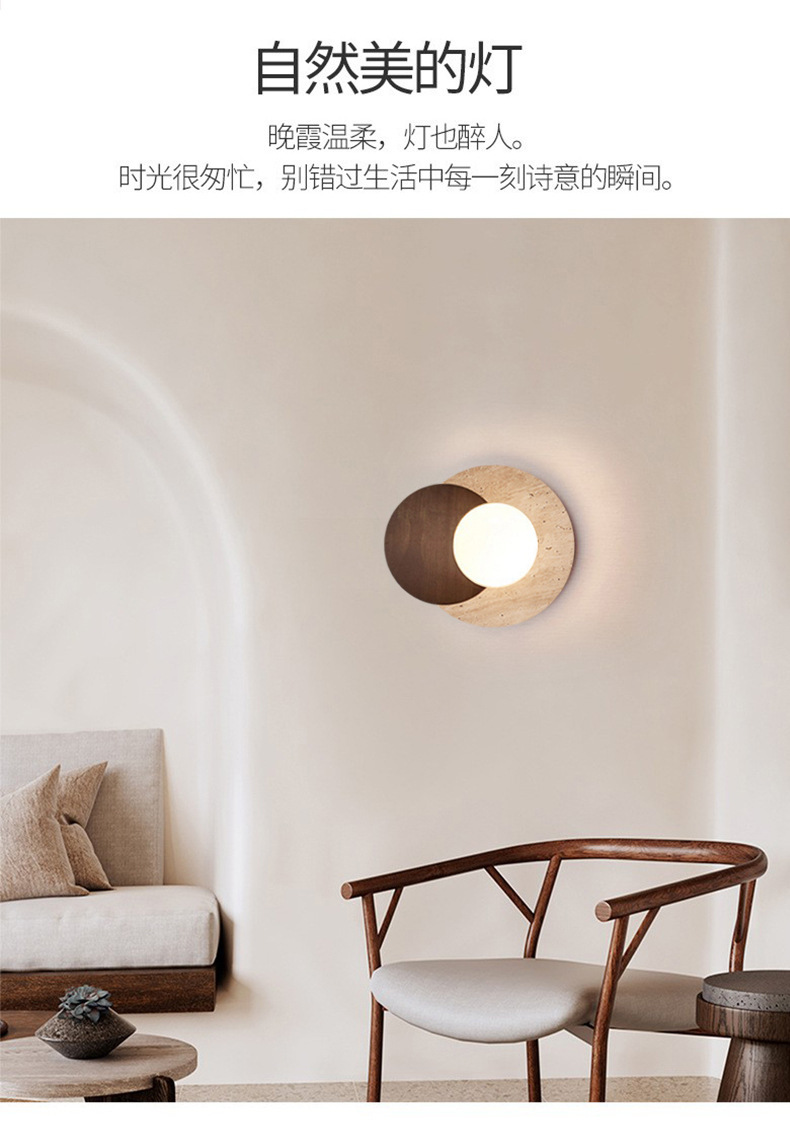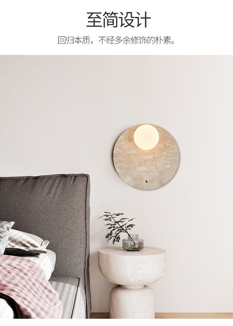 일본식 와비사비 스타일 침실 머리맡 벽 램프 북유럽 레스토랑 계단 통로 노란색 대리석 둥근 배경 벽 램프