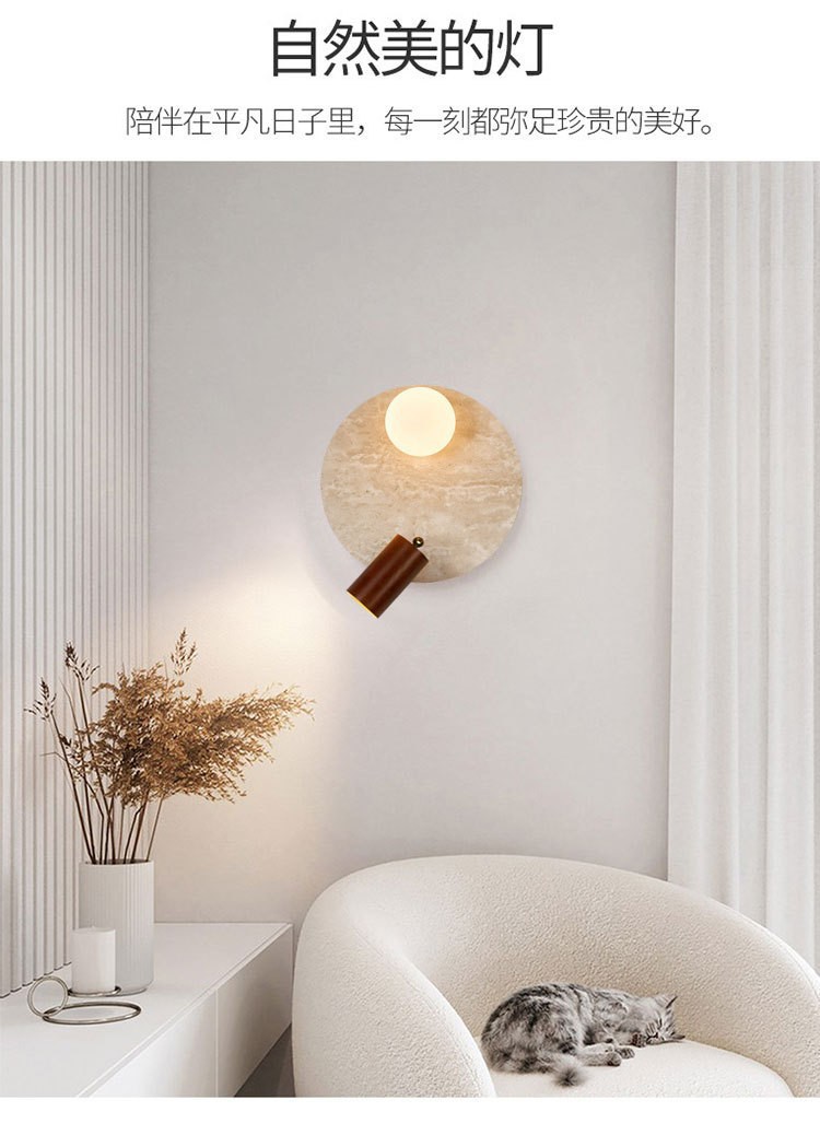 일본식 와비사비 스타일 침실 머리맡 벽 램프 북유럽 레스토랑 계단 통로 노란색 대리석 둥근 배경 벽 램프스토어 가기