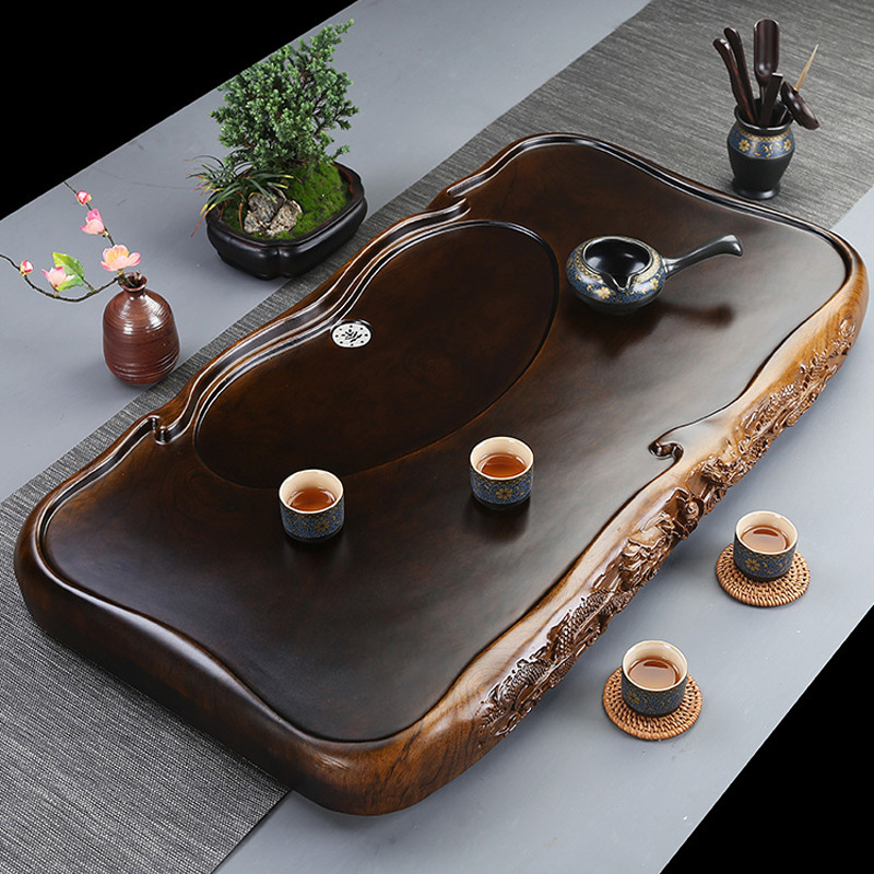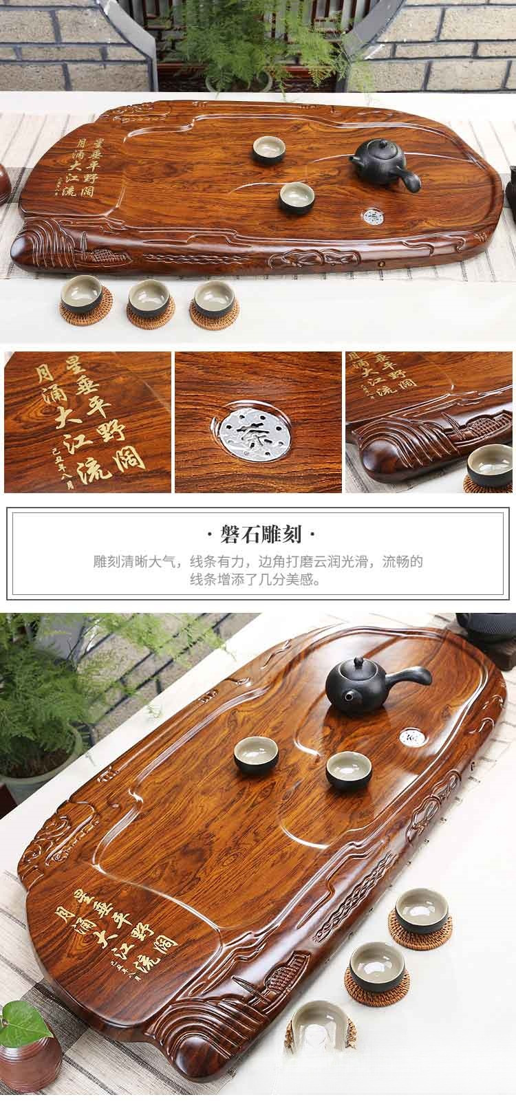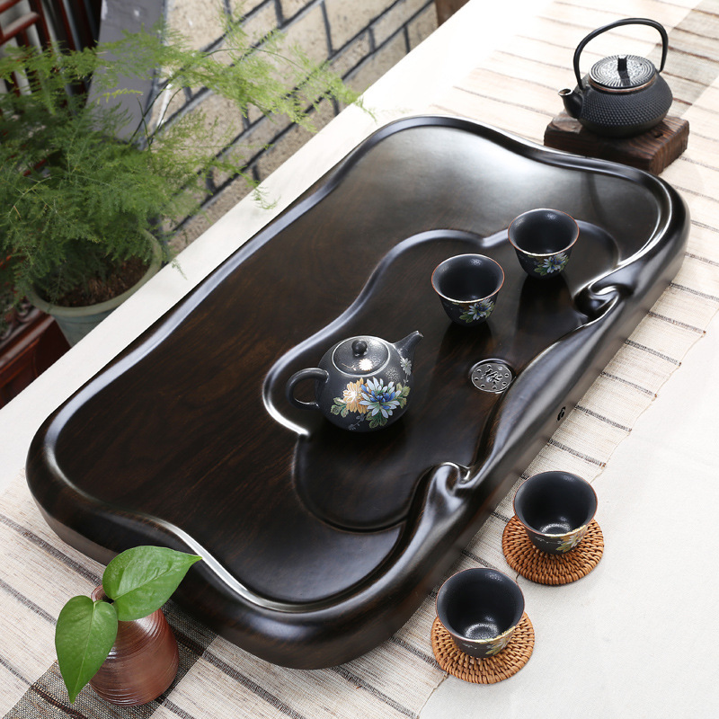 흑단 차 트레이 가정용 단단한 나무 차 바다 차 테이블 작은 직사각형 통나무 로즈우드 트레이 간단한 배수스토어 가기