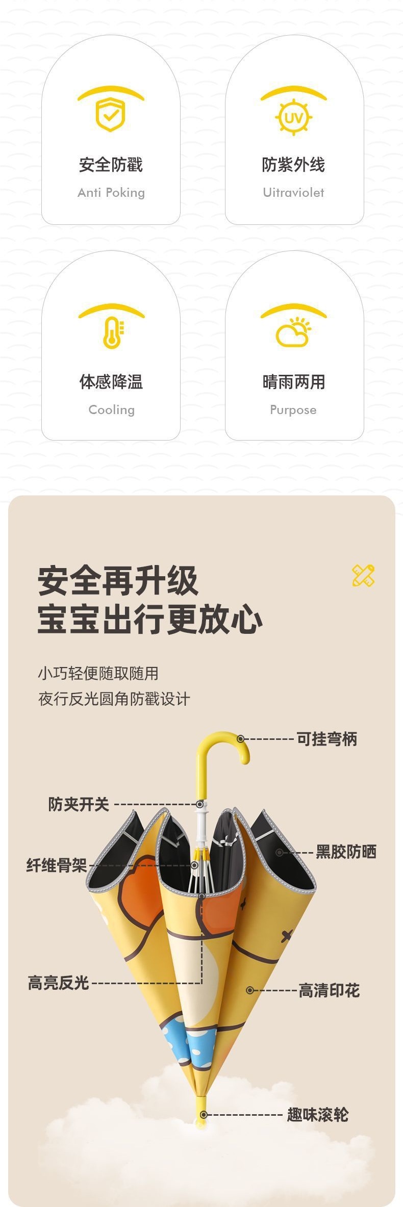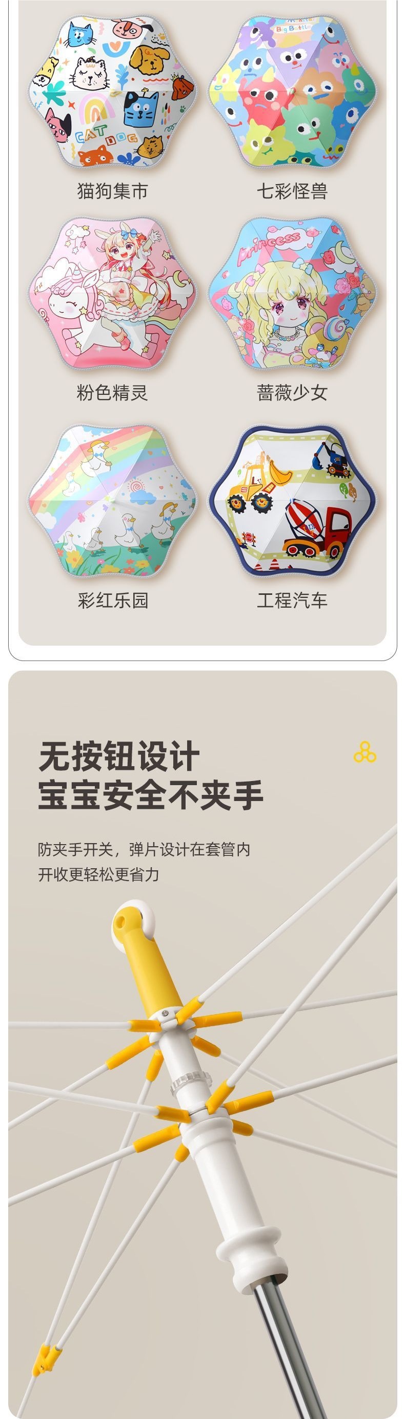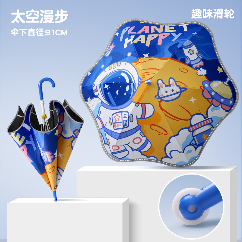 어린이 둥근 풀리 비 또는 빛 초등학생 소년 소녀 아기 유치원 소녀 우산 긴 손잡이 우산 스틸스토어 가기
