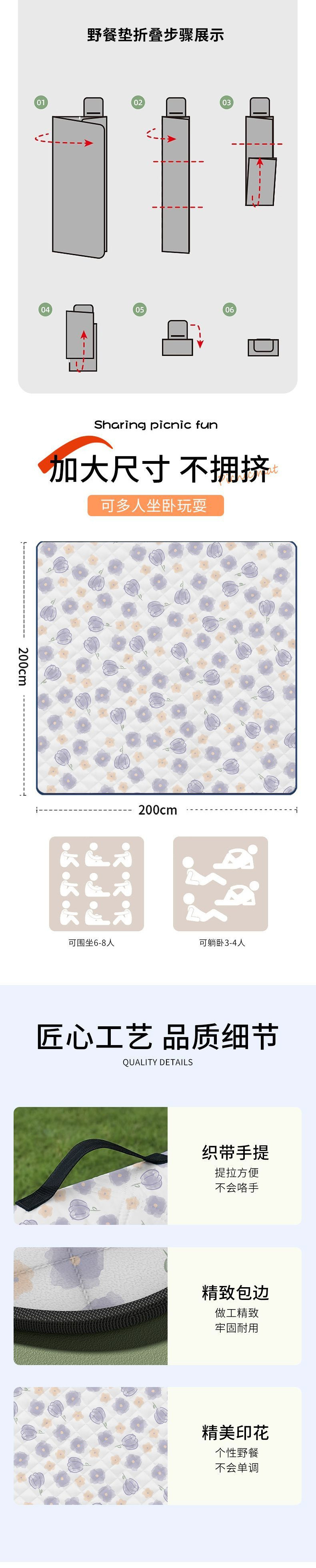두꺼운 피크닉 방습 매트, 방수 야외 잔디 캠핑 봄 나들이 텐트 매트, 해변 휴대용 피크닉스토어 가기