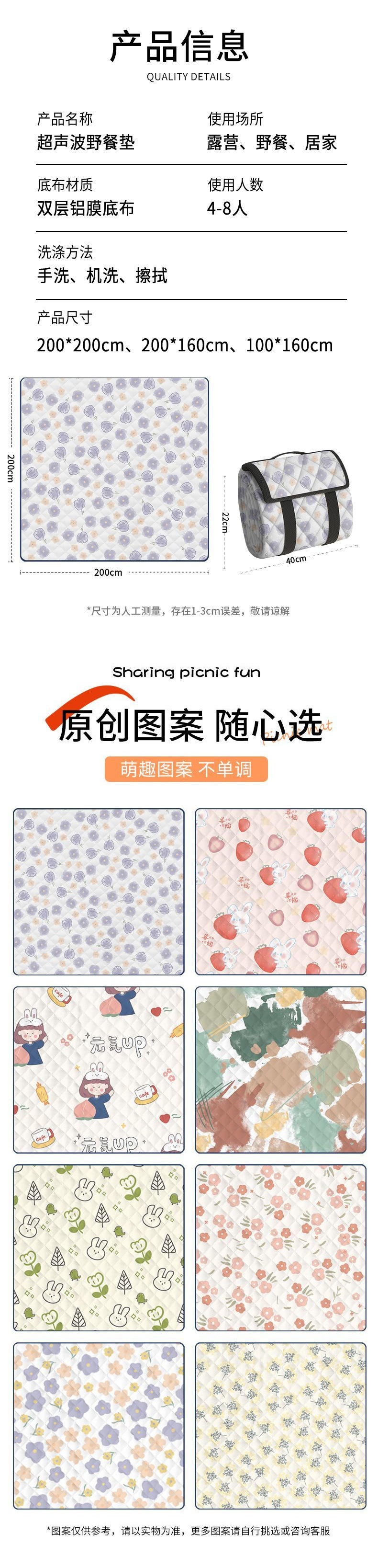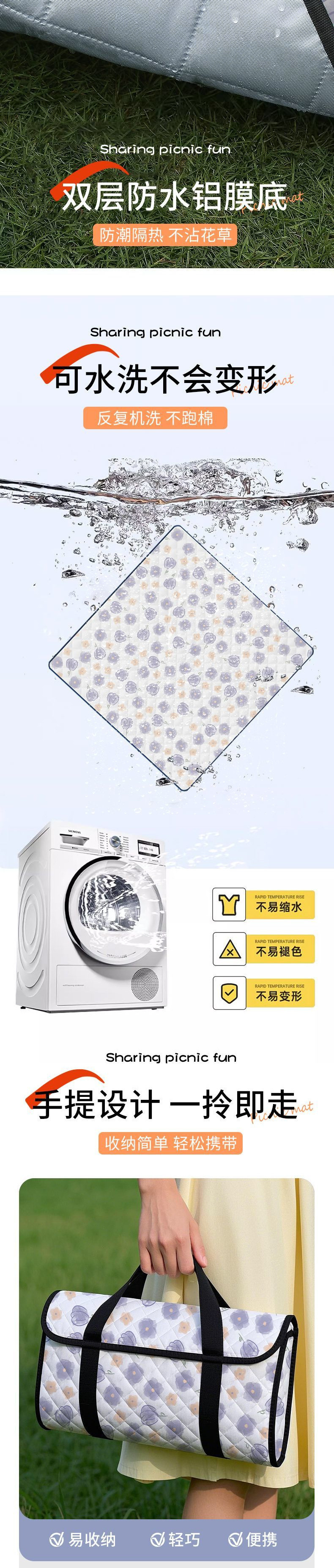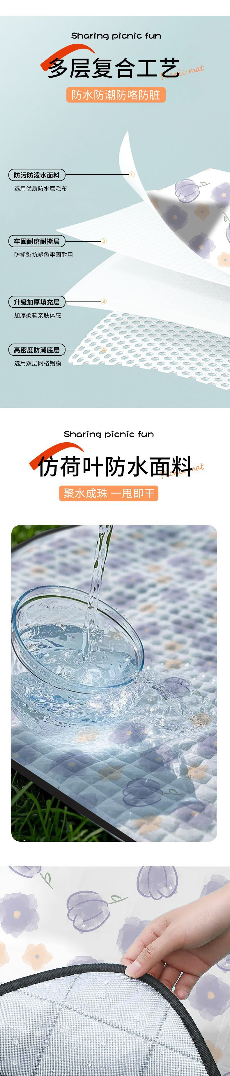 두꺼운 피크닉 방습 매트, 방수 야외 잔디 캠핑 봄 나들이 텐트 매트, 해변 휴대용 피크닉