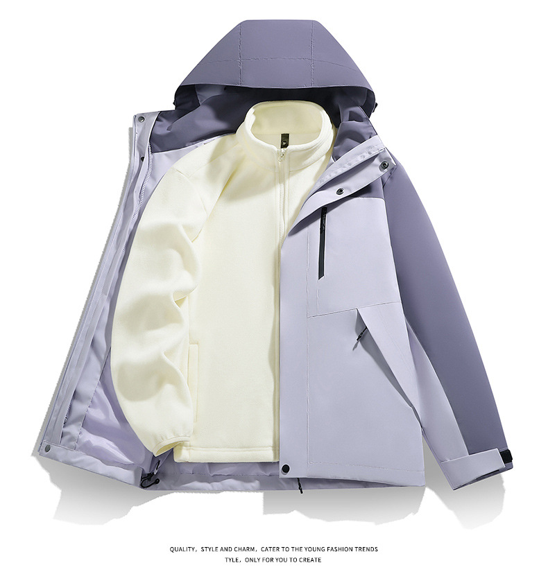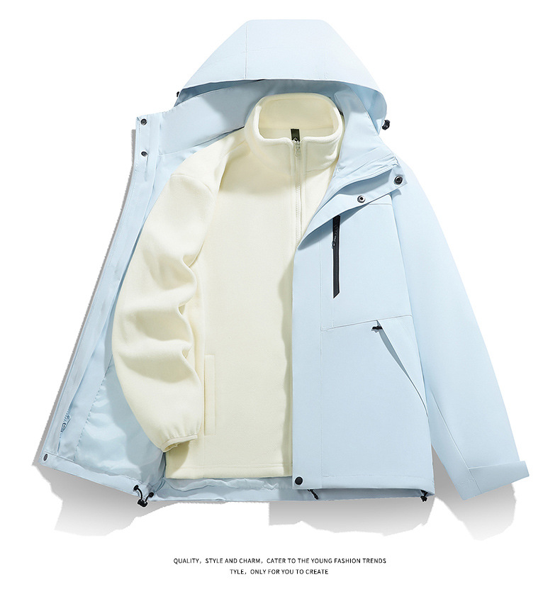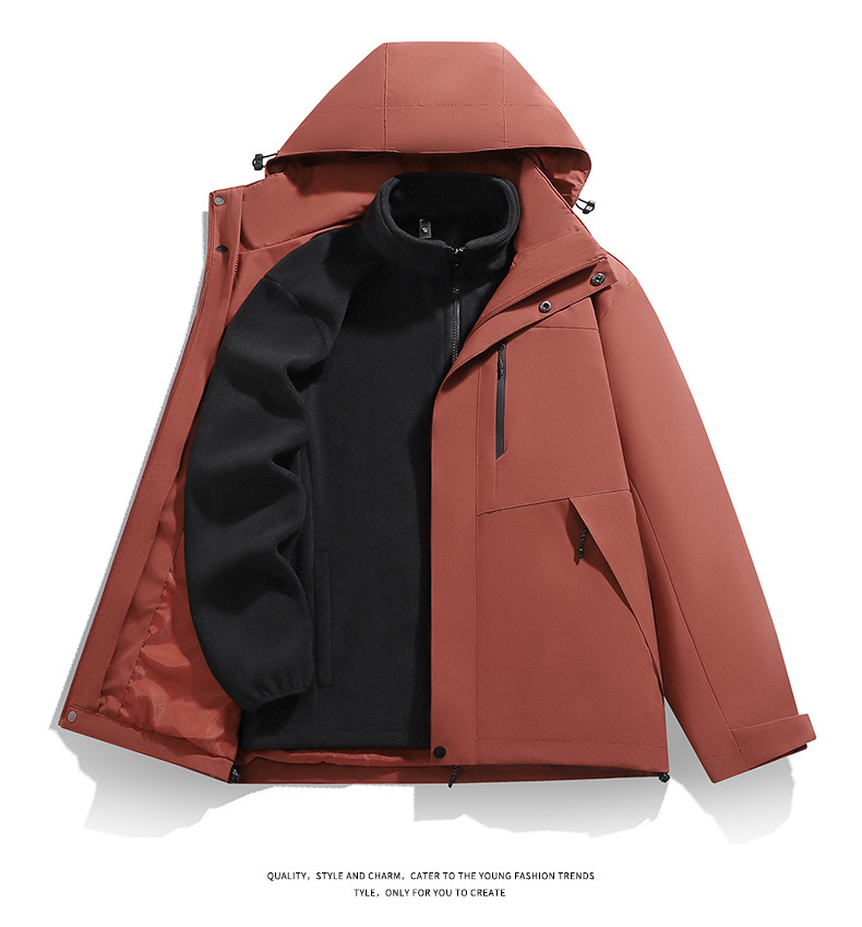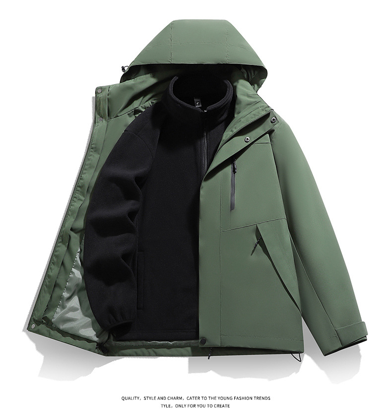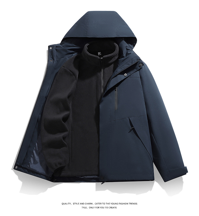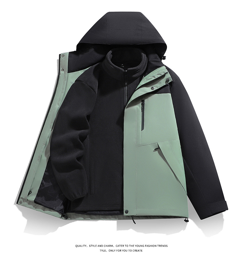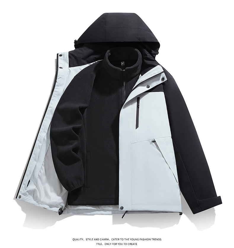 남성용 가을 겨울 신상 3-in-1 탈착식 모자 방풍 재킷 커플 스타일 야외 멀티 컬러 등산복스토어 가기