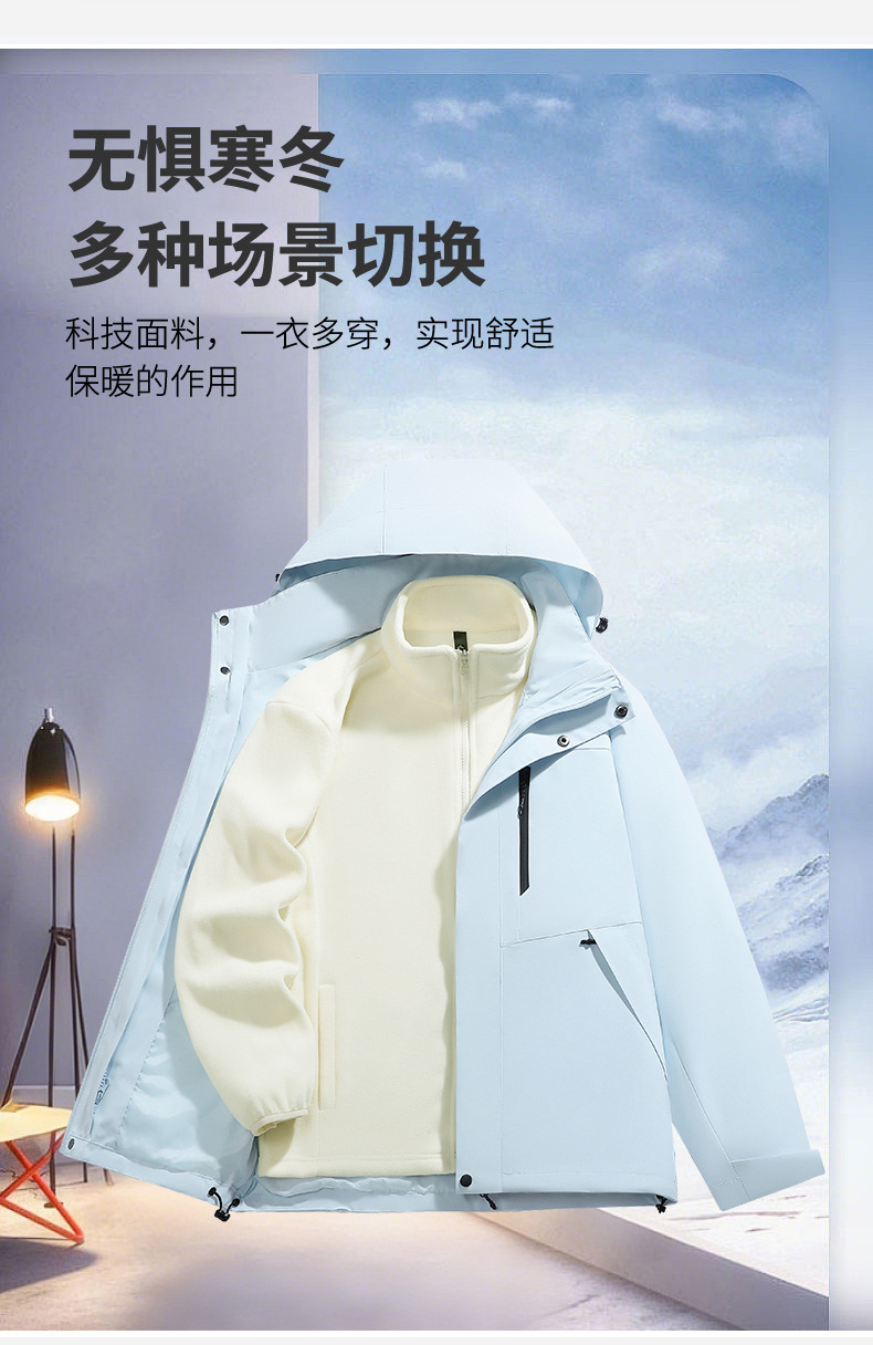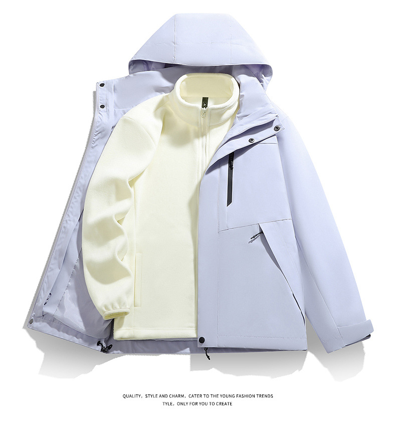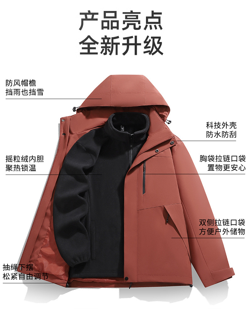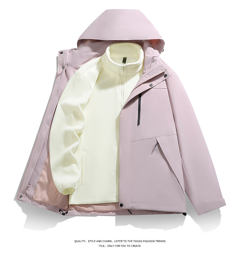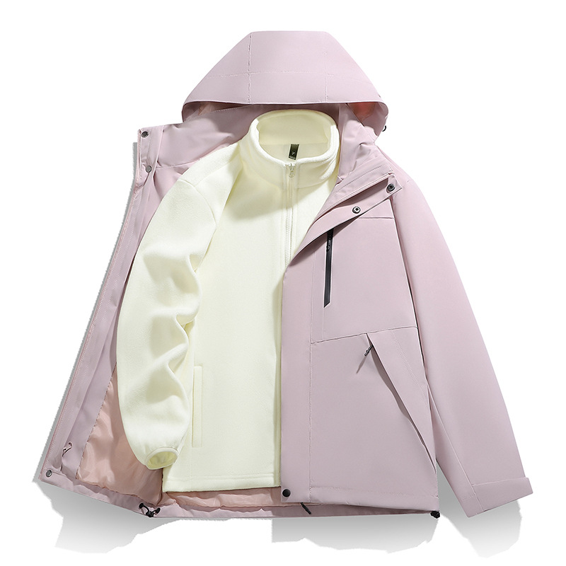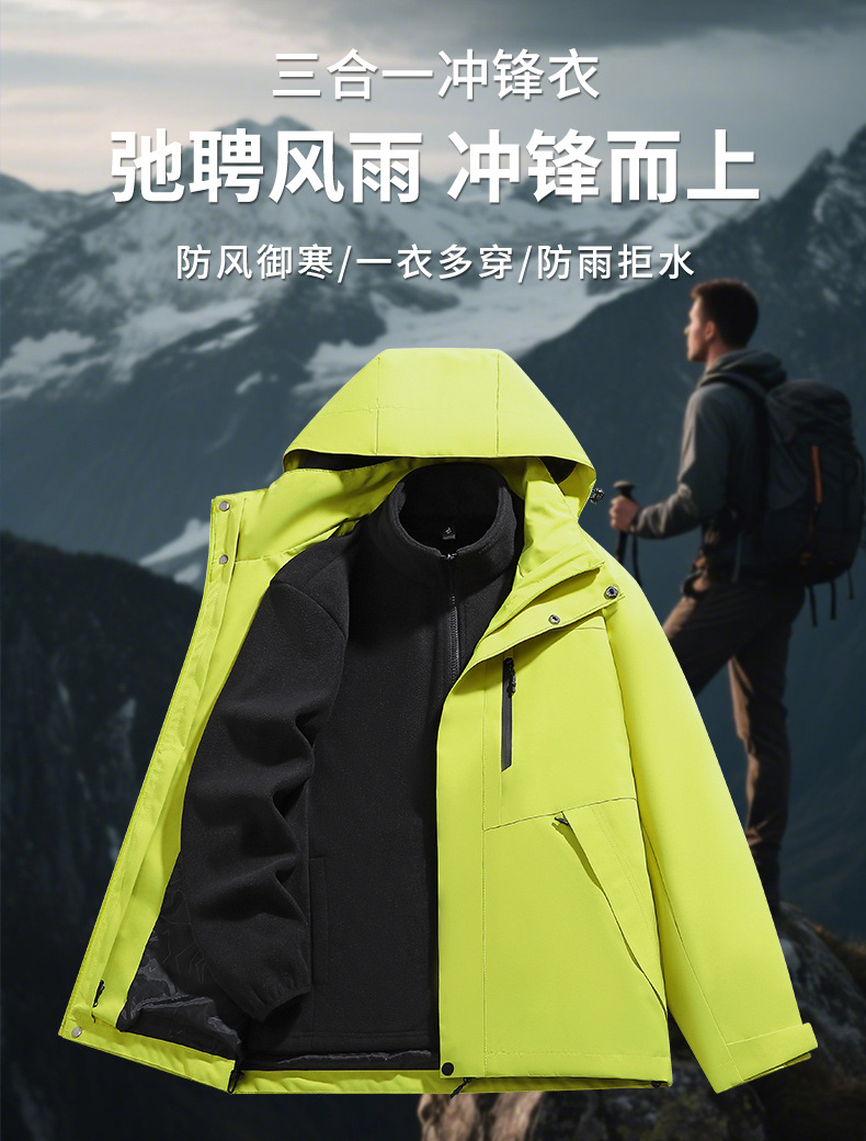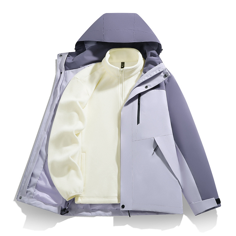 남성용 가을 겨울 신상 3-in-1 탈착식 모자 방풍 재킷 커플 스타일 야외 멀티 컬러 등산복스토어 가기