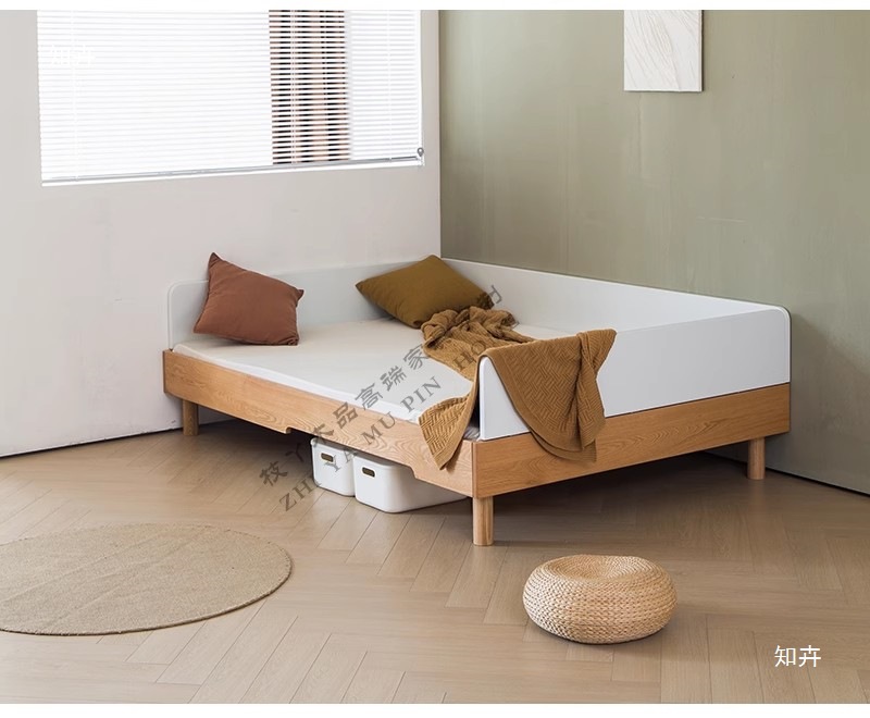 • 화이트 오크(낮은 침대는 높이를 높일 수 없음) 가드레일이 없는 싱글 침대