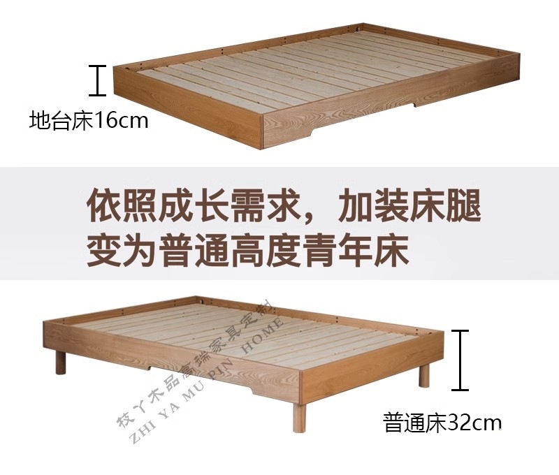 Zhiya Wood Products 모든 단단한 나무 몬테소리 플랫폼 침대 참나무 바닥 침대 싱글 침대 서스펜션 침대 프레임 어린이 소년 소녀 침대