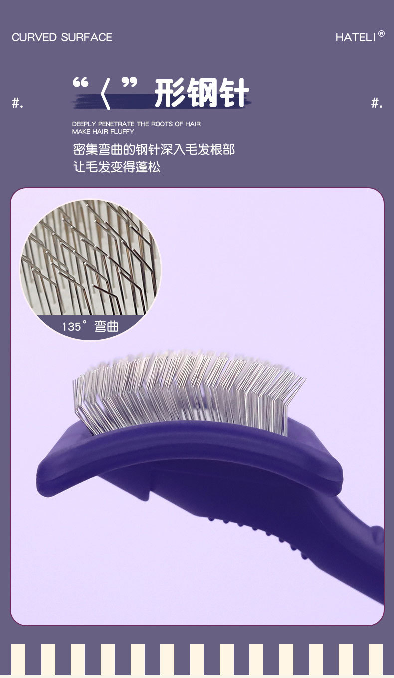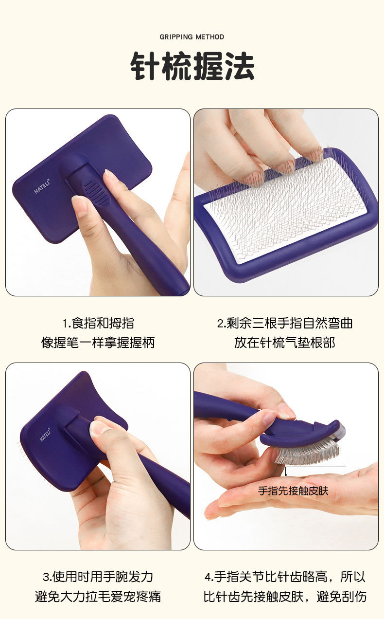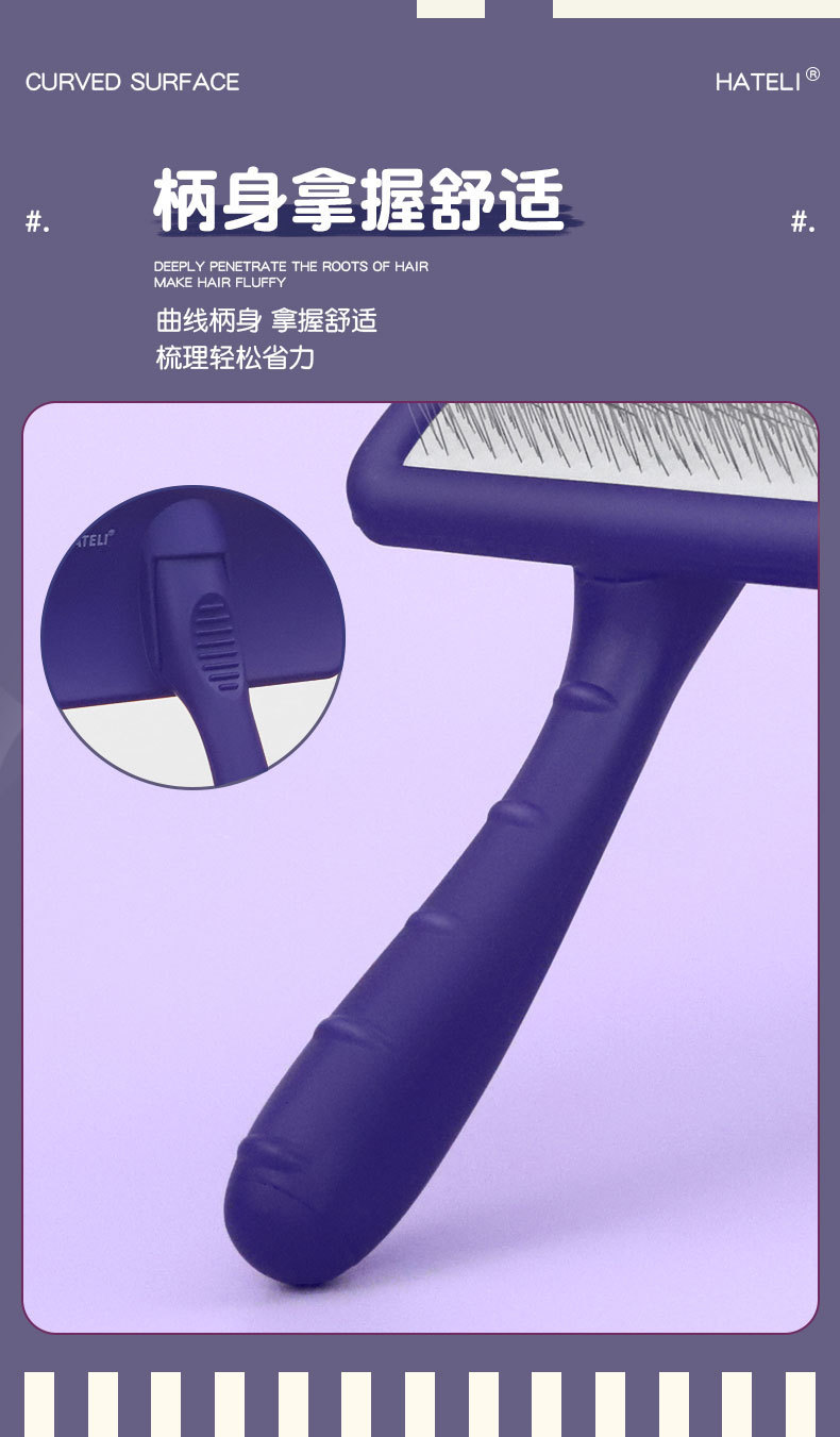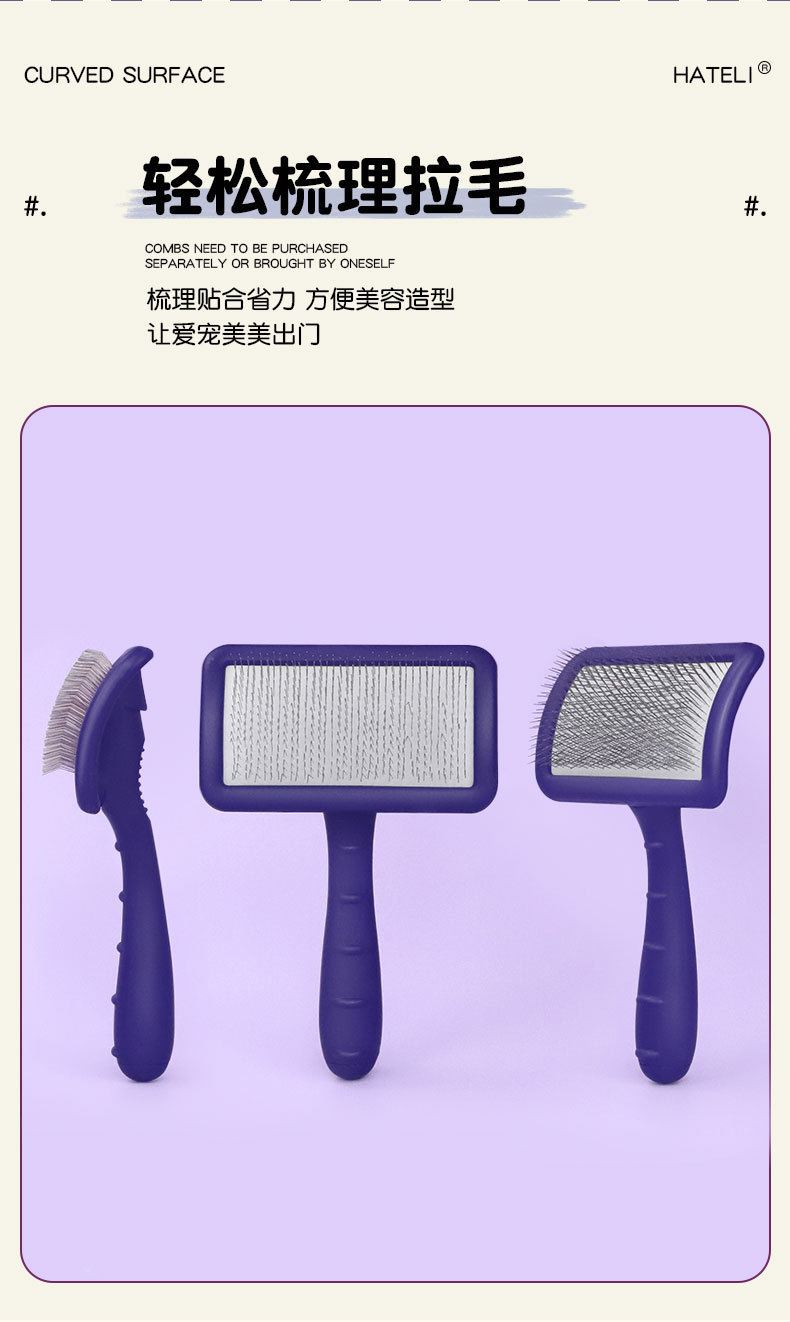하틀리 니들 빗, 개털 빗, 비숑 테디 빗, 애완동물 미용 고양이 브러시, 단단한 곡면 니들 빗 제조업체스토어 가기
