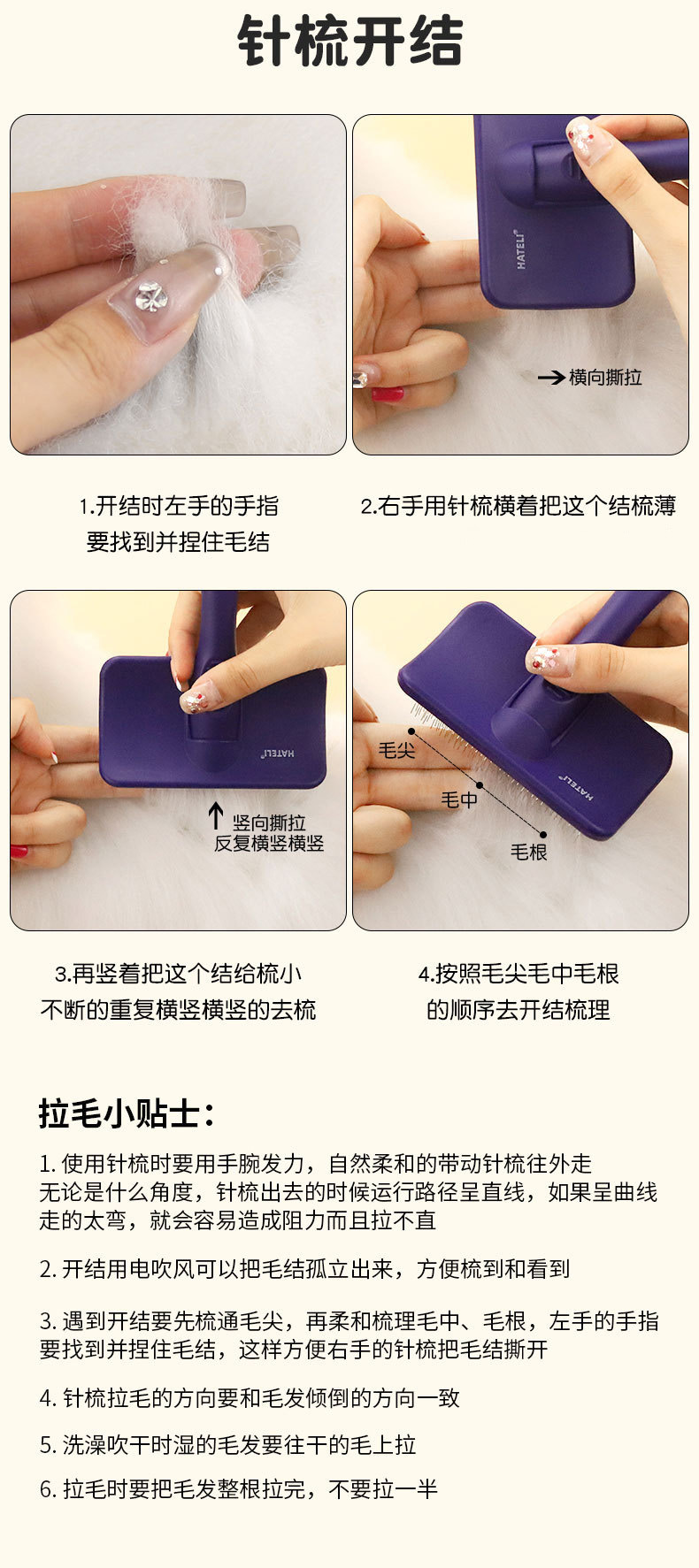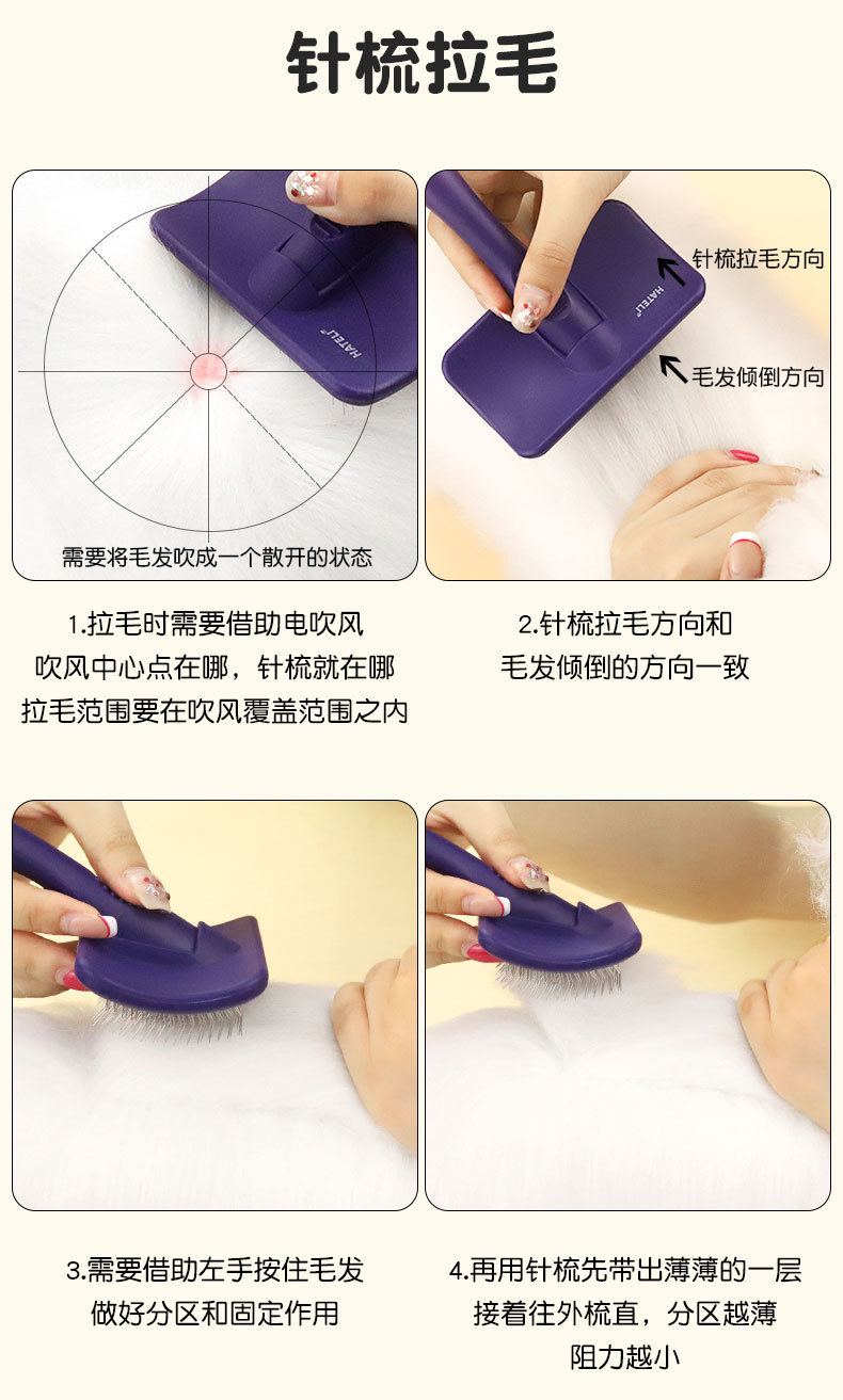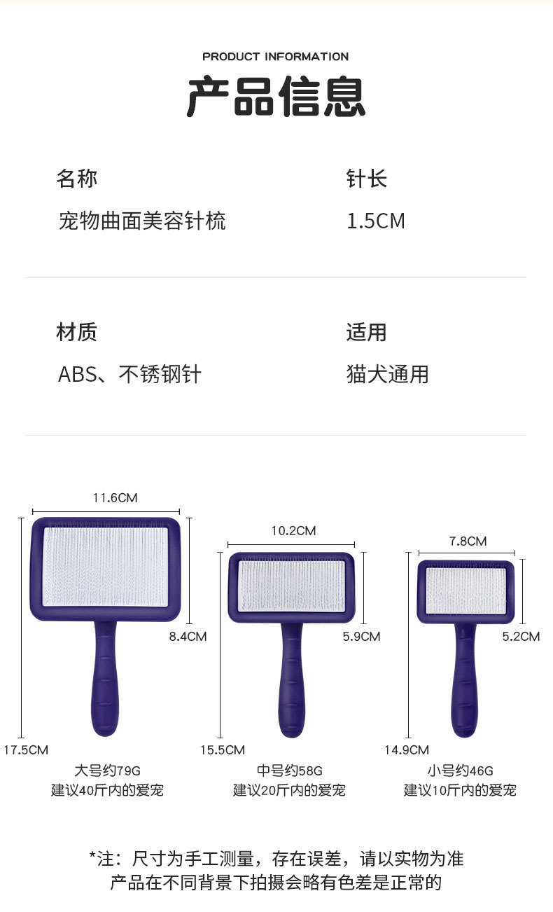 하틀리 니들 빗, 개털 빗, 비숑 테디 빗, 애완동물 미용 고양이 브러시, 단단한 곡면 니들 빗 제조업체스토어 가기